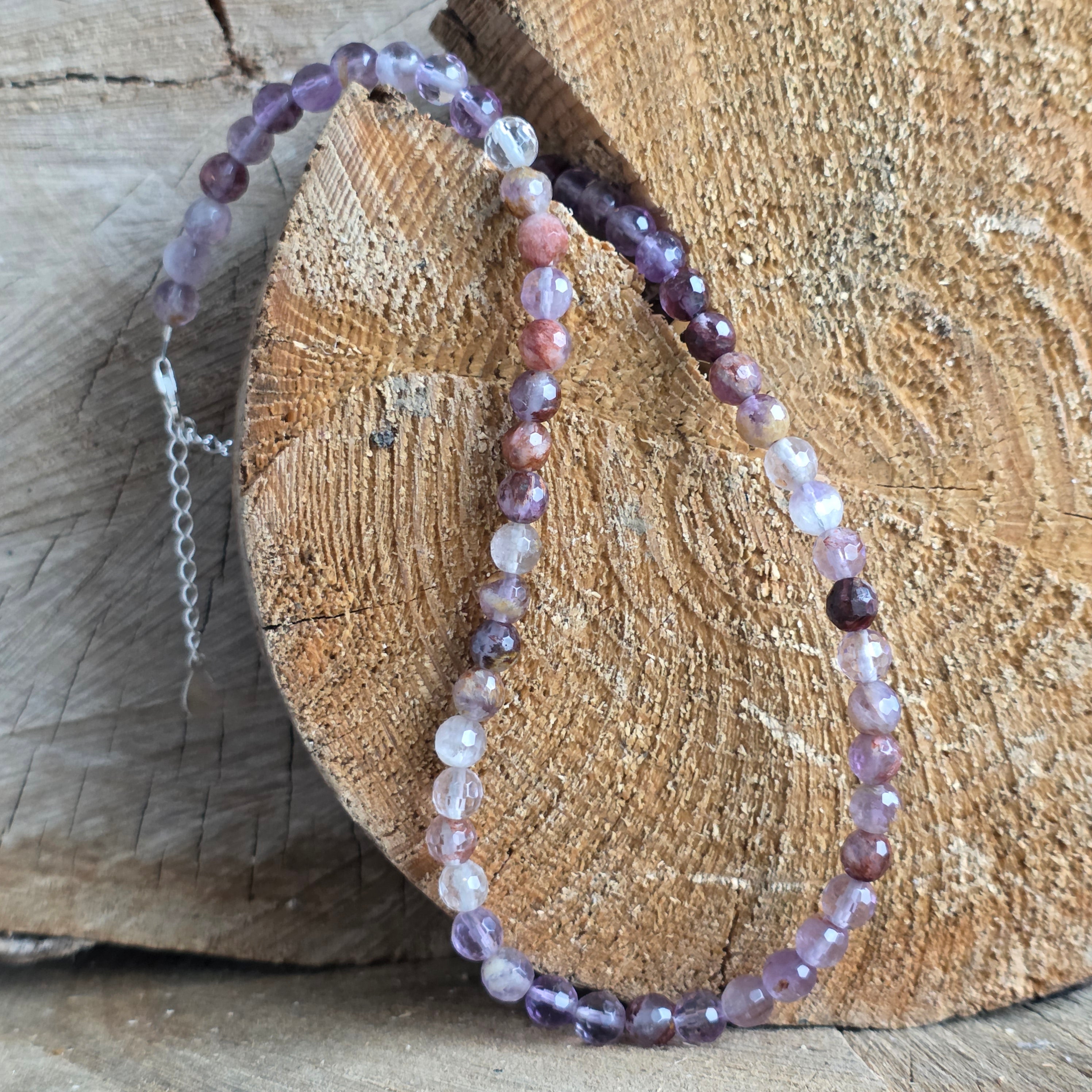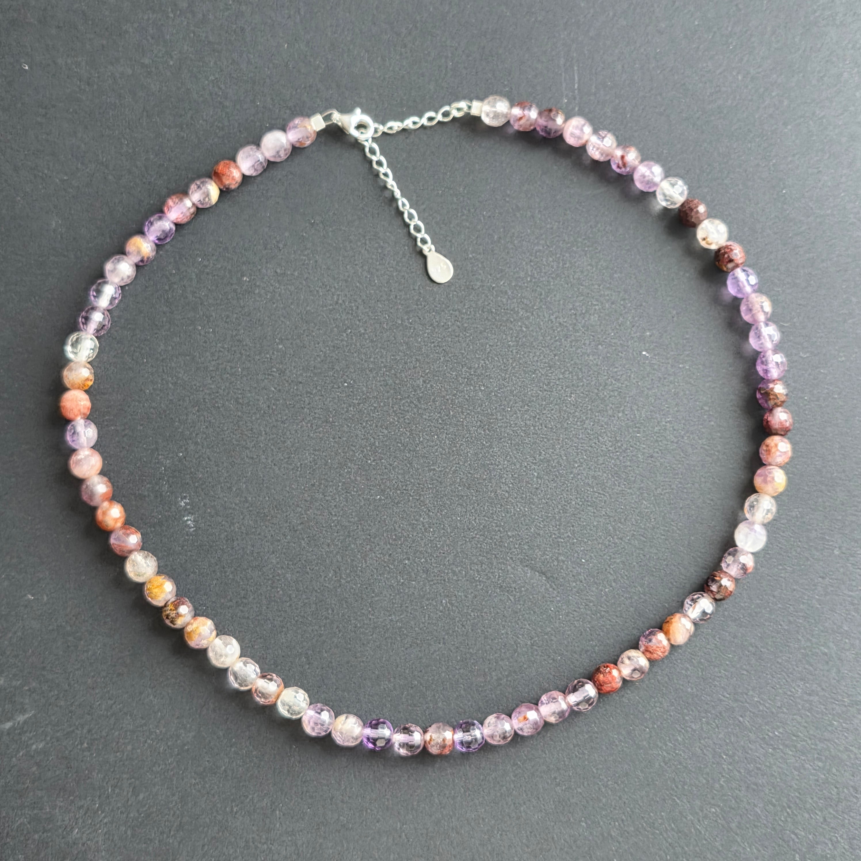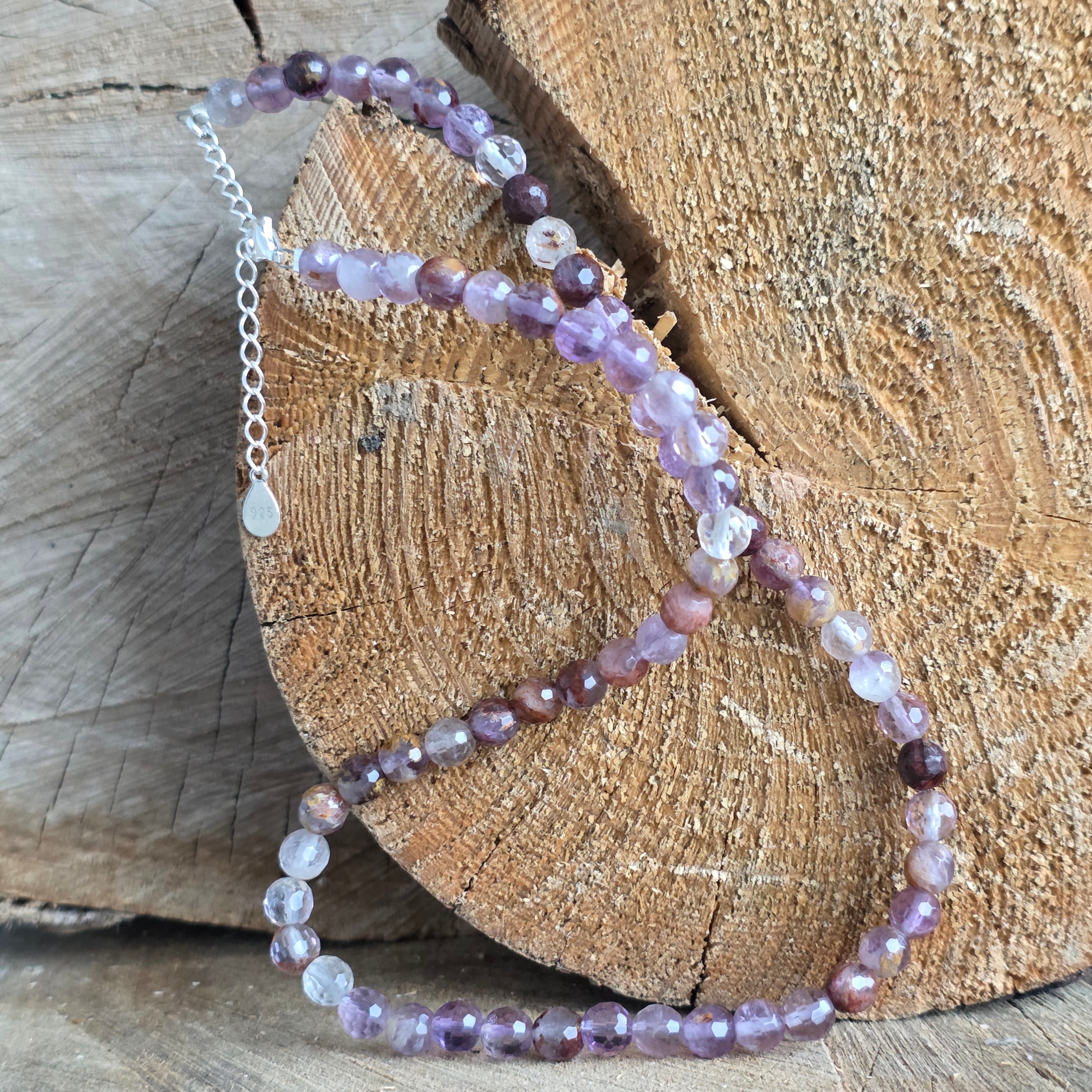 Υλικά: Φυσικό Super Seven, στρογγυλές faceted χάντρες 6 mm, ασήμι 925