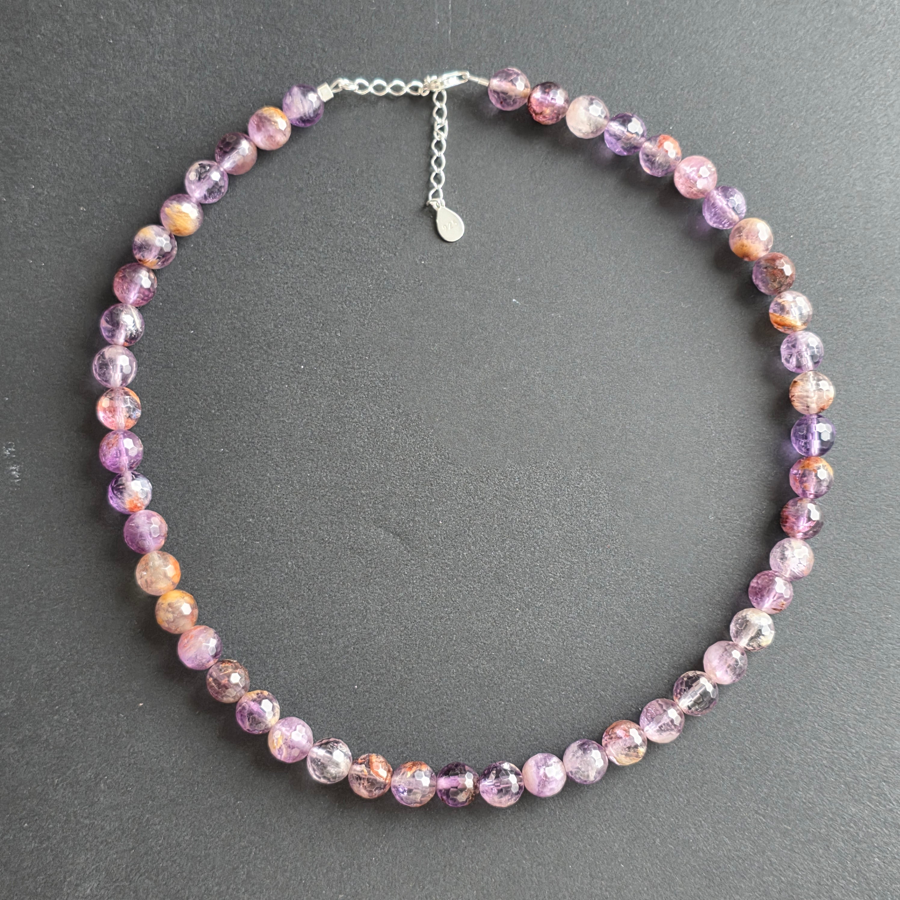Το Super Seven – γνωστό και ως Sacred Seven ή Melody Stone – είναι ένας φυσικός συνδυασμός επτά ορυκτών στην ίδια μήτρα: αμέθυστος, διάφανο χαλαζία, καφετί χαλαζίας, γκέθιτης, λεπιδοκροσίτης, κακοξενίτης και ρουτίλιο. Κάθε χάντρα γίνεται έτσι ένα μικρό σύμπαν, ένα σύνθετο κρύσταλλο που συγκεντρώνει πολλαπλές ενέργειες σε ένα μόνο σημείο στήριξης.