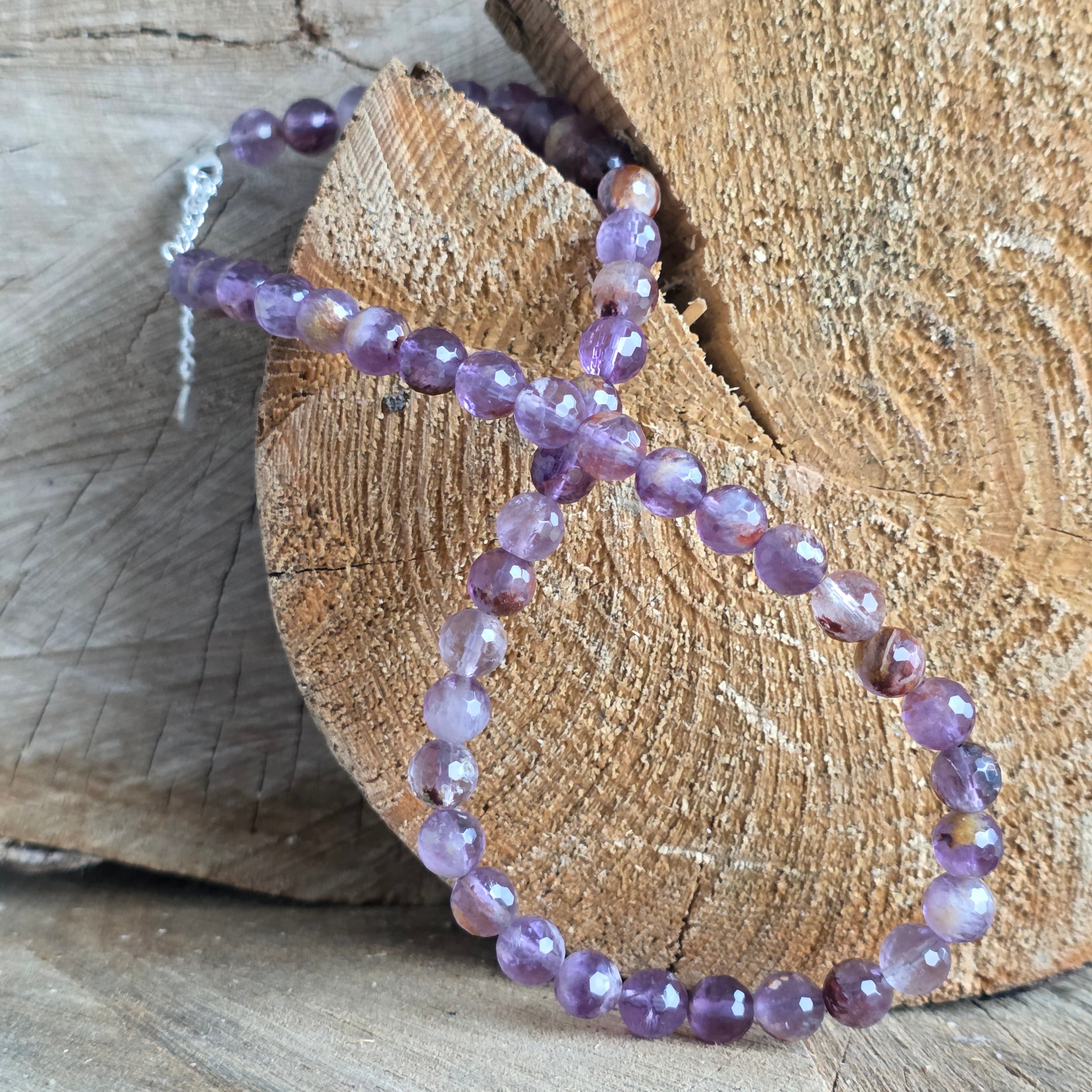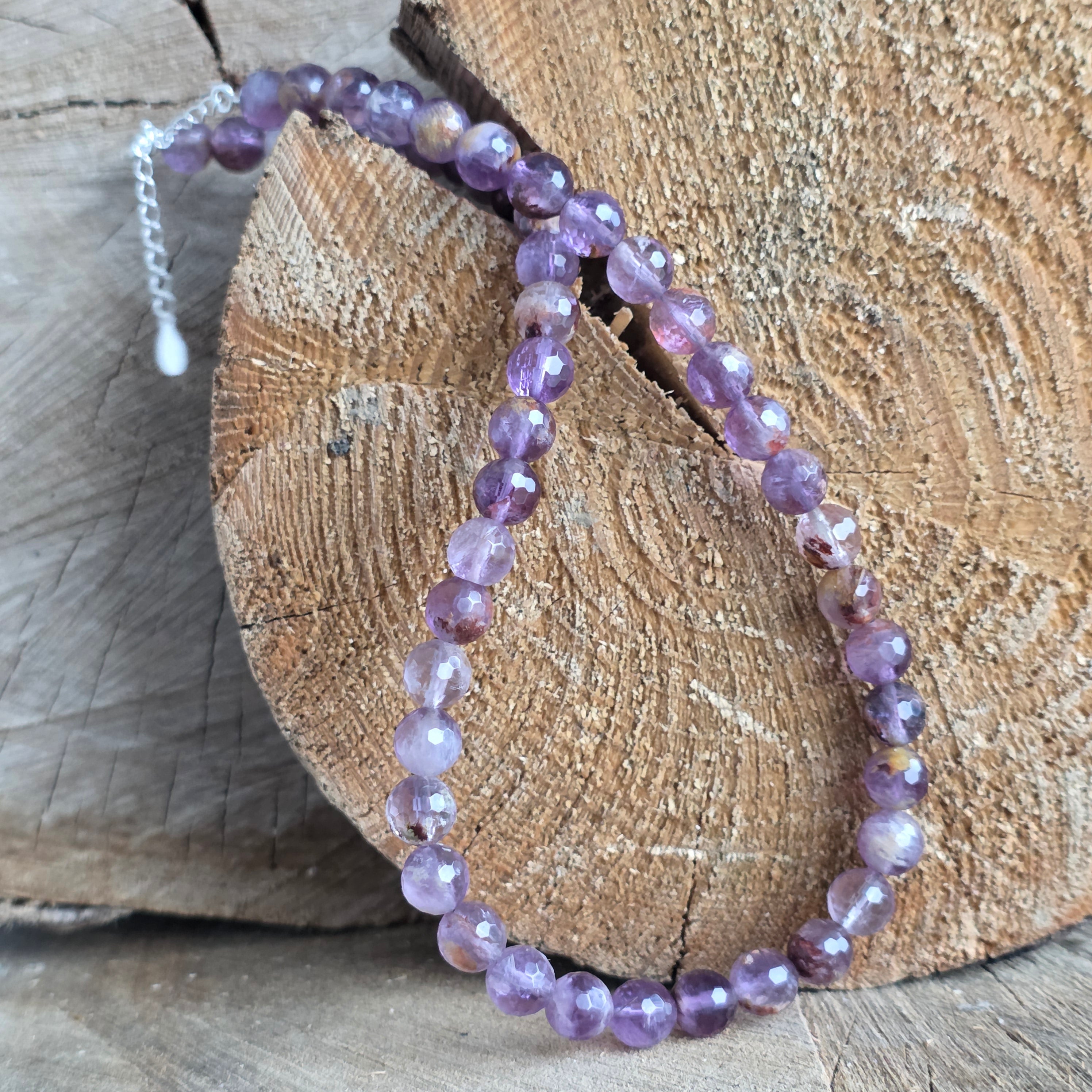 Υλικά: Φυσικό Super Seven, στρογγυλές faceted χάντρες 9 χλστ., ασήμι 925