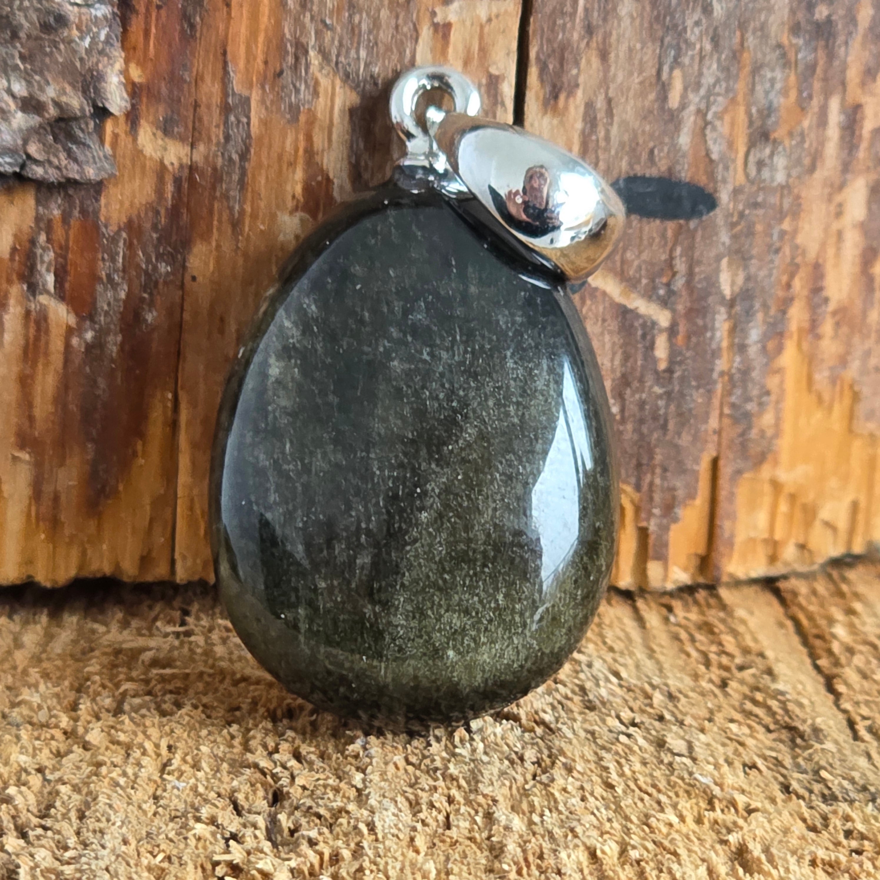 Κρεμαστό από ασημένιο οψιδιανό τυμπλαρισμένο