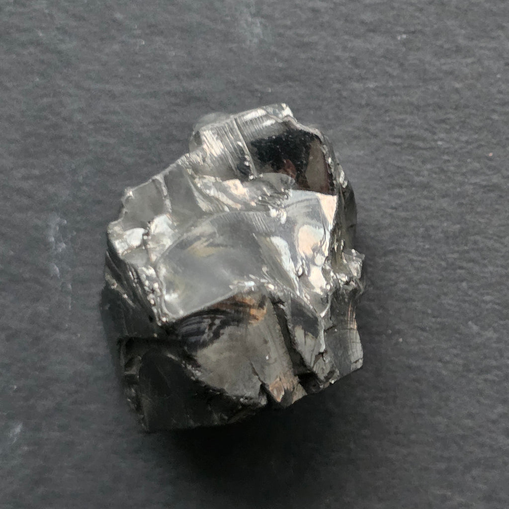 Η έντονη και ασημένια μεταλλική του λάμψη φέρει την ηχώ ενός πρωτόγονου κόσμου, όπου η καθαρή ύλη δονείται σε αρμονία με τη ζωή.