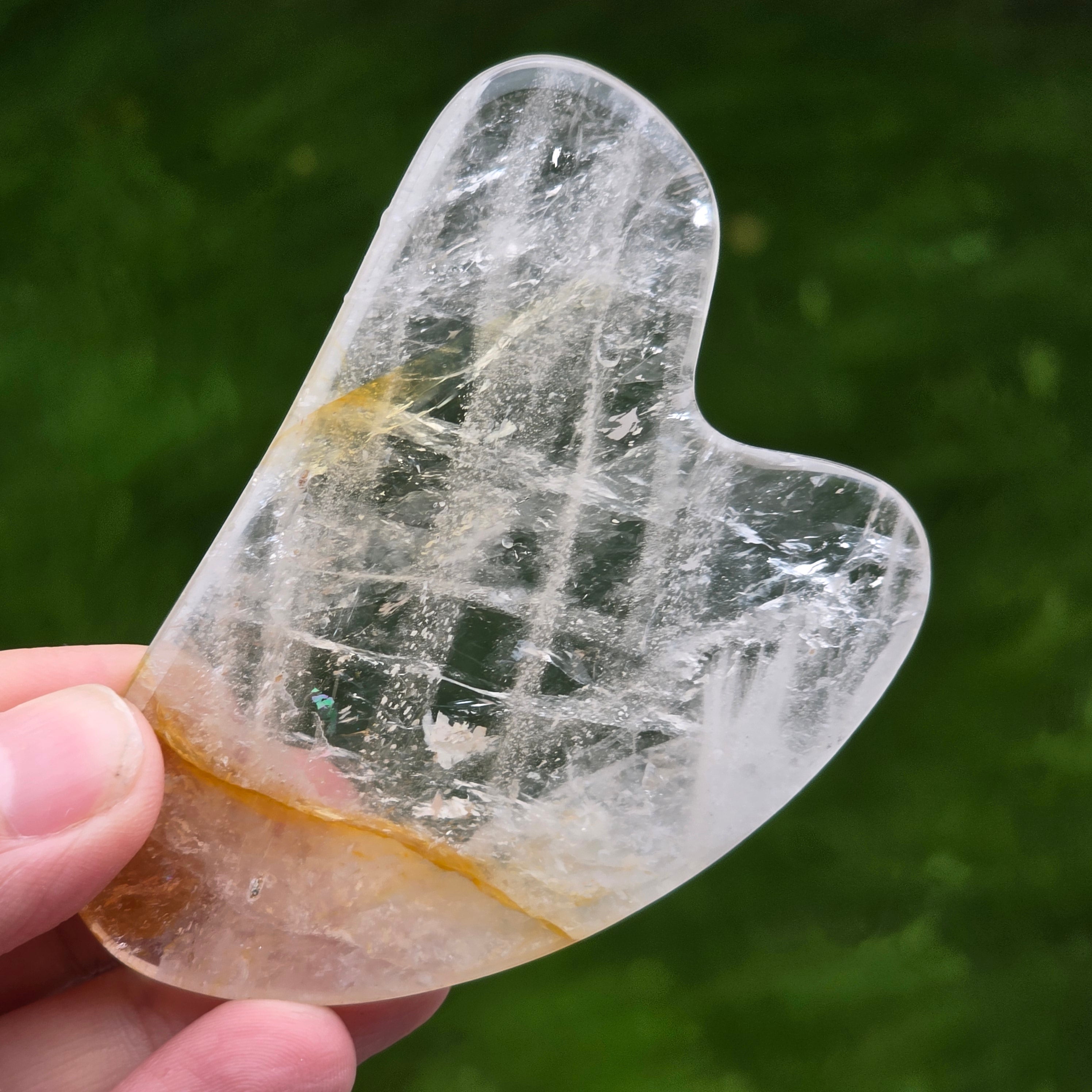 Ο λίθος Gua Sha από λεμονίτη είναι ένα από εκείνα τα φυσικά κομμάτια που συνδυάζουν την ομορφιά των ορυκτών με τα τελετουργικά περιποίησης του σώματος. Οι ζεστές αποχρώσεις του – χρυσίζων κίτρινο, μέλι, κεχριμπάρι – φαίνεται να κρατούν μέσα τους το φως ενός απαλού ηλιοβασιλέματος. Πρόκειται για έναν λίθο που σχηματίζεται από τον συνδυασμό χαλαζία με ενσωματώσεις λεμονίτη και αιματίτη, δημιουργώντας ρευστά, χρυσά σχέδια με διακριτικές σκιές και μοναδικές φυσικές γραμμές σε κάθε κομμάτι.