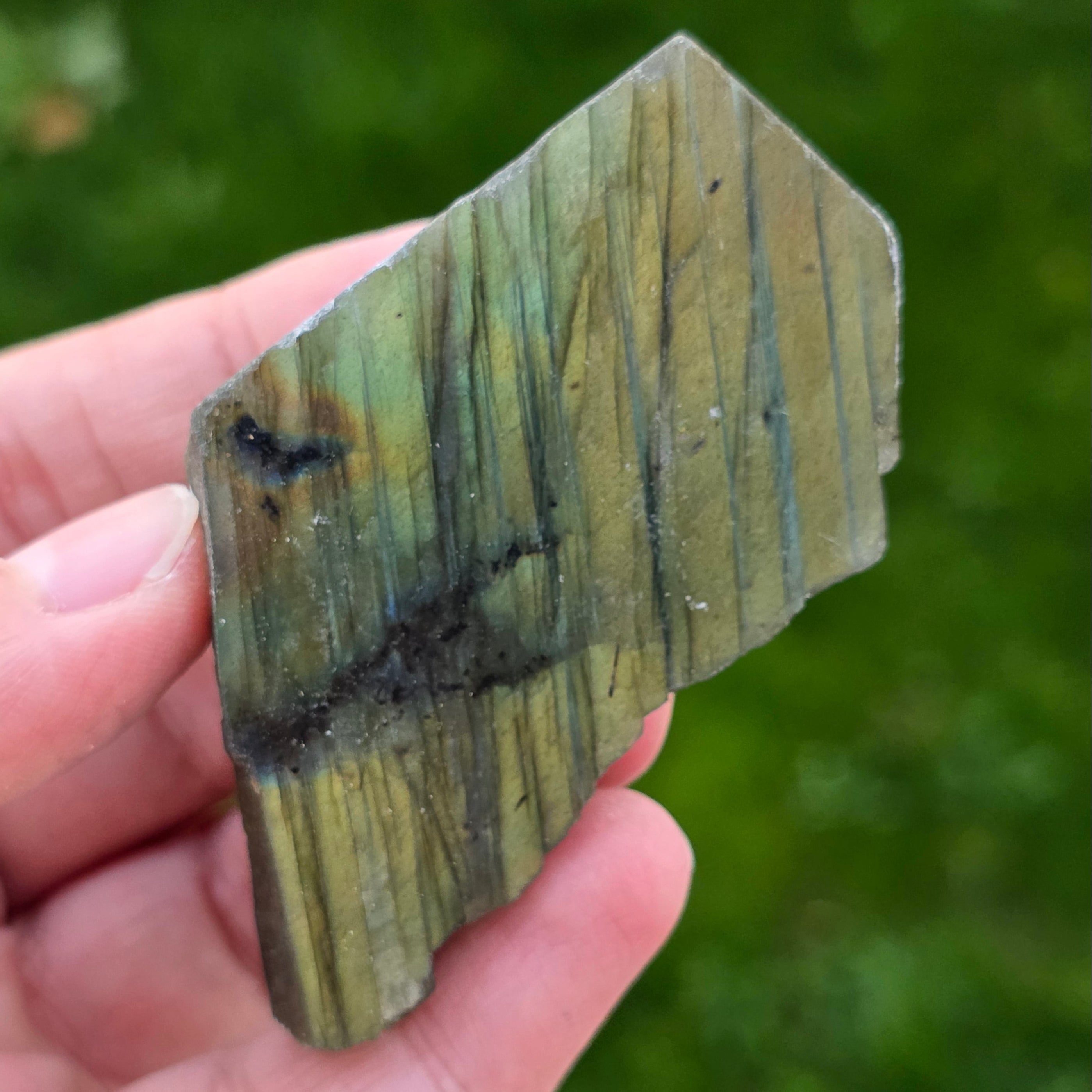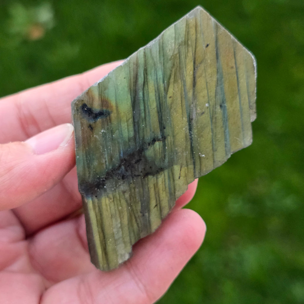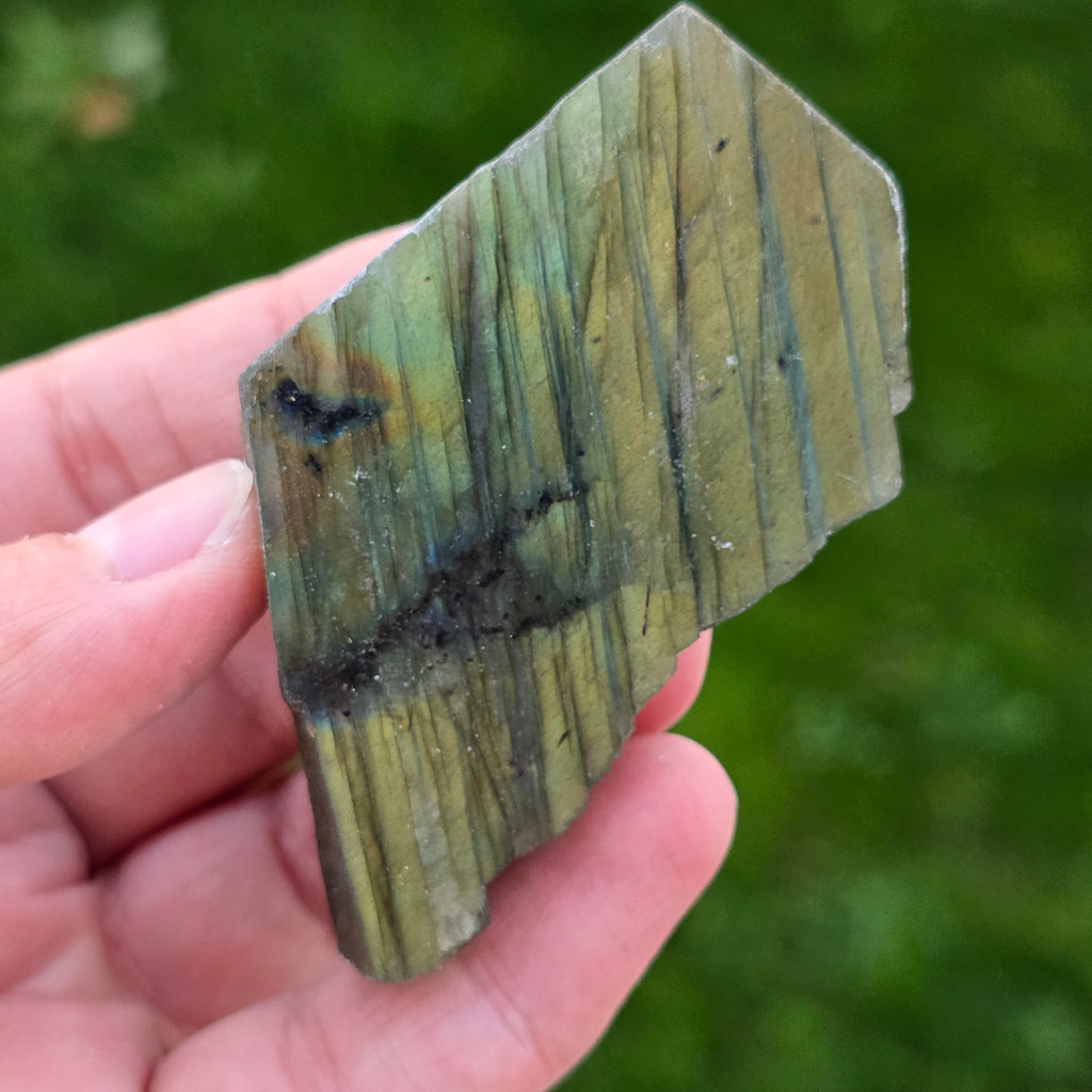 Σχόλια- Λαμπραδορίτης γυαλισμένη ακατέργαστη πέτρα στη μία πλευρά m15
