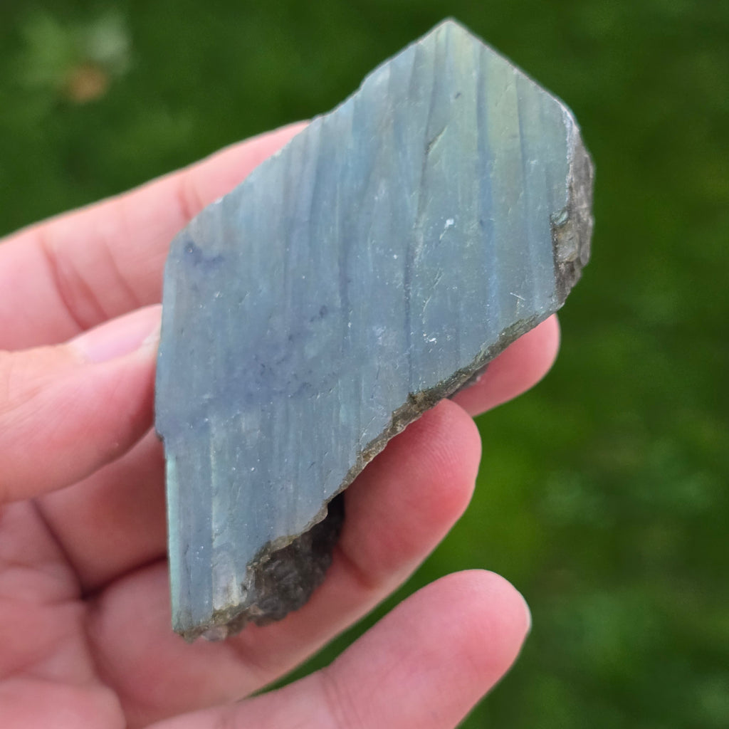 Λαμπραδορίτης γυαλισμένη ακατέργαστη πέτρα στη μία πλευρά m15