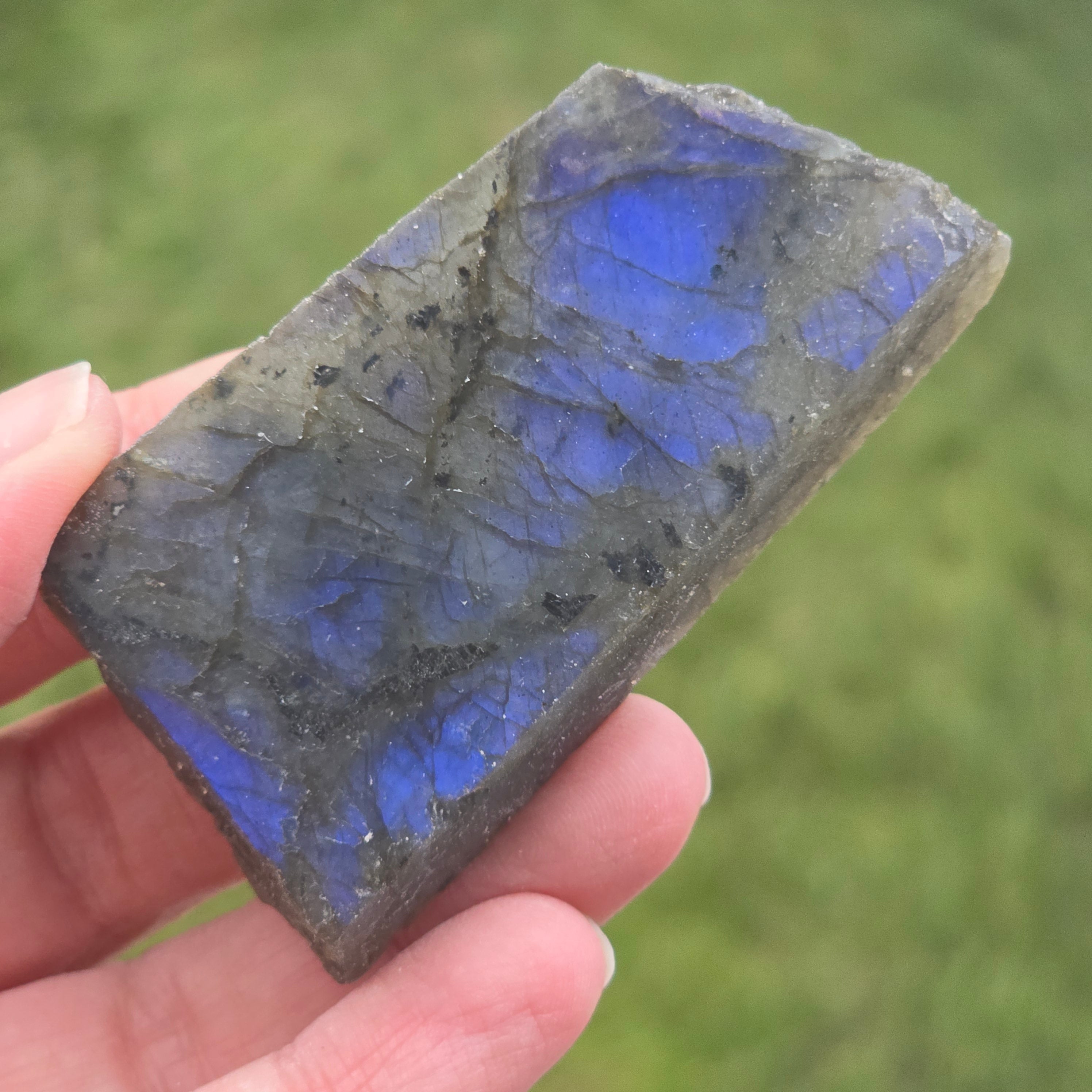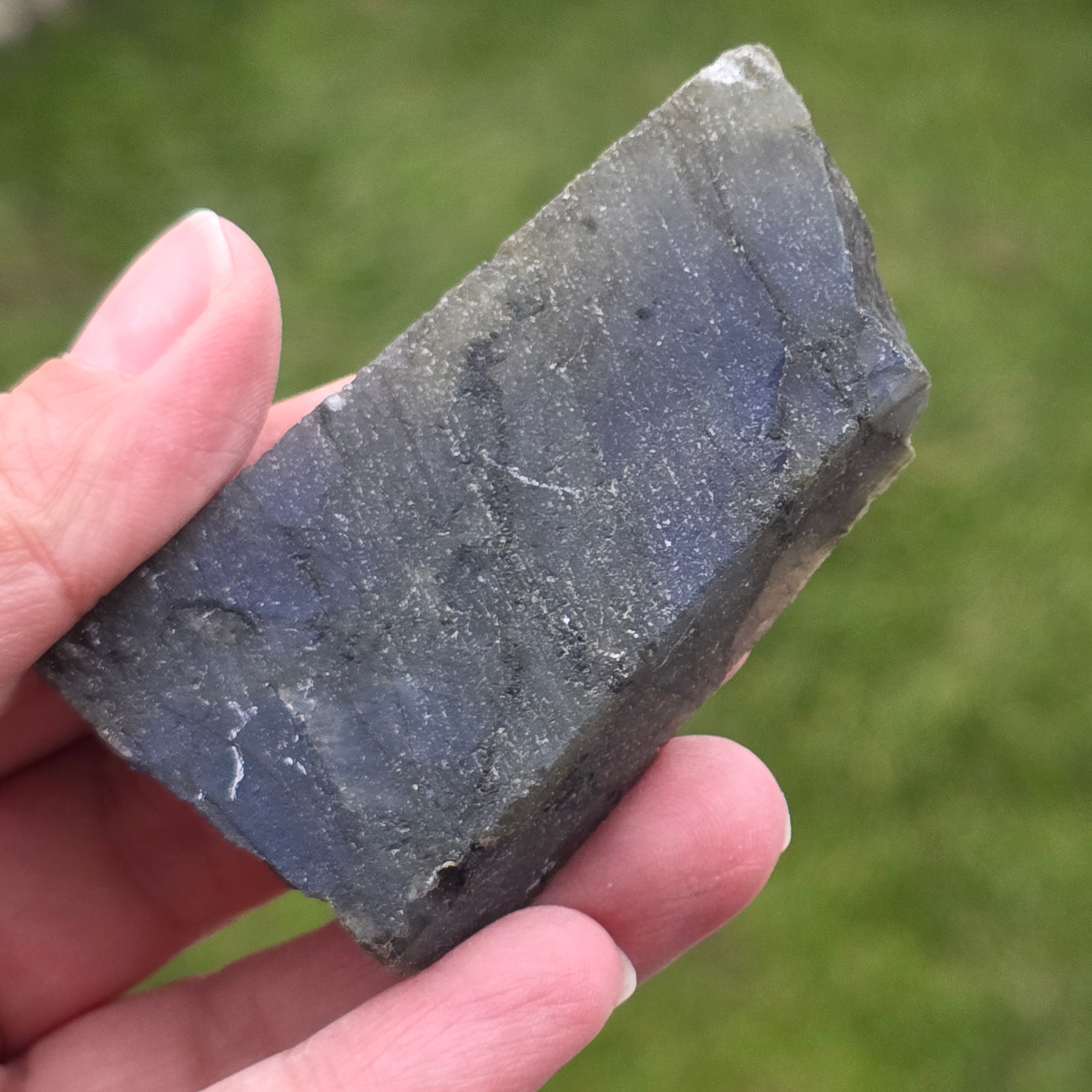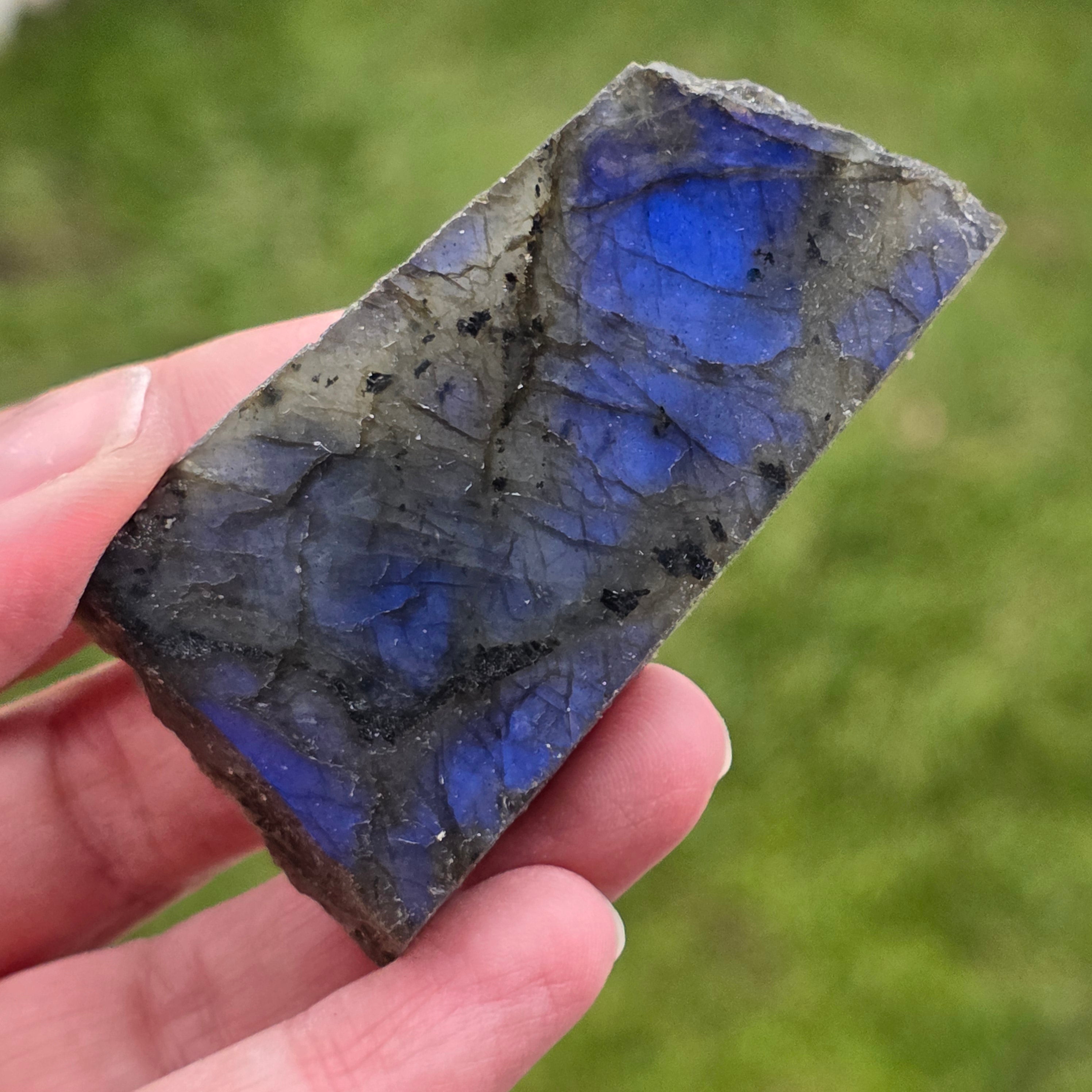 Λαμπραδορίτης γυαλισμένη ακατέργαστη πέτρα στη μία πλευρά m17