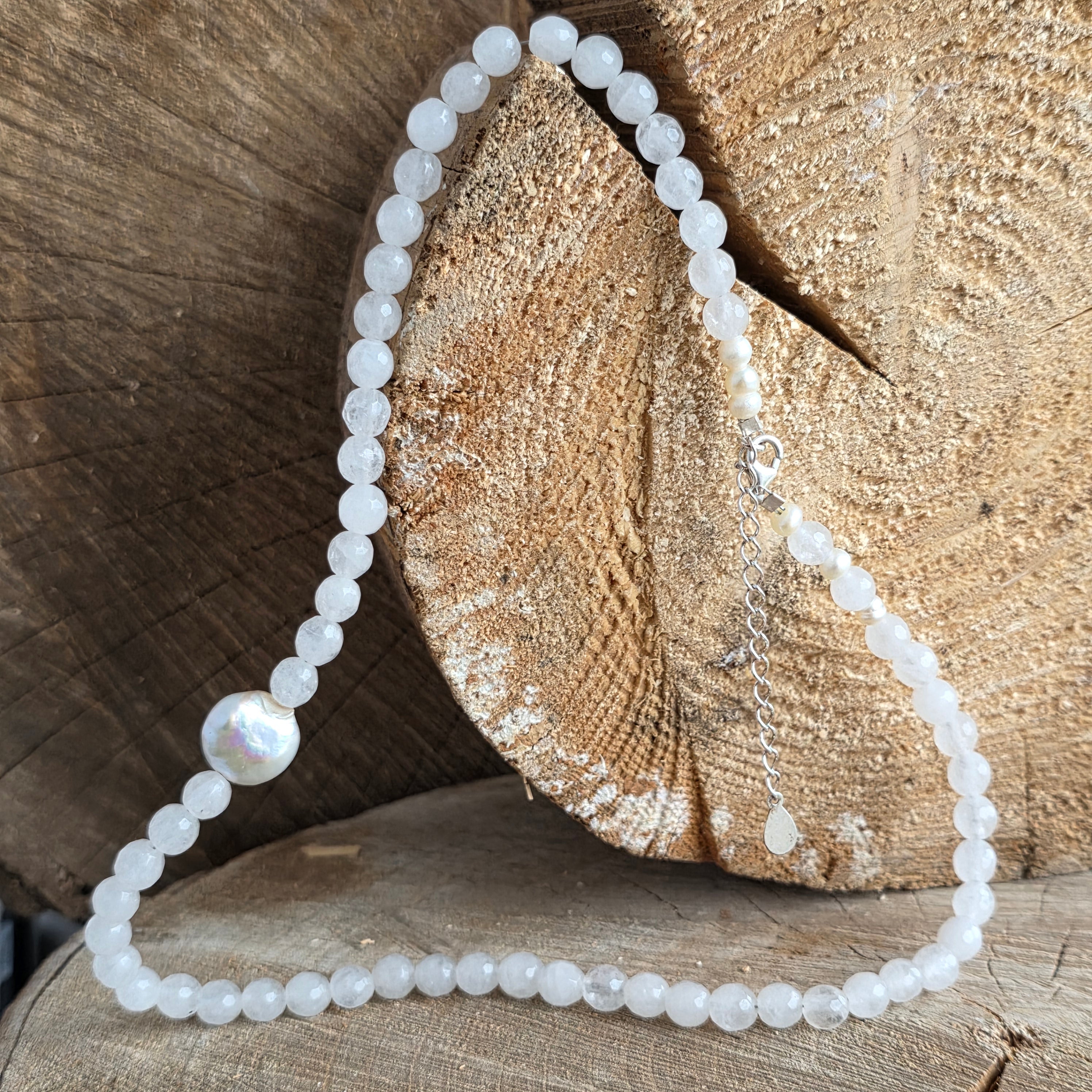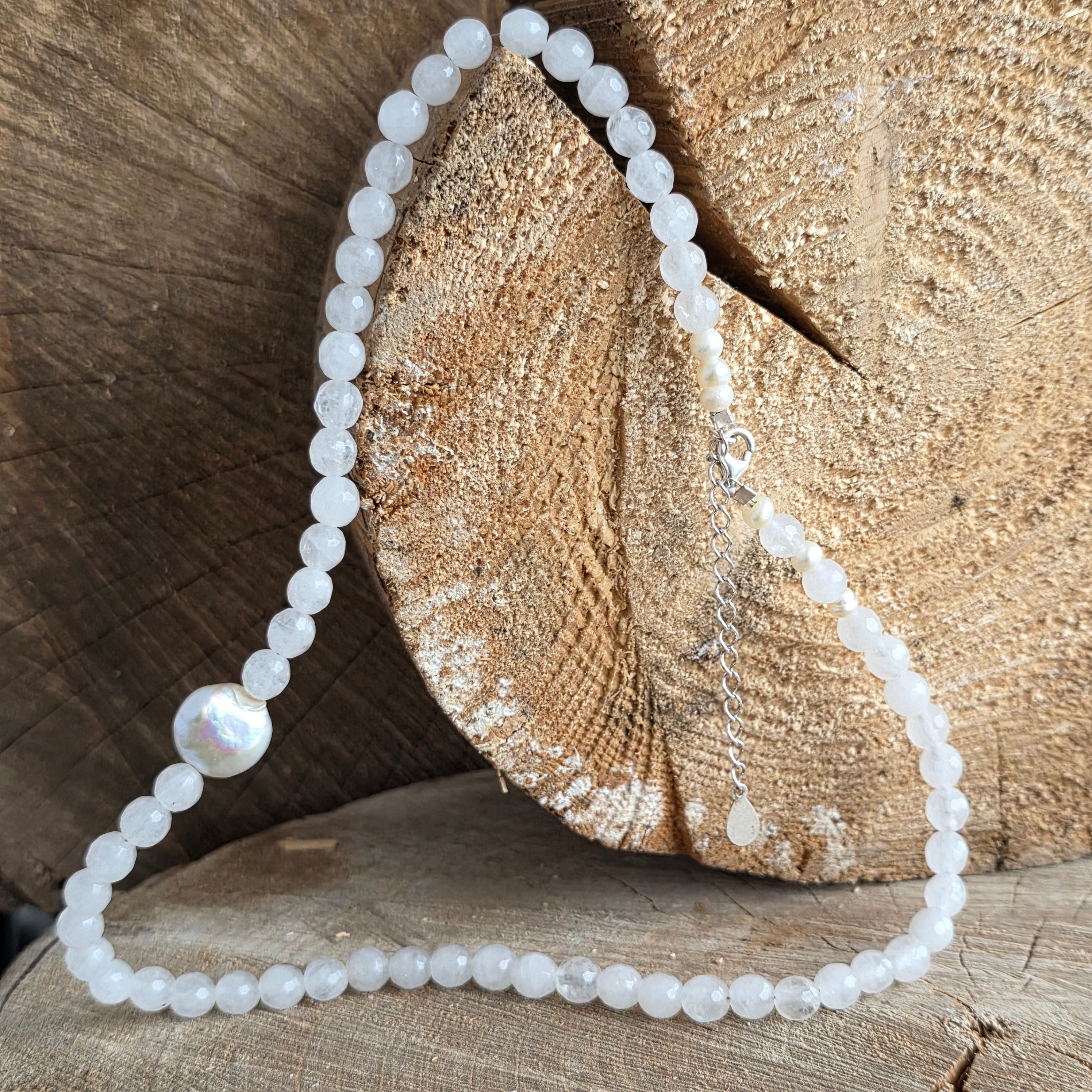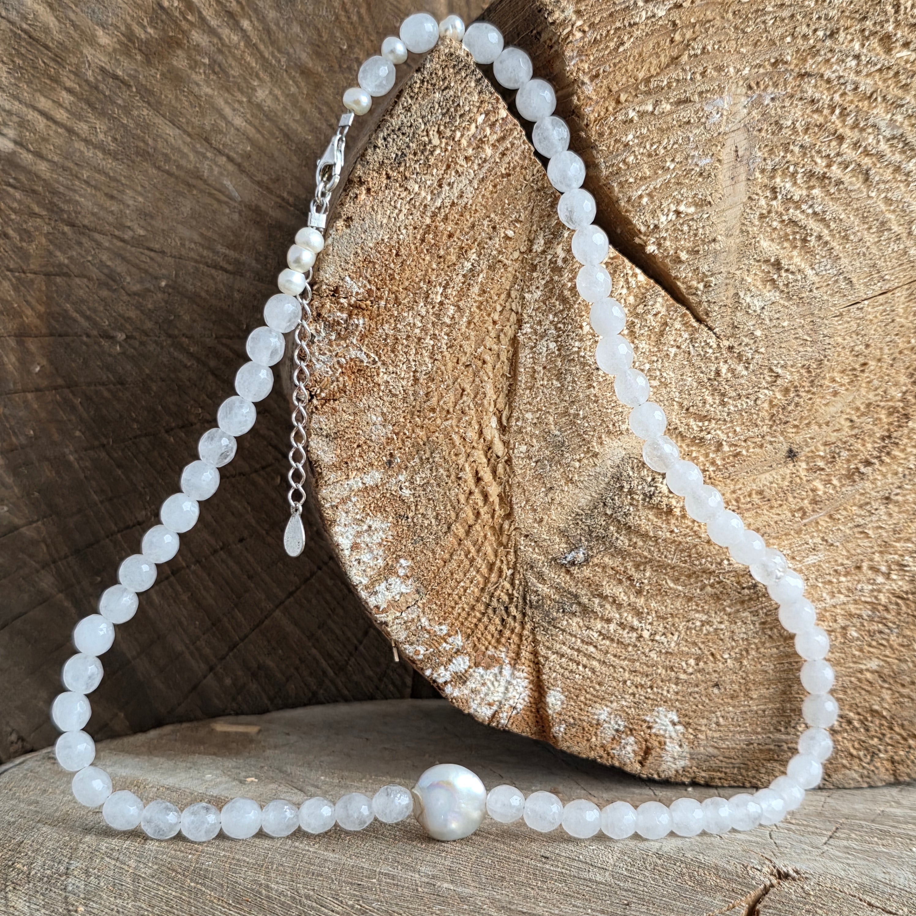 Κολιέ λευκός νεφρίτης και μαργαριτάρια Eira#7