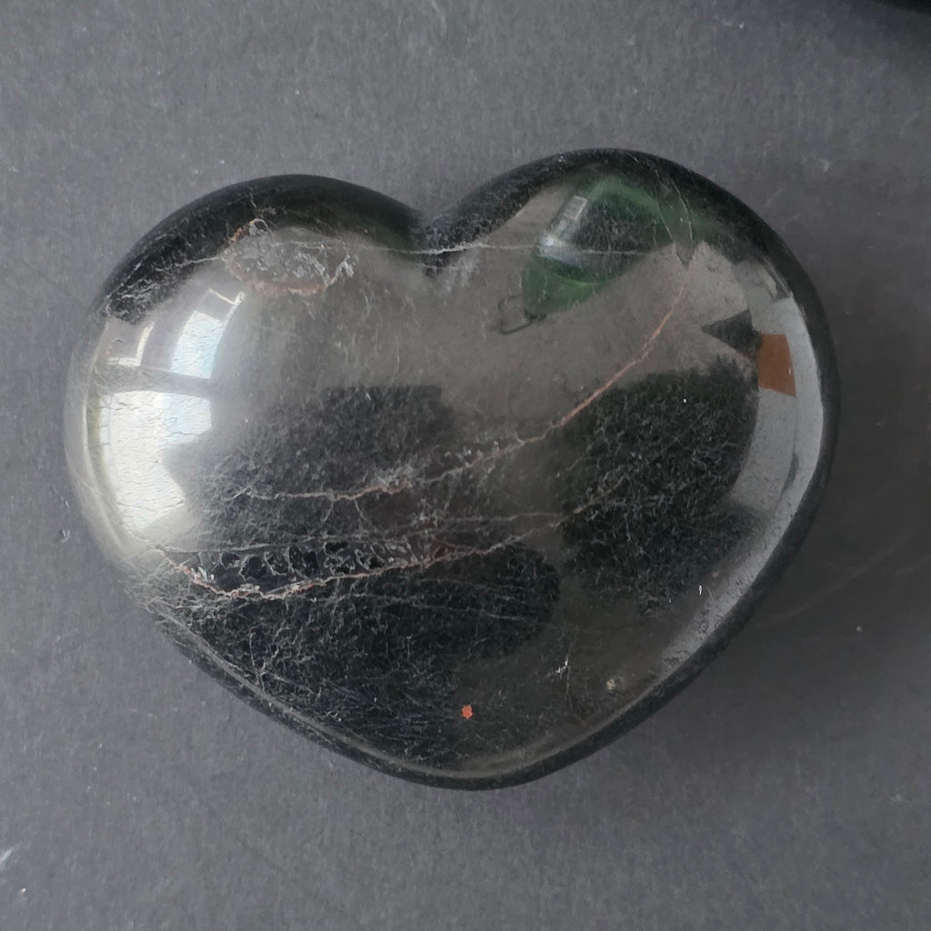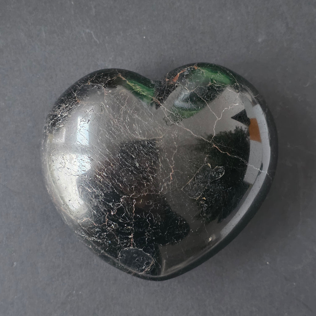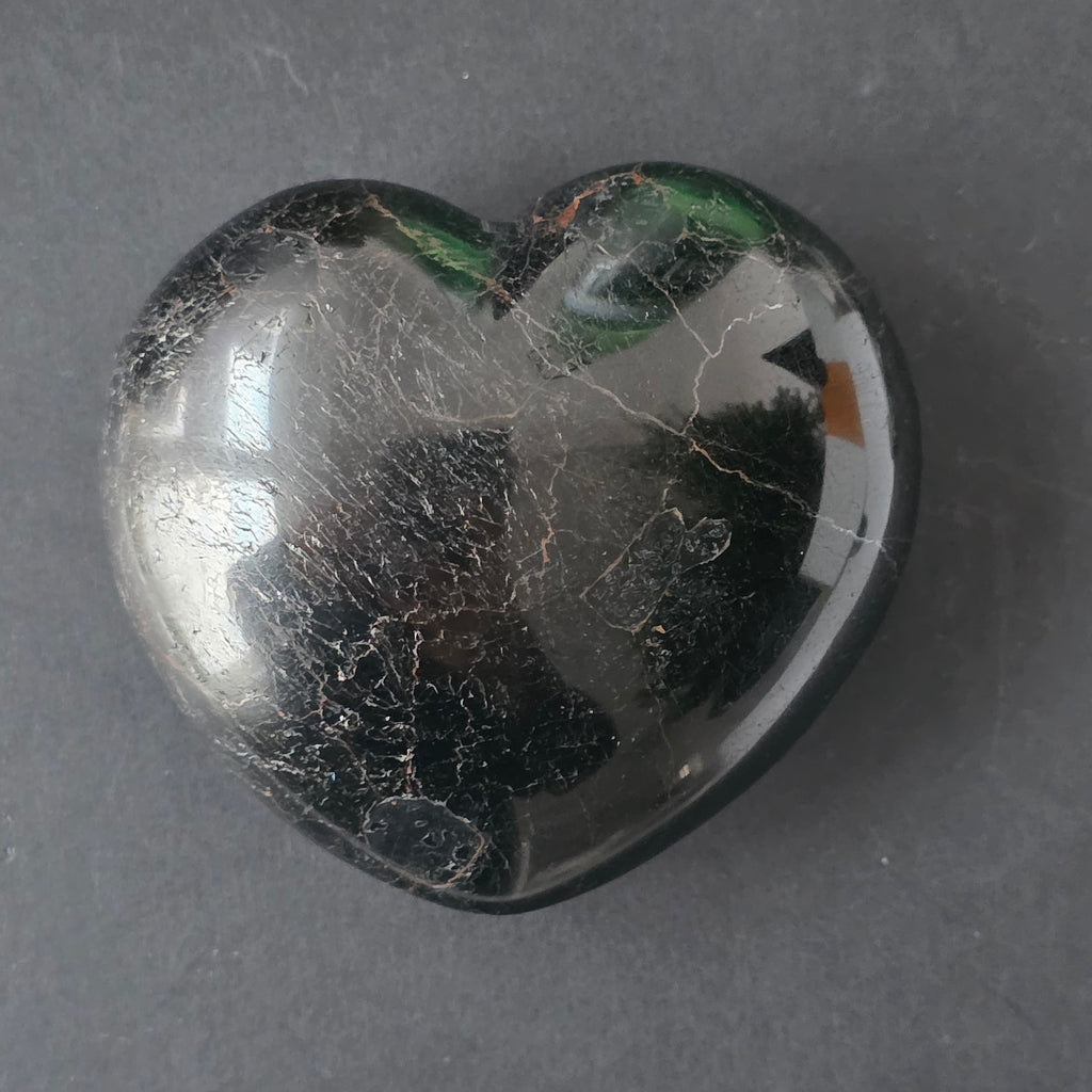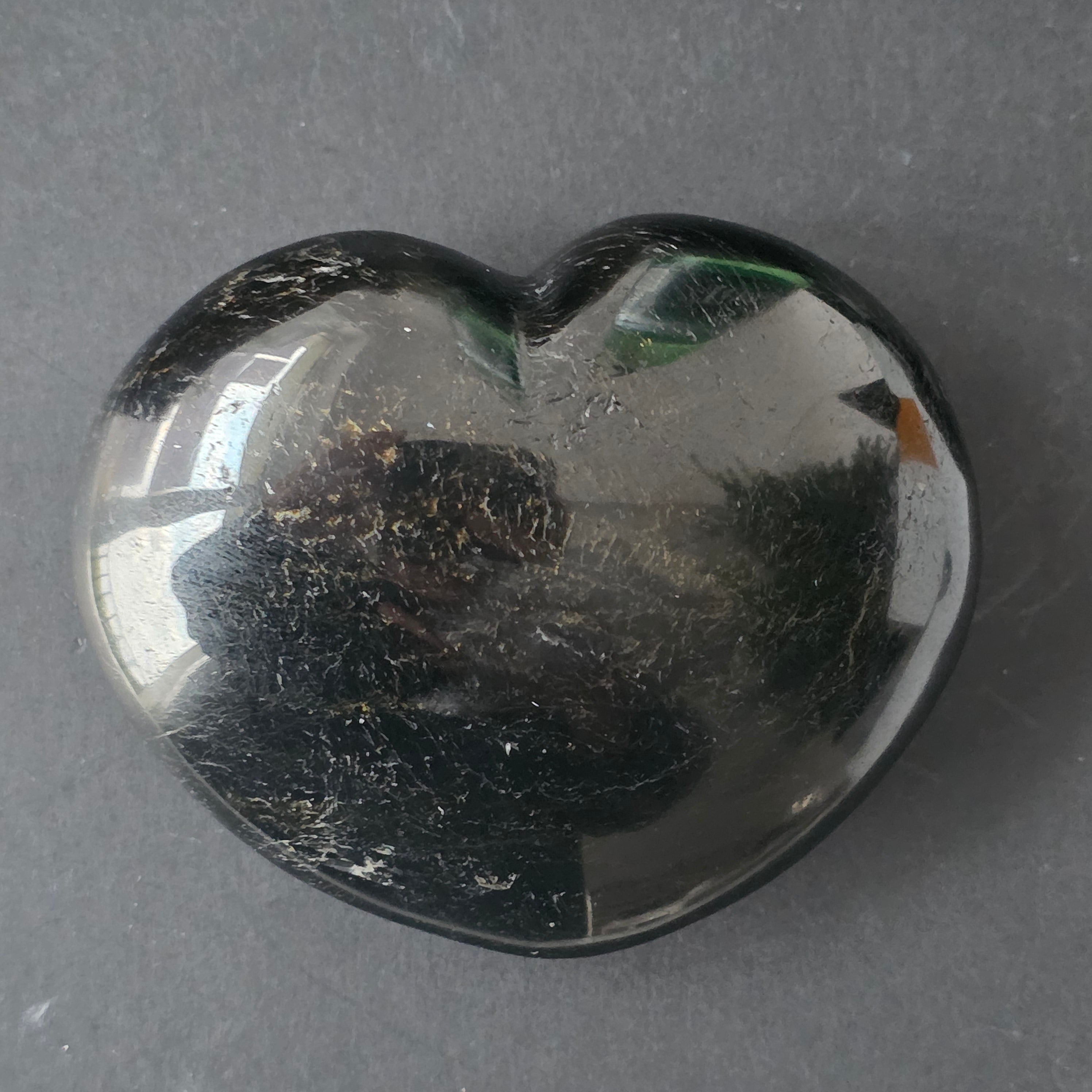 Η καρδιά του Μαύρη τουρμαλίνη Είναι σύμβολο προστασίας και εσωτερικής δύναμης. Το κομψό του σχήμα συγκεντρώνει την ενέργεια αυτής της βαθιάς πέτρας, που αναγνωρίζεται εδώ και αιώνες για την ικανότητά της να απορροφά και να εξουδετερώνει τις αρνητικές ενέργειες. Με τη γυαλιστερή επιφάνεια και την πυκνή υφή της, αυτή η καρδιά μοιάζει να αναπνέει τη δύναμη της Γης, φέρνοντας ισορροπία και ασφάλεια σε κάθε χώρο.