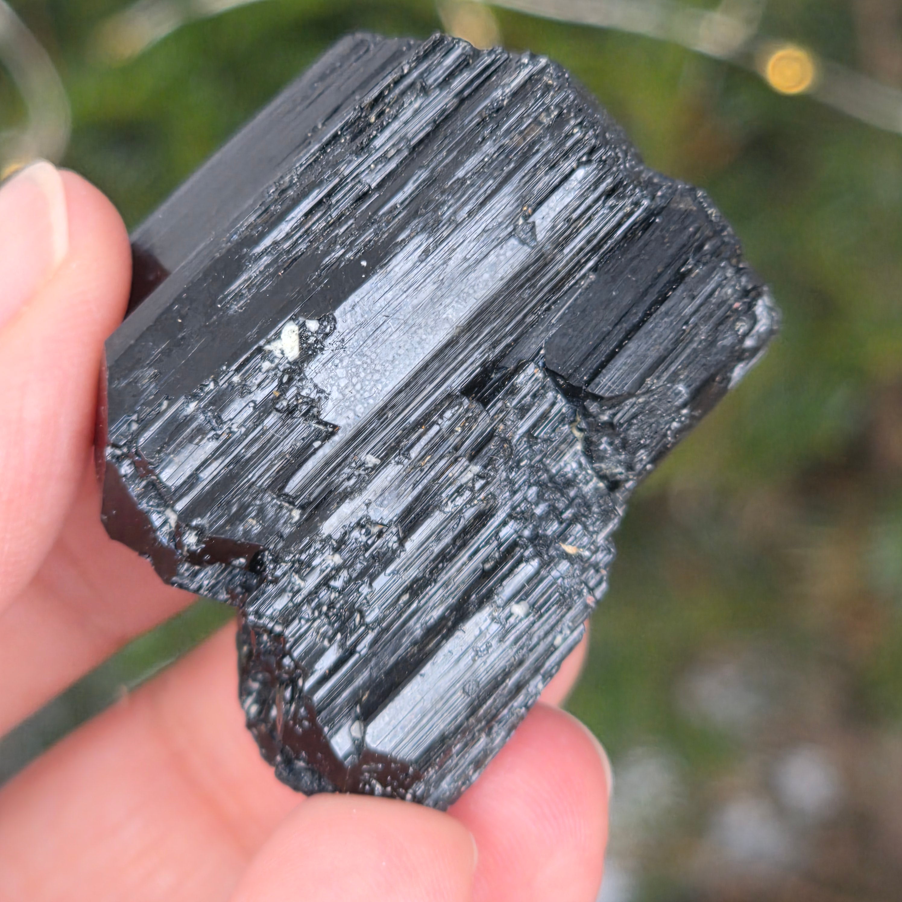Η μαύρη τουρμαλίνη, γνωστή και ως schorl, αποτελείται από ένα σύνθετο μείγμα βοριοπυριτικών και βρίσκεται σε μια ποικιλία κρυσταλλικών μορφών. Είναι πολύ σκληρό ορυκτό και έχει υψηλή αντοχή στις γρατσουνιές και τη φθορά.