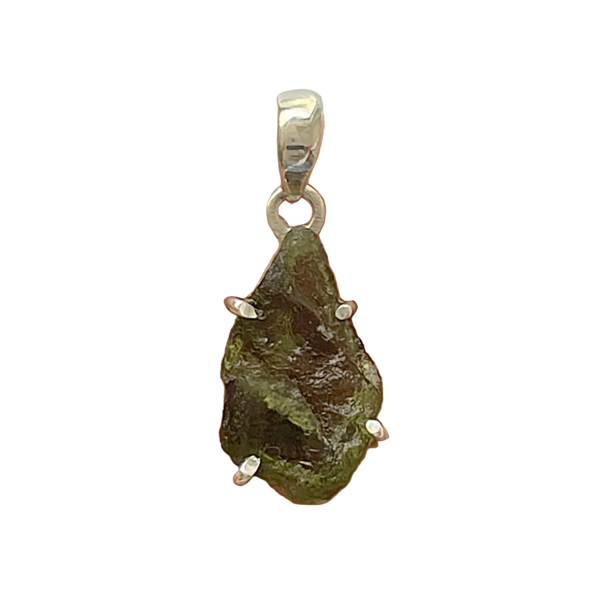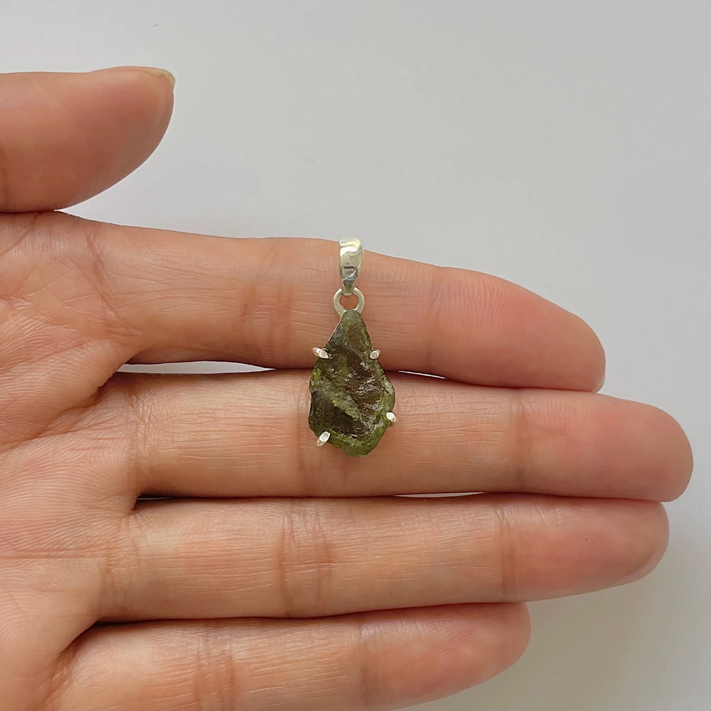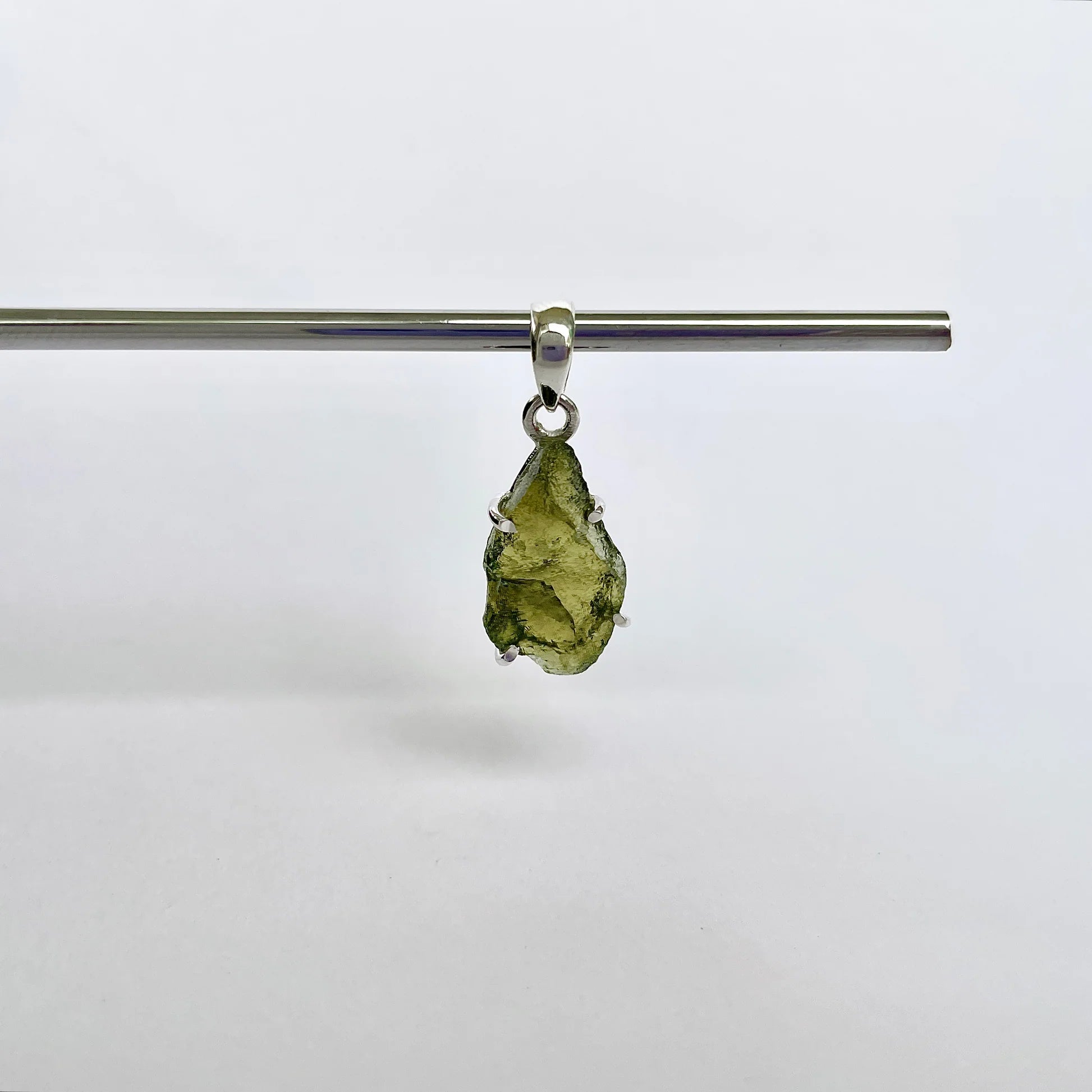 Ένα σπάνιο και αυθεντικό κρεμαστό κόσμημα, με Μολδαβίτλα ακαθάριστο, μινιμαλιστής τοποθετημένος μέσα 925 ασήμι για να τονίσει τη φυσική του μορφή.