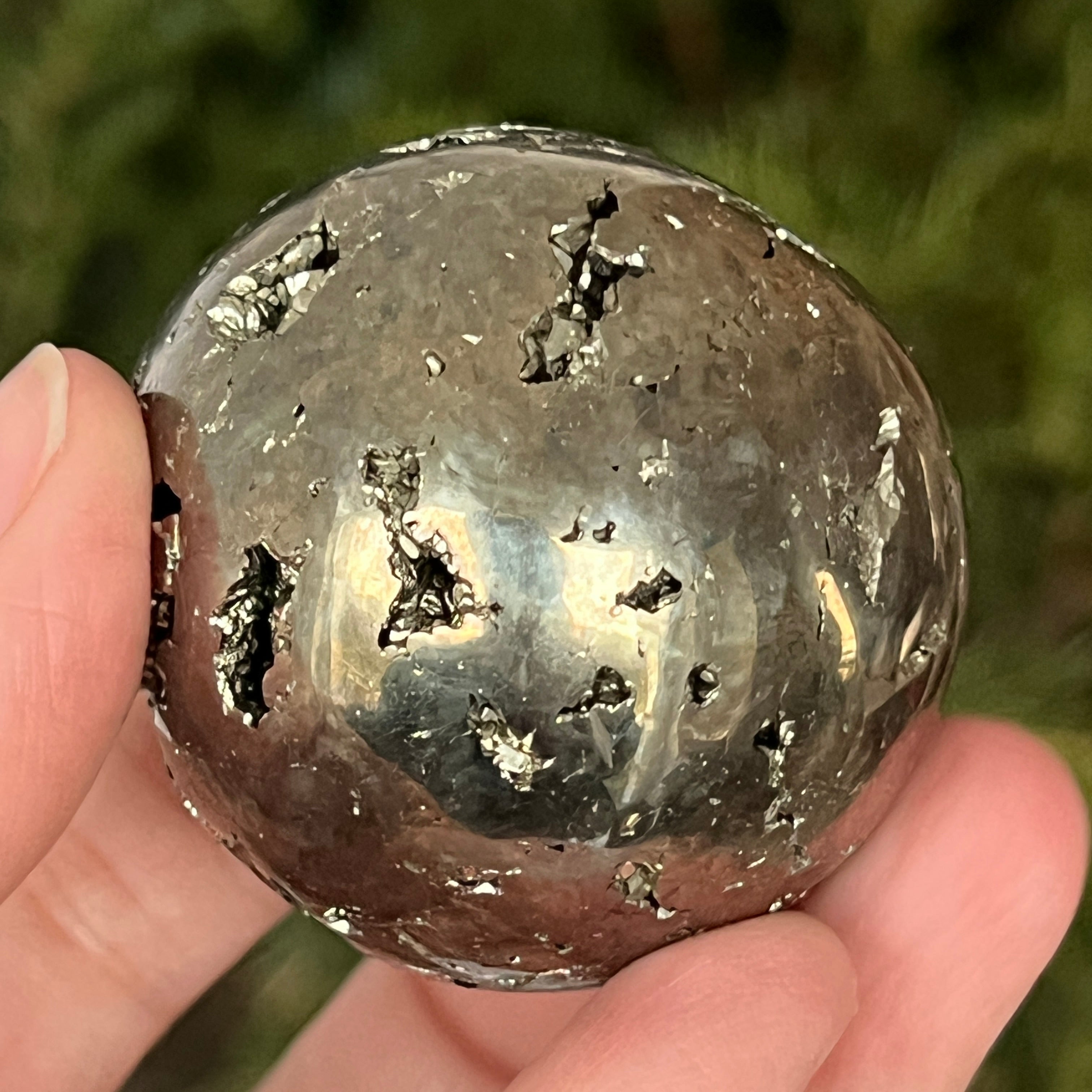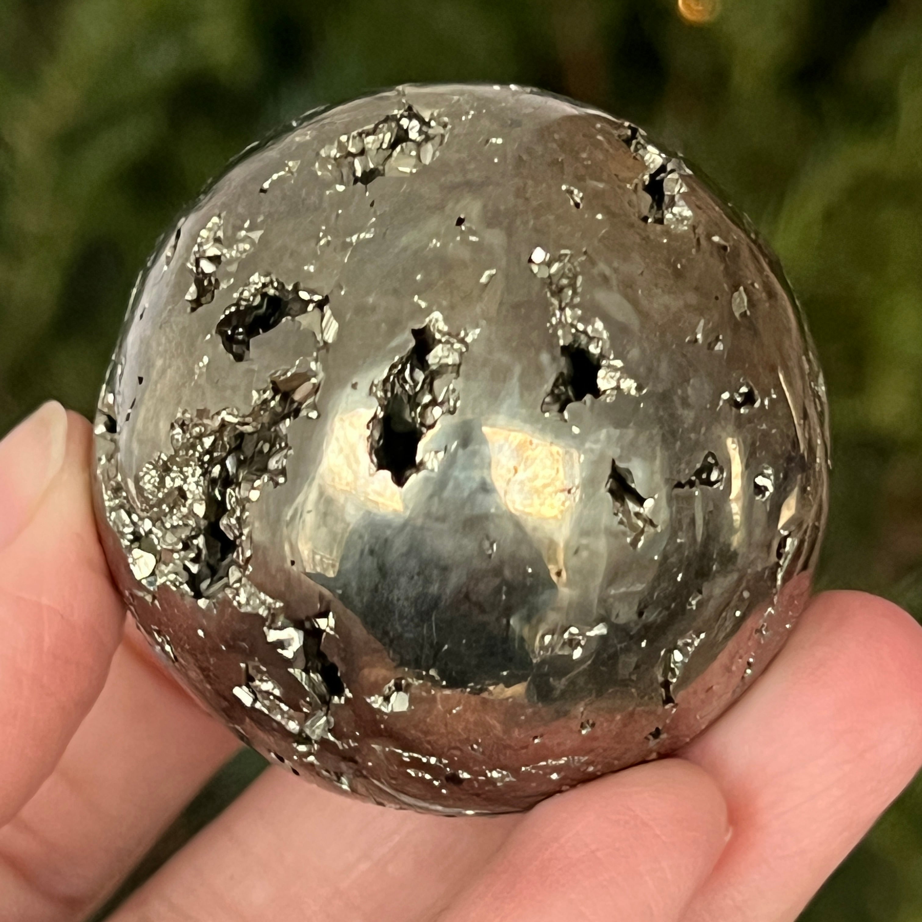 Η σφαίρα από περουβιανό πυρίτη εκπέμπει δύναμη, αφθονία και πνευματική καθαρότητα. Κάθε χρυσή αντανάκλαση θυμίζει το φως της συνείδησης και τη εσωτερική δύναμη που μετατρέπει τις προθέσεις σε πραγματικότητα. Ένα εντυπωσιακό κομμάτι, κατάλληλο τόσο για συλλέκτες όσο και ως διακοσμητικό αντικείμενο με ζωντανή ενέργεια.