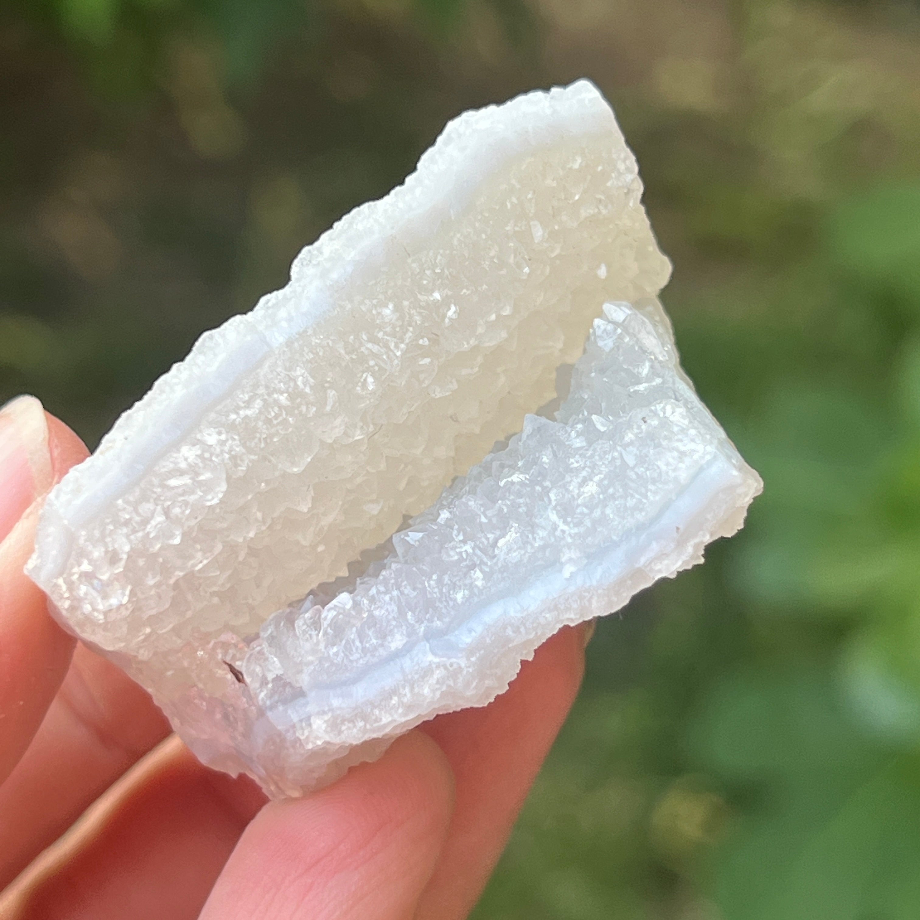 Το Blue Chalcedony συνδέεται γενικά με την επικοινωνία, την έκφραση του εαυτού και της αλήθειας, αυτό μπορεί να βοηθήσει στην τόνωση της αυθεντικής επικοινωνίας.