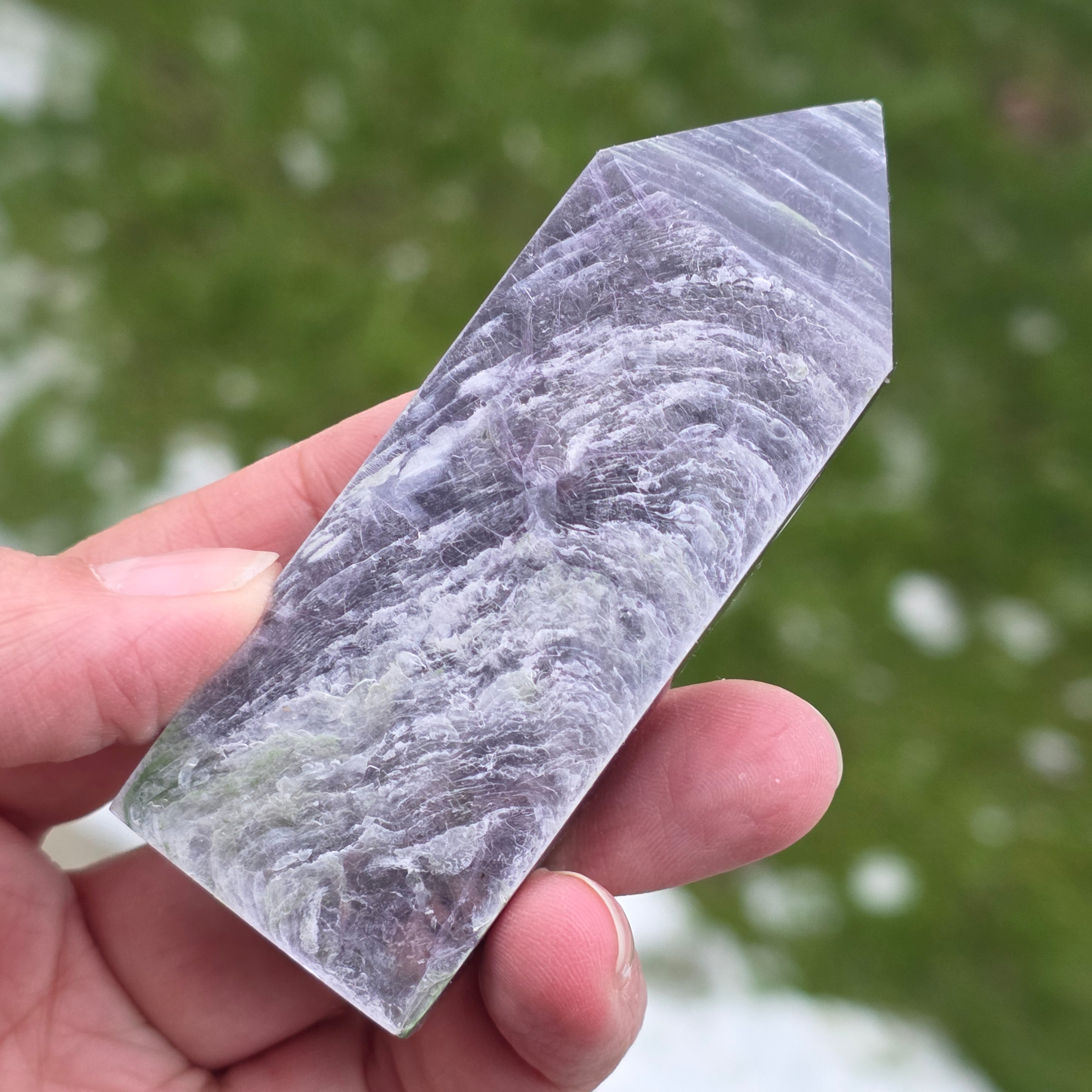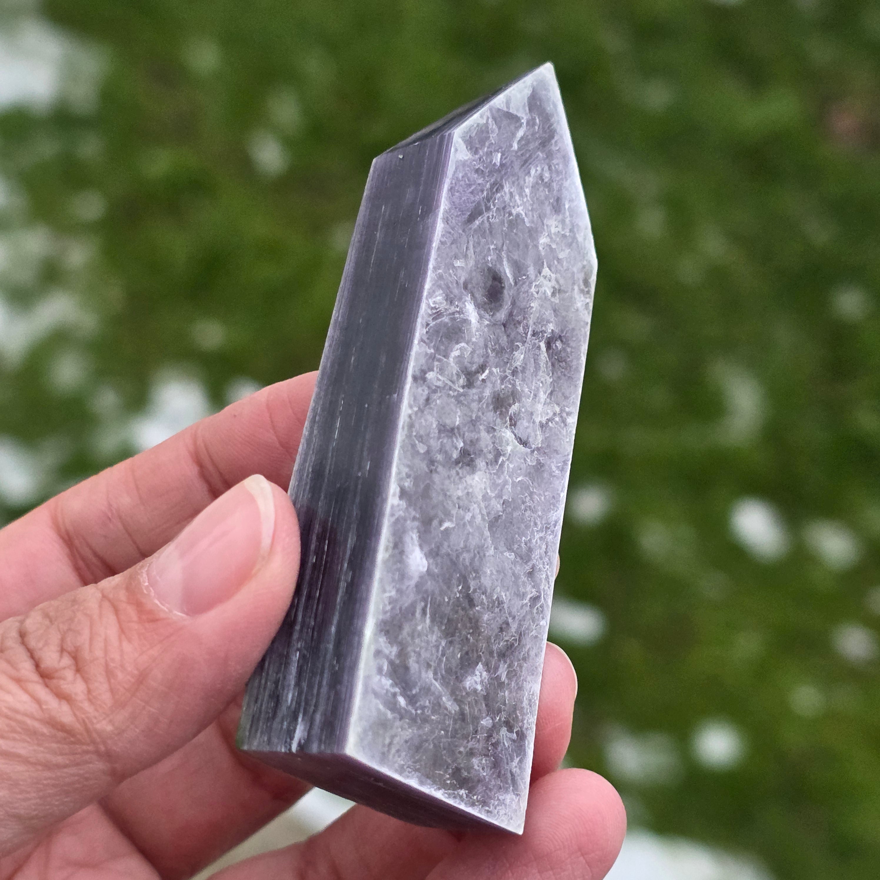 Αυτός ο οβελίσκος από φυσικό λεπιδολίτη, με γυαλιστερό φινίρισμα, είναι ένα λεπτεπίλεπτο και βαθιά καταπραϋντικό αντικείμενο, κατάλληλο για χώρους χαλάρωσης, διαλογισμού ή για να το κρατάτε κοντά σε περιόδους συναισθηματικού στρες. Ο λεπιδολίτης είναι γνωστός για τη σύνδεσή του με την ηρεμία του νου, την ισορροπία των συναισθημάτων και την υποστήριξη των διαδικασιών απελευθέρωσης συσσωρευμένων εντάσεων. Το σχήμα οβελίσκου βοηθά στην καθοδήγηση της ενέργειας με αρμονικό τρόπο, μετατρέποντας αυτό το κομμάτι σε μια διακριτική υποστήριξη για εσωτερική σαφήνεια, ξεκούραση και συναισθηματική σταθερότητα.