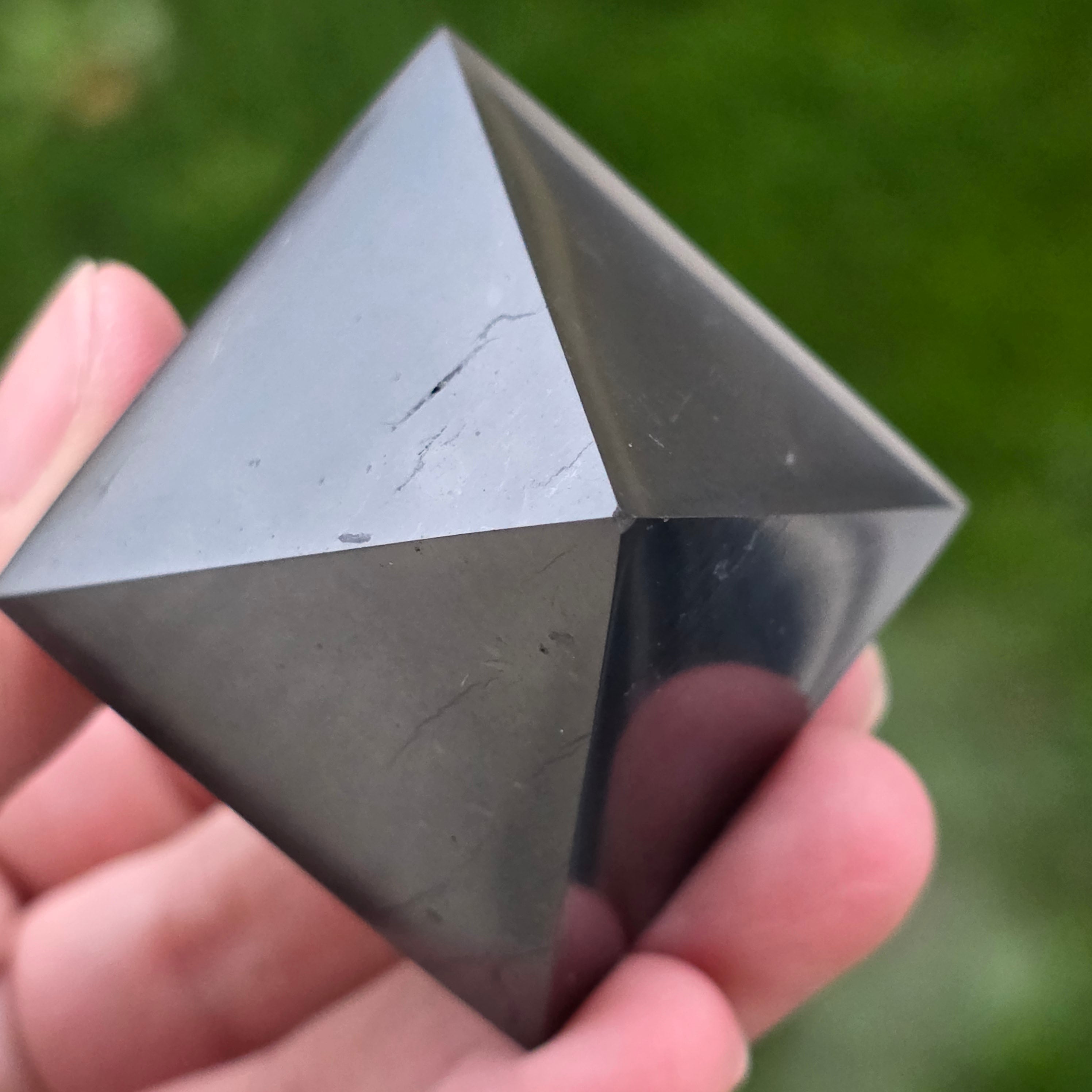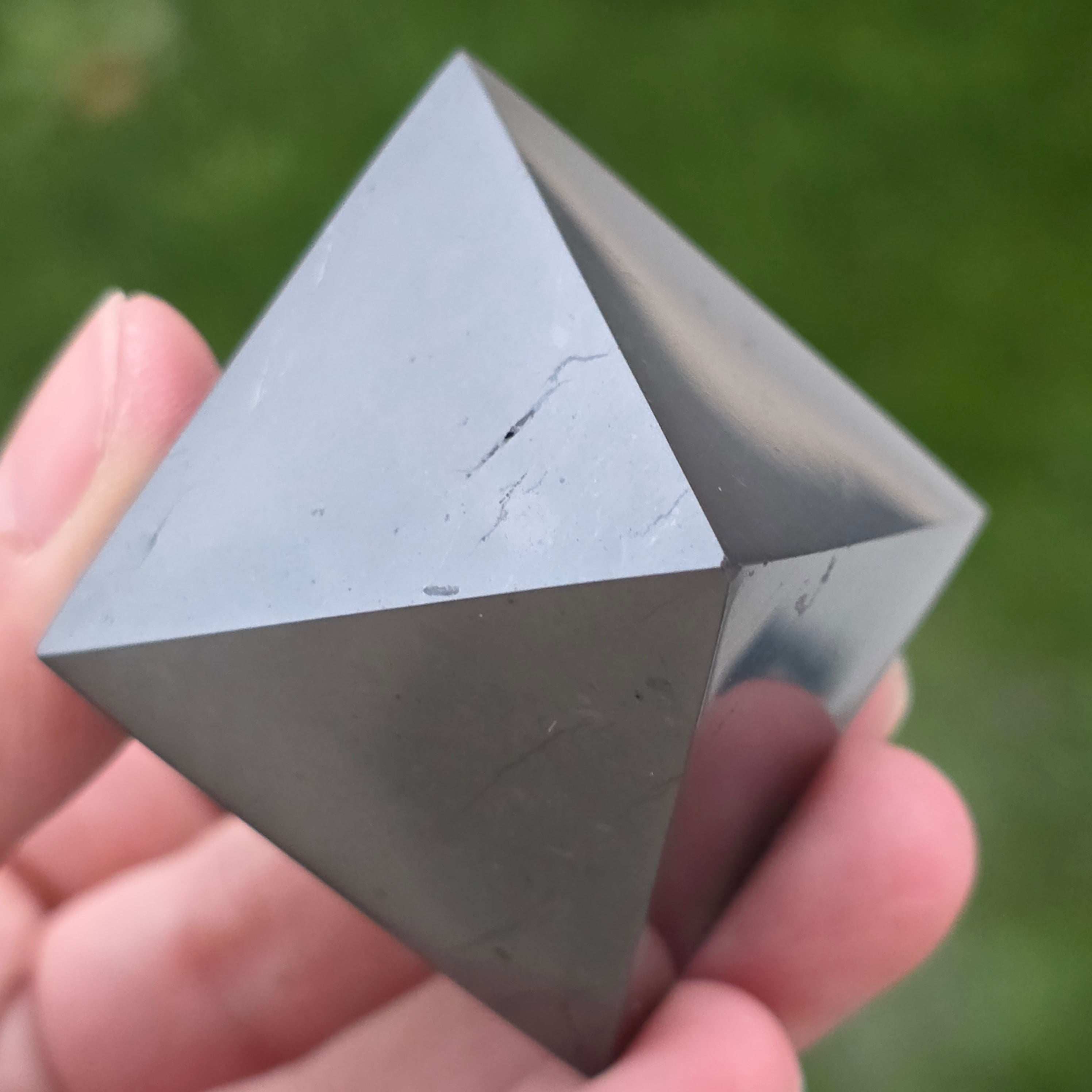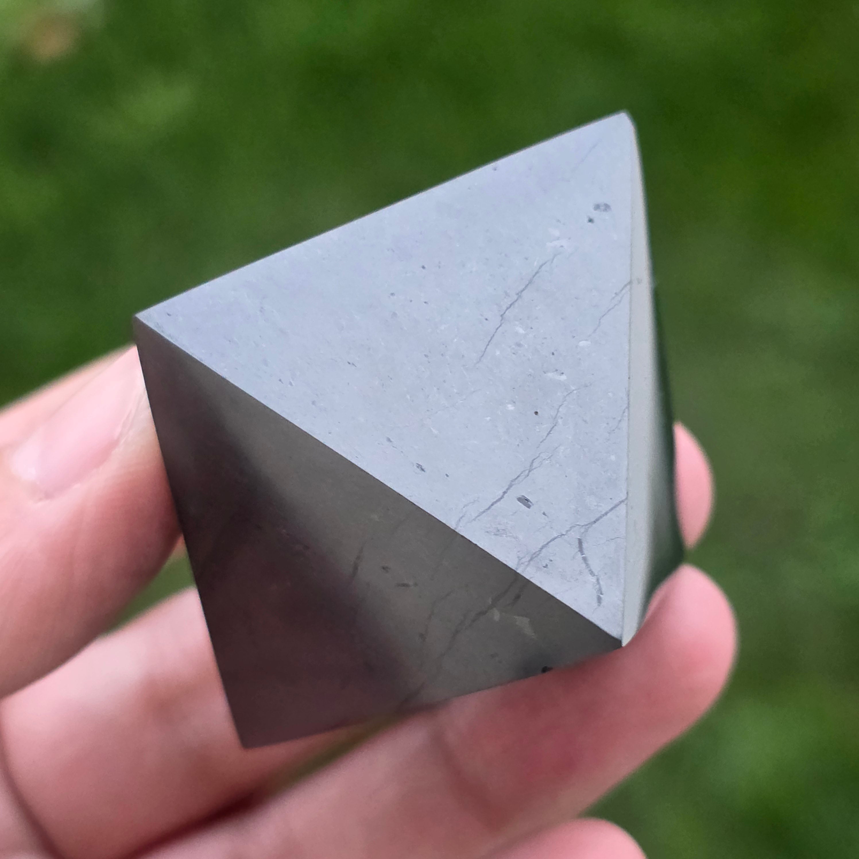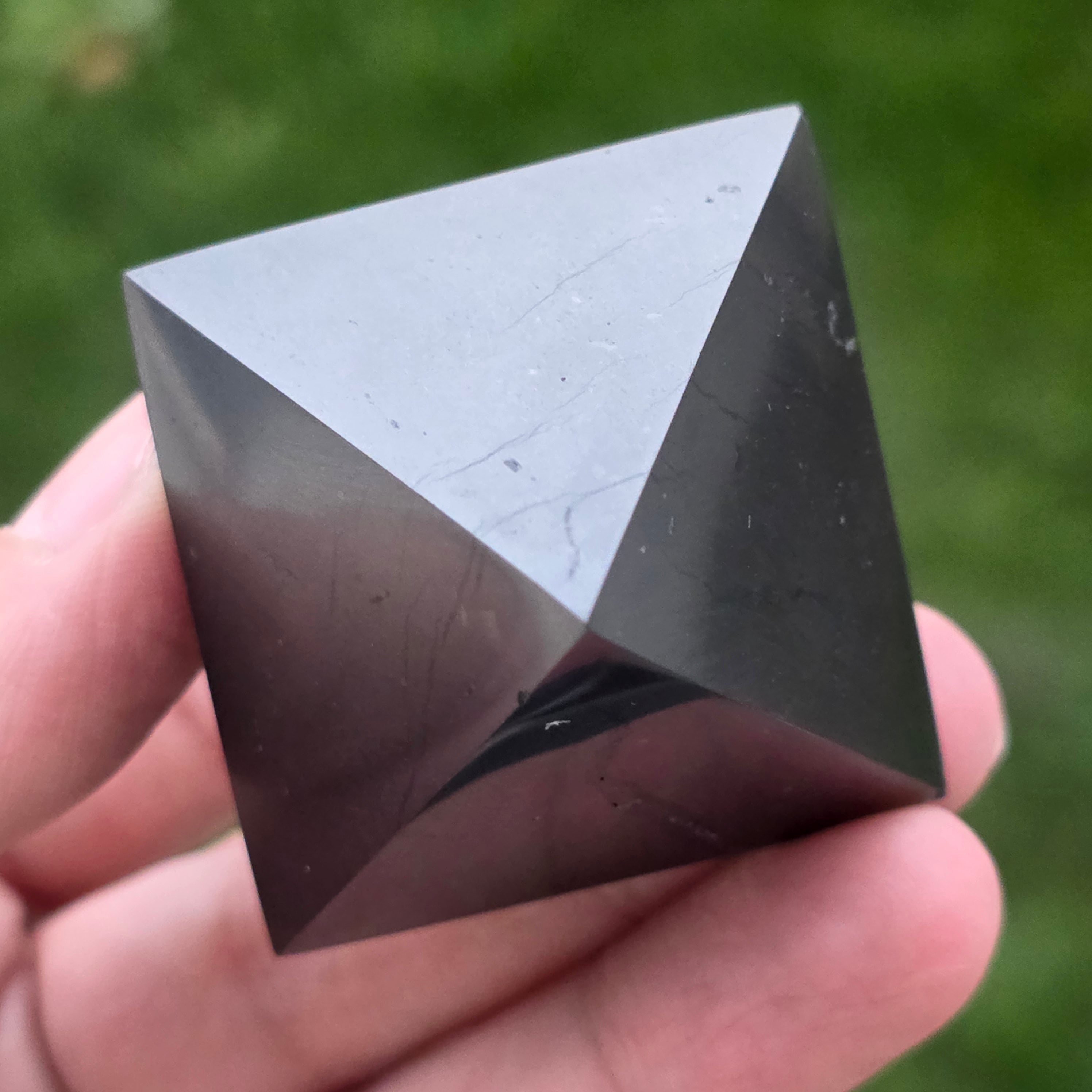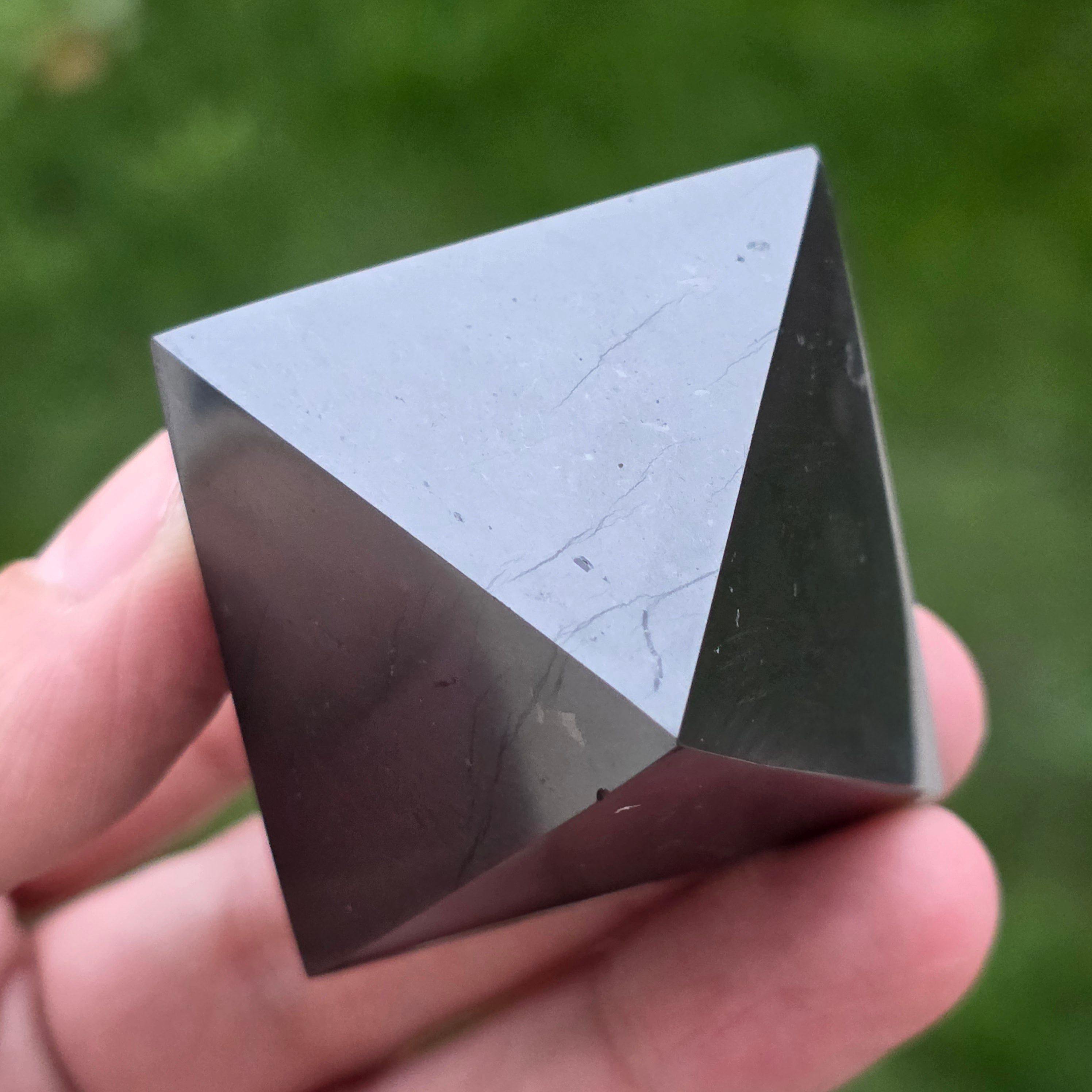 Το οκτάεδρο από σούνγκιτ είναι μια μορφή ισορροπίας και πνευματικής διαύγειας. Στη ιερή γεωμετρία, το οκτάεδρο συνδέεται με το στοιχείο του αέρα και με την αρμονία μεταξύ του νοητικού και του συναισθηματικού επίπεδου. Η τέλεια συμμετρική δομή του υποστηρίζει την εσωτερική τάξη, τη διακριτική ικανότητα και τη δυνατότητα να βλέπουμε τις καταστάσεις από μια καθαρή και ισορροπημένη προοπτική.