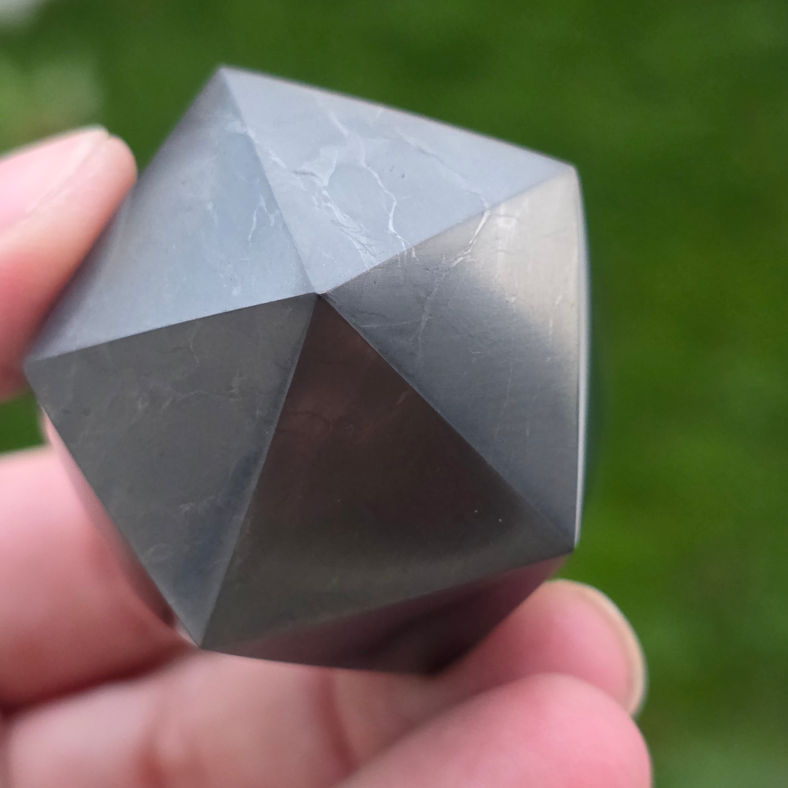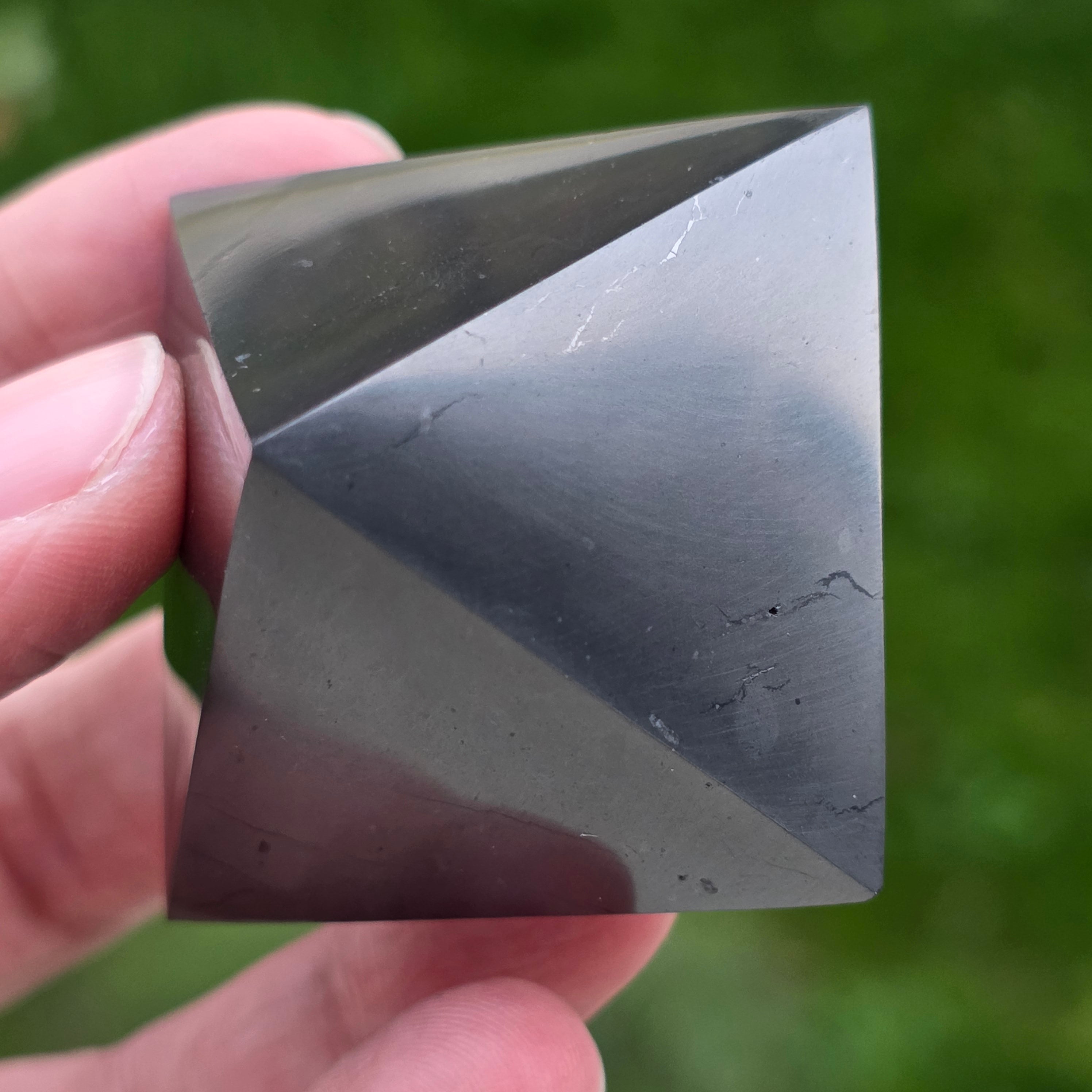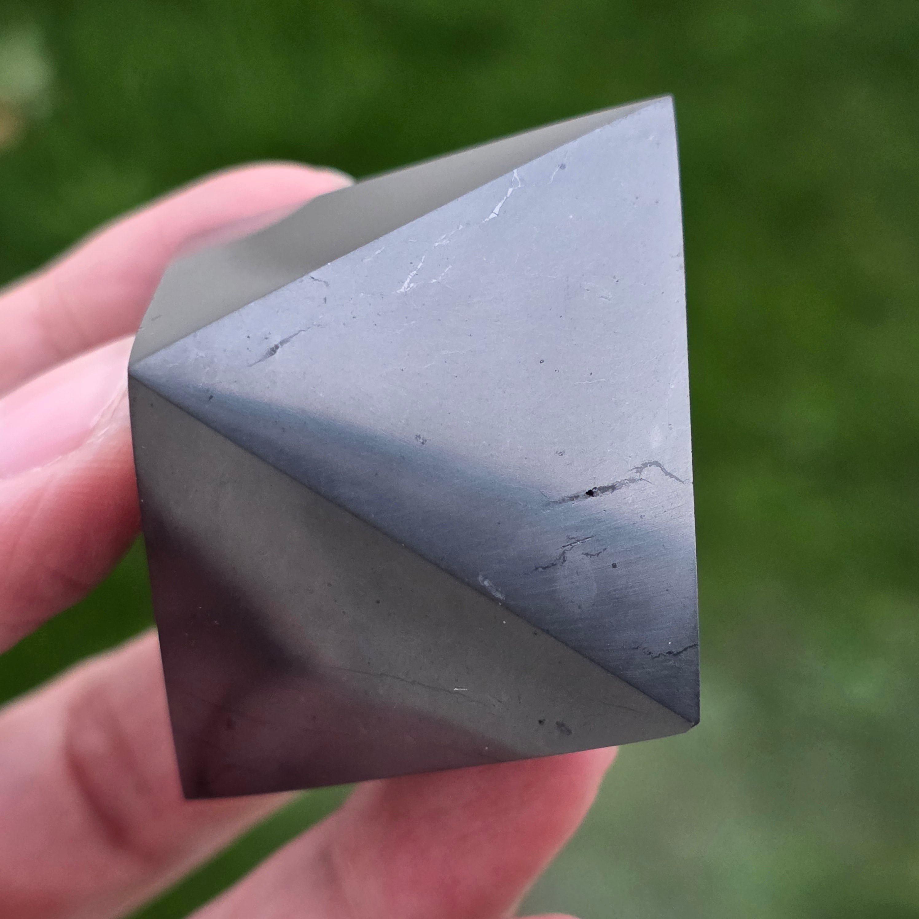 Ο Σουνγκίτης, μια αρχαία πέτρα πλούσια σε άνθρακα, είναι γνωστός για την ικανότητά του να καθαρίζει την ενέργεια και να μειώνει τις ηλεκτρομαγνητικές επιρροές. Ο συνδυασμός με την οκταεδρική μορφή δημιουργεί ένα αντικείμενο με ρόλο λεπτής σταθεροποίησης, κατάλληλο για χώρους όπου γίνεται πνευματική εργασία ή λαμβάνονται σημαντικές αποφάσεις.