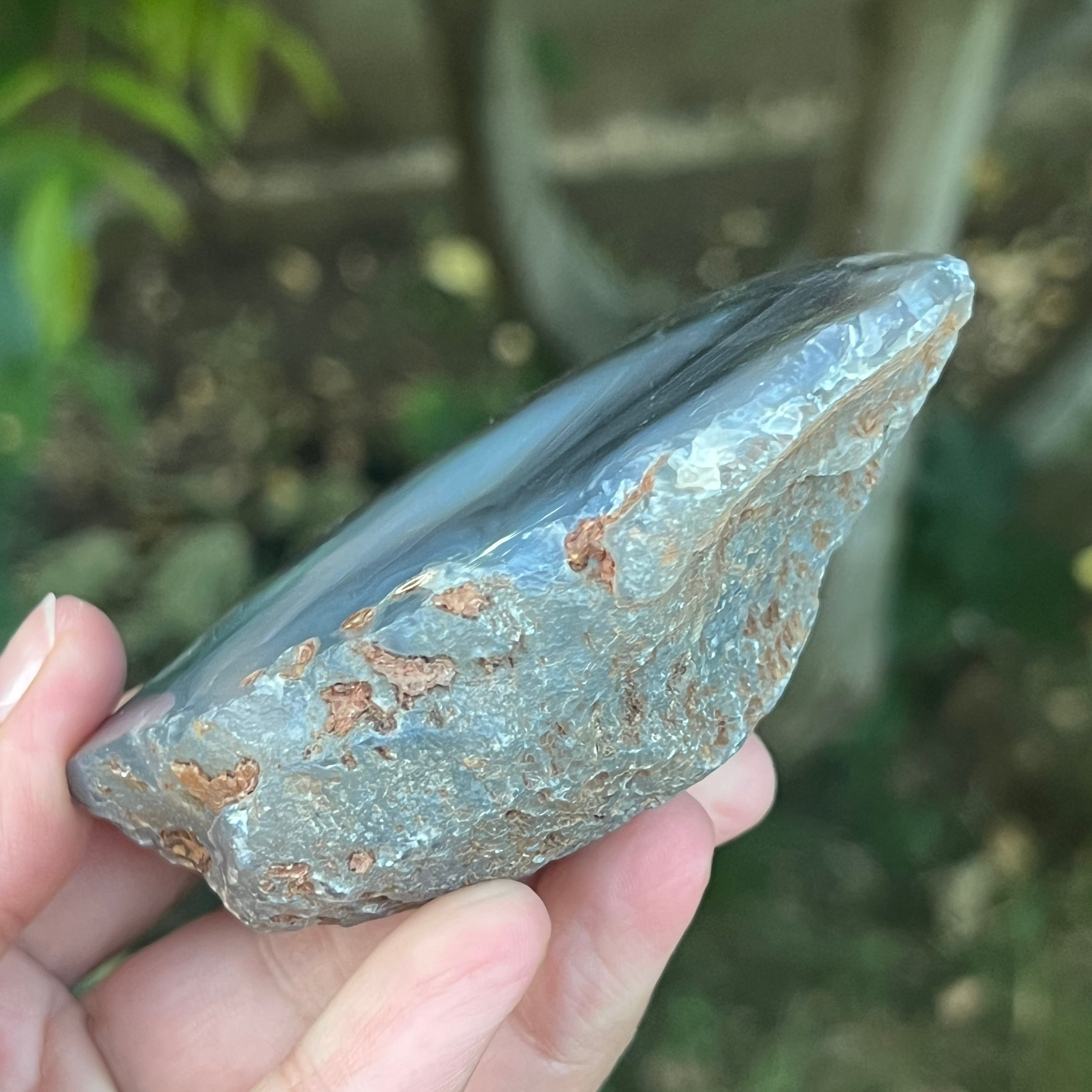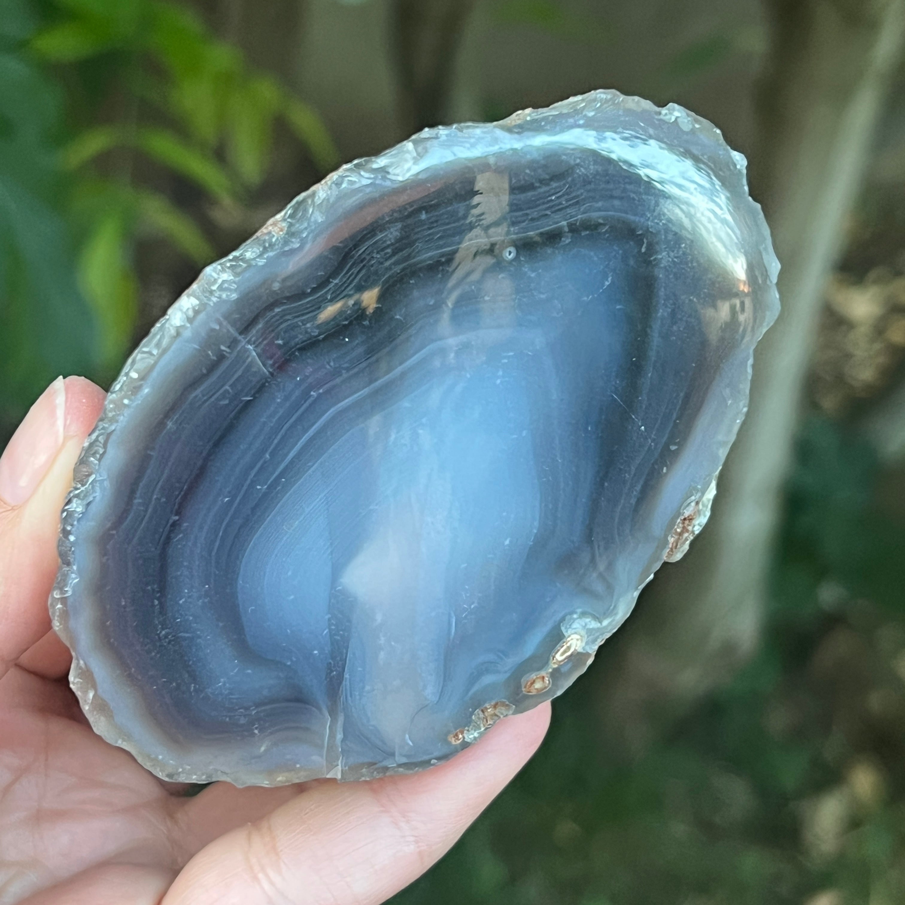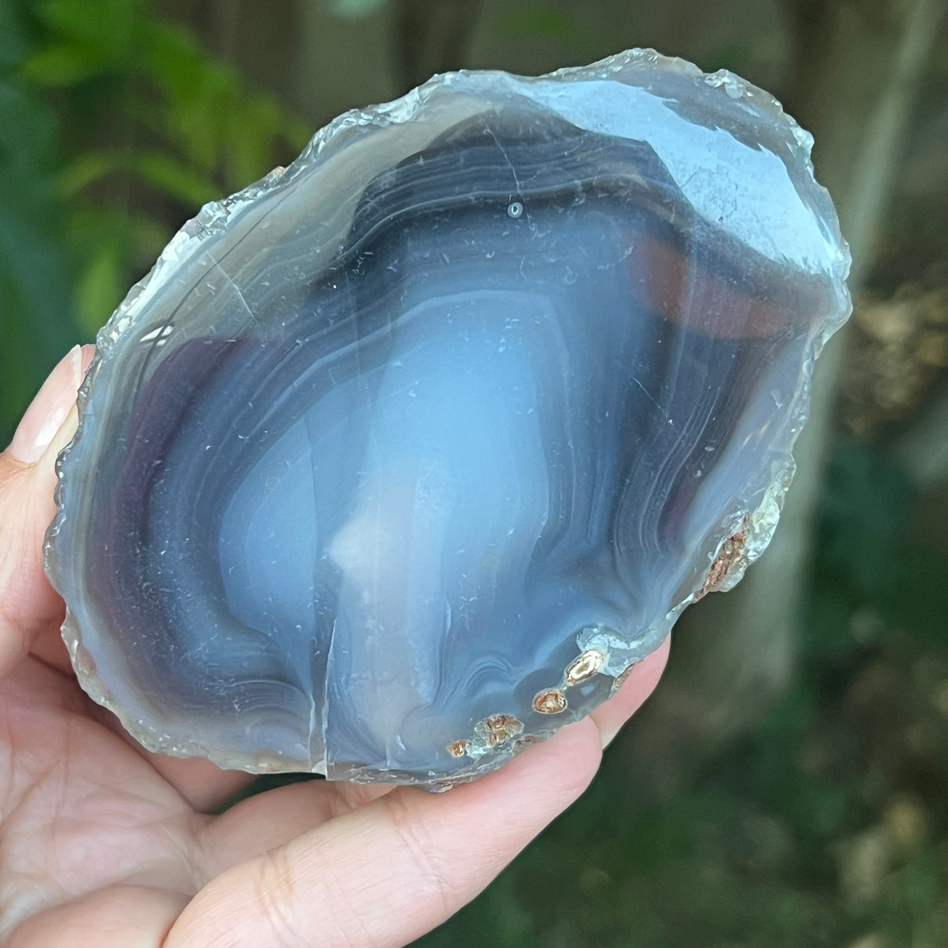 Σακουατική Μποτσουάνα Πρόκειται για μια σπάνια και κομψή ποικιλία από αχάτη, αναγνωρισμένη για τις λεπτές μπάντες του σε αποχρώσεις του γκρι, ροζ, λευκού και καφέ, που προέρχεται από τη Μποτσουάνα. Είναι μια πέτρα συναισθηματικής άνεσης και προστασίας, ηρεμώντας τις ανησυχίες και τους βαθιούς φόβους. Υποστηρίζει τις διαδικασίες του εσωτερικού μετασχηματισμού, συμβάλλοντας στην απελευθέρωση της αρνητικής σκέψης. Σχετίζεται με το τσάκρα ρίζας και Τσάκρα του τρίτου ματιού (AJNA - Chakra 6), ευνοώντας την εσωτερική σταθερότητα και διανοητική σαφήνεια. Η αχάτη της Μποτσουάνα χρησιμοποιείται συχνά στον διαλογισμό για να αυξήσει τη συγκέντρωση και τη διαίσθηση.