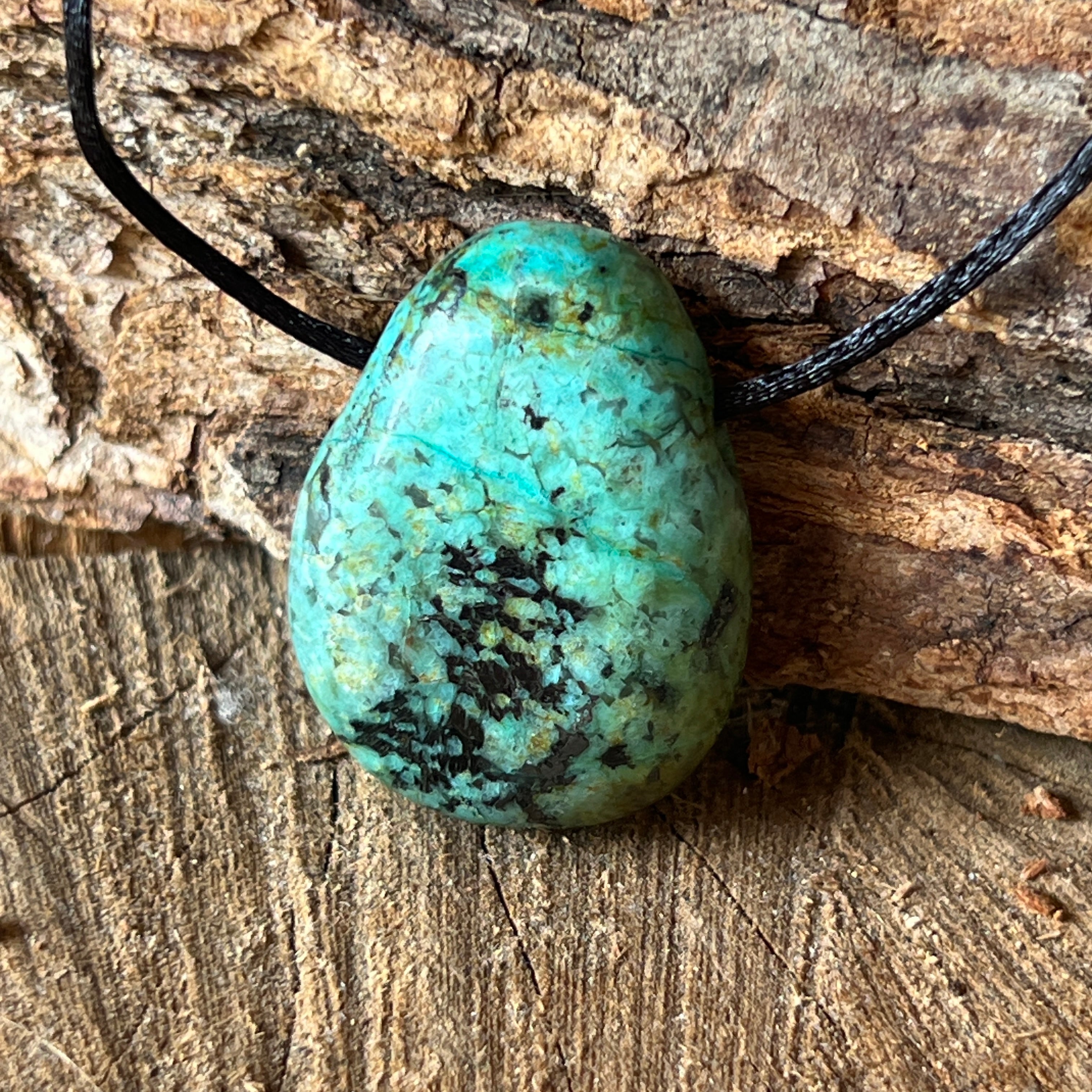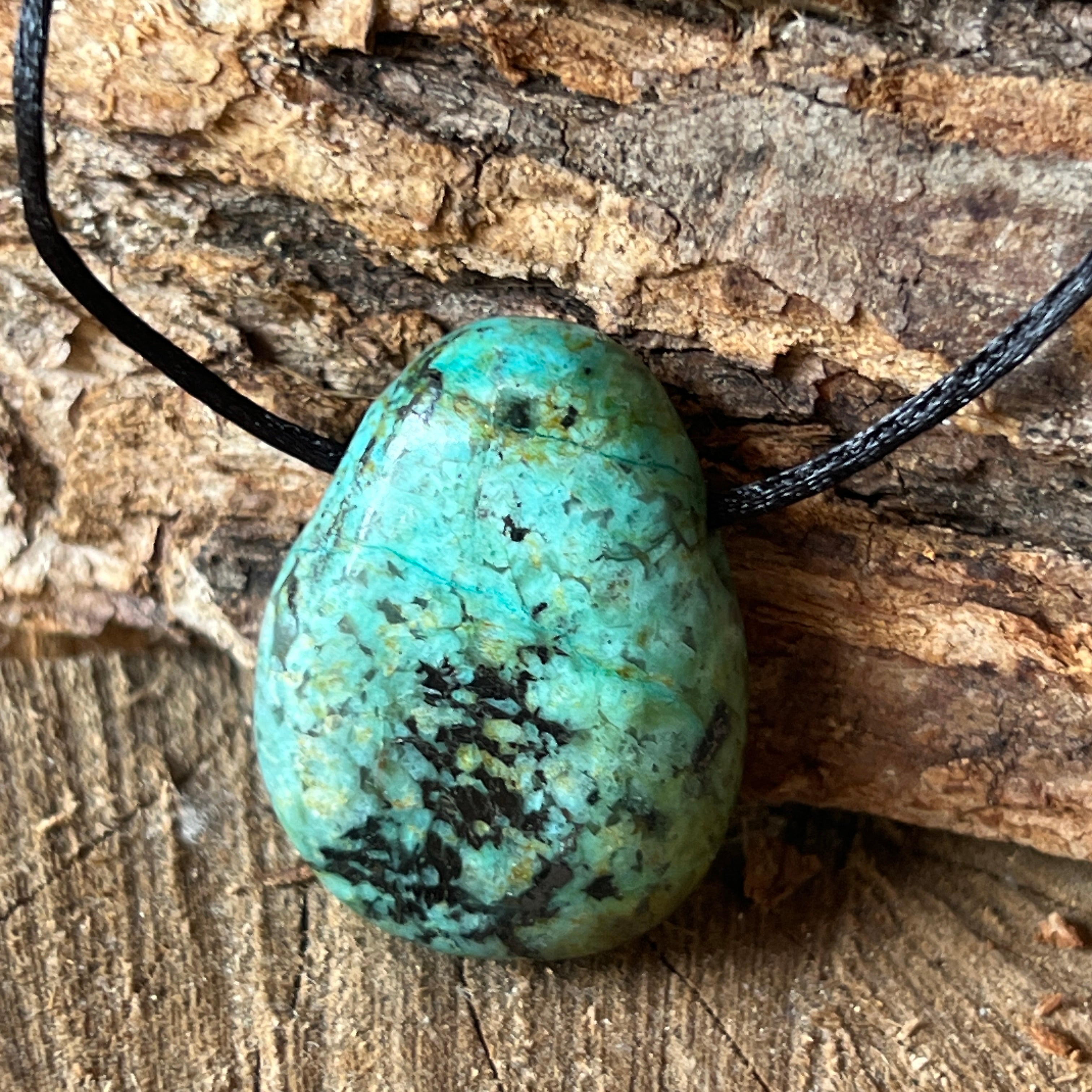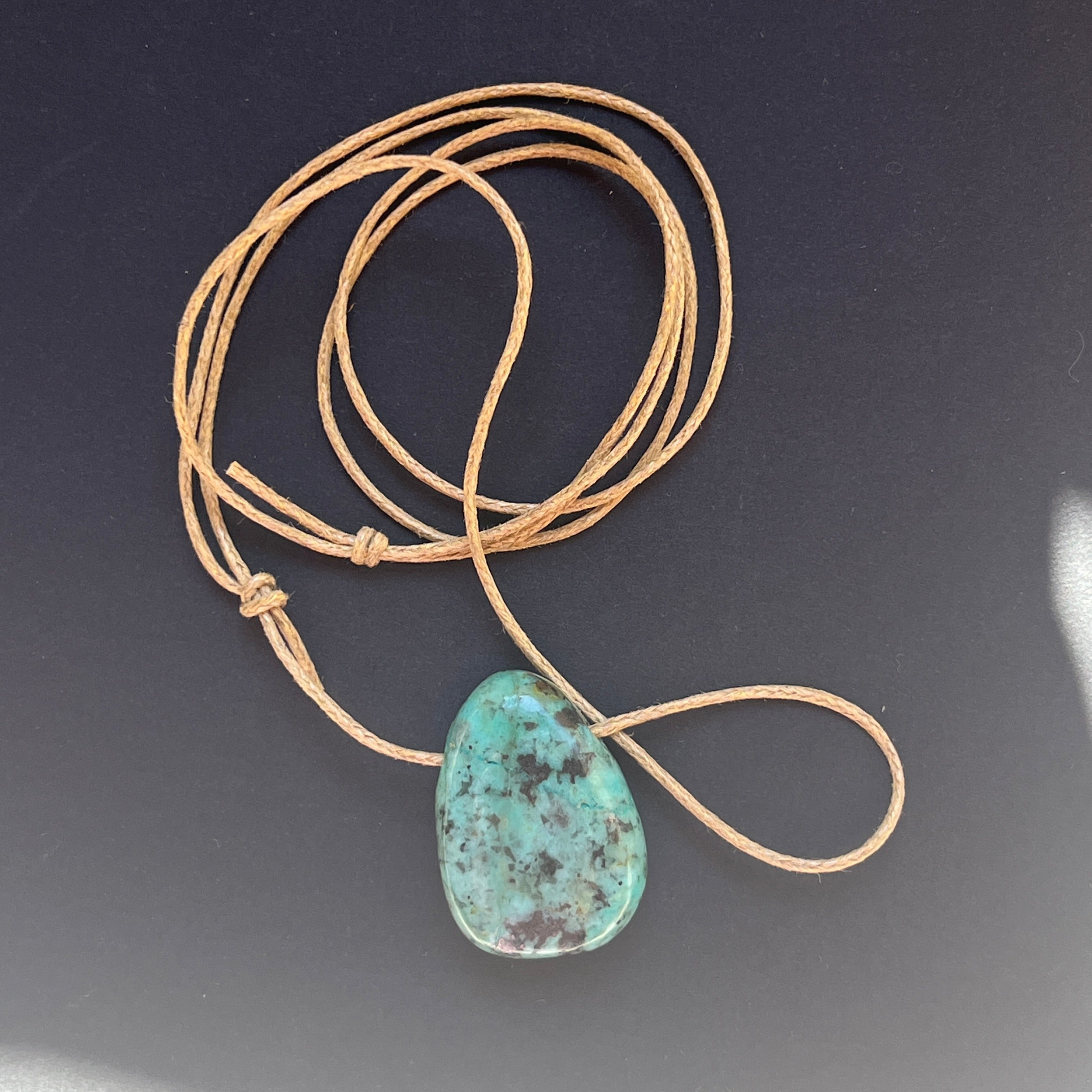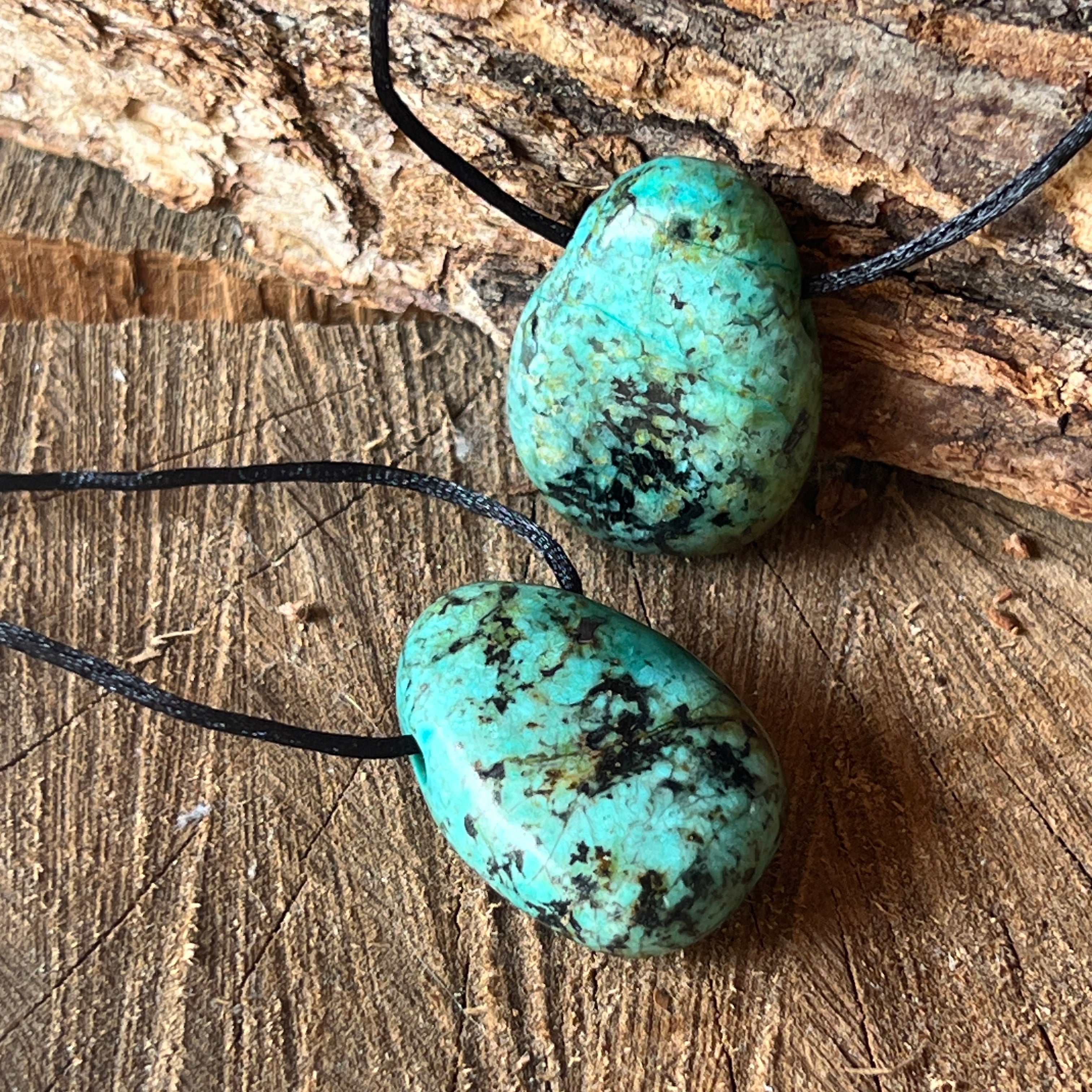 Το κρεμαστό κόσμημα με την αφρικανική τυρκουάζ φέρει τα χρώματα της γης και του ουρανού, συνυφασμένο με έναν προγονικό χορό.