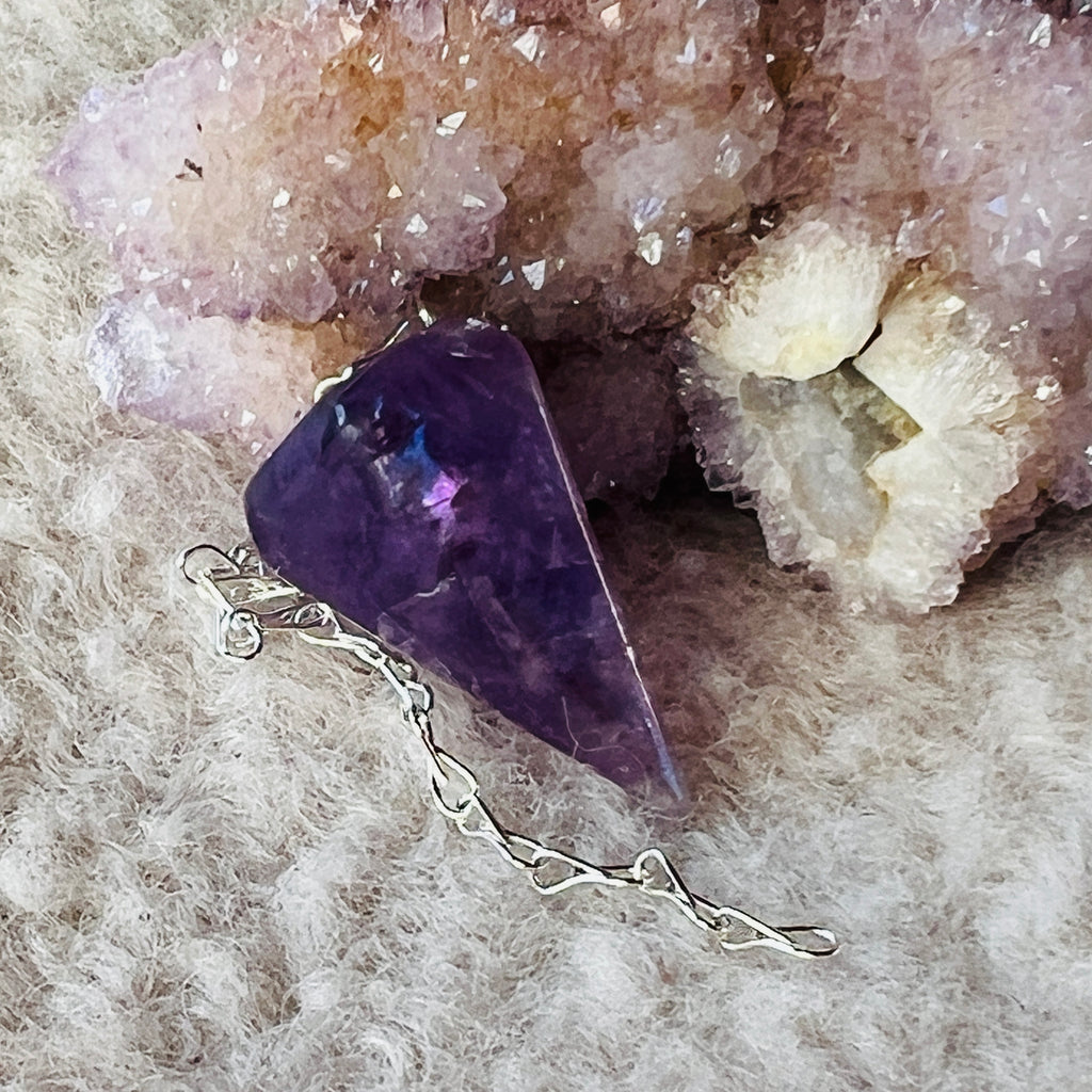 Πολύπλευρο εκκρεμές αμέθυστου, μονό κορδόνι, μέγεθος: περίπου 3 cm
