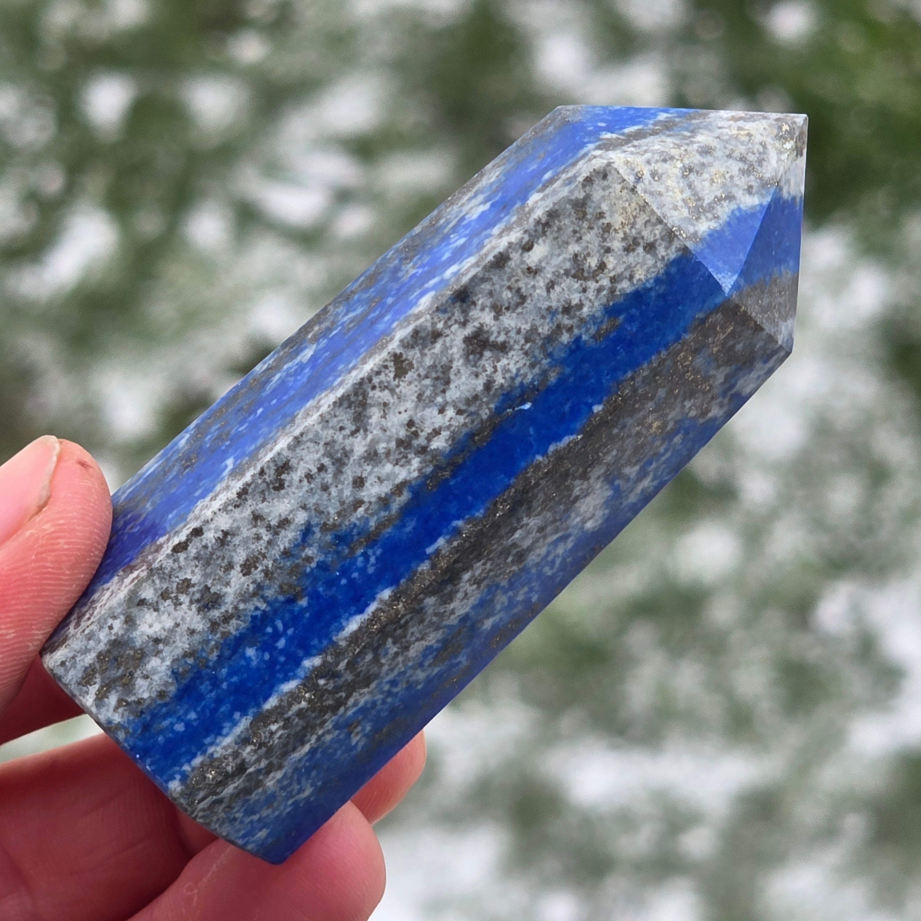 Το Lapis lazuli είναι ένας ημιπολύτιμος λίθος που σχηματίζεται από ένα μείγμα λαζουρίτη, ασβεστίτη και σιδηροπυρίτη, ο λαζουρίτης έχει το μεγαλύτερο βάρος.