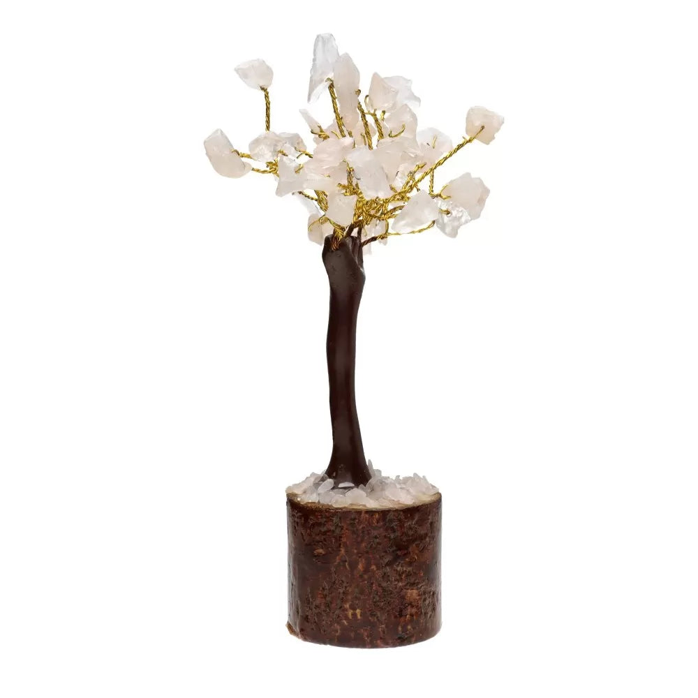 Ροζ δέντρο χαλαζία φενγκ σούι με βάση το ξύλο – μέγεθος S