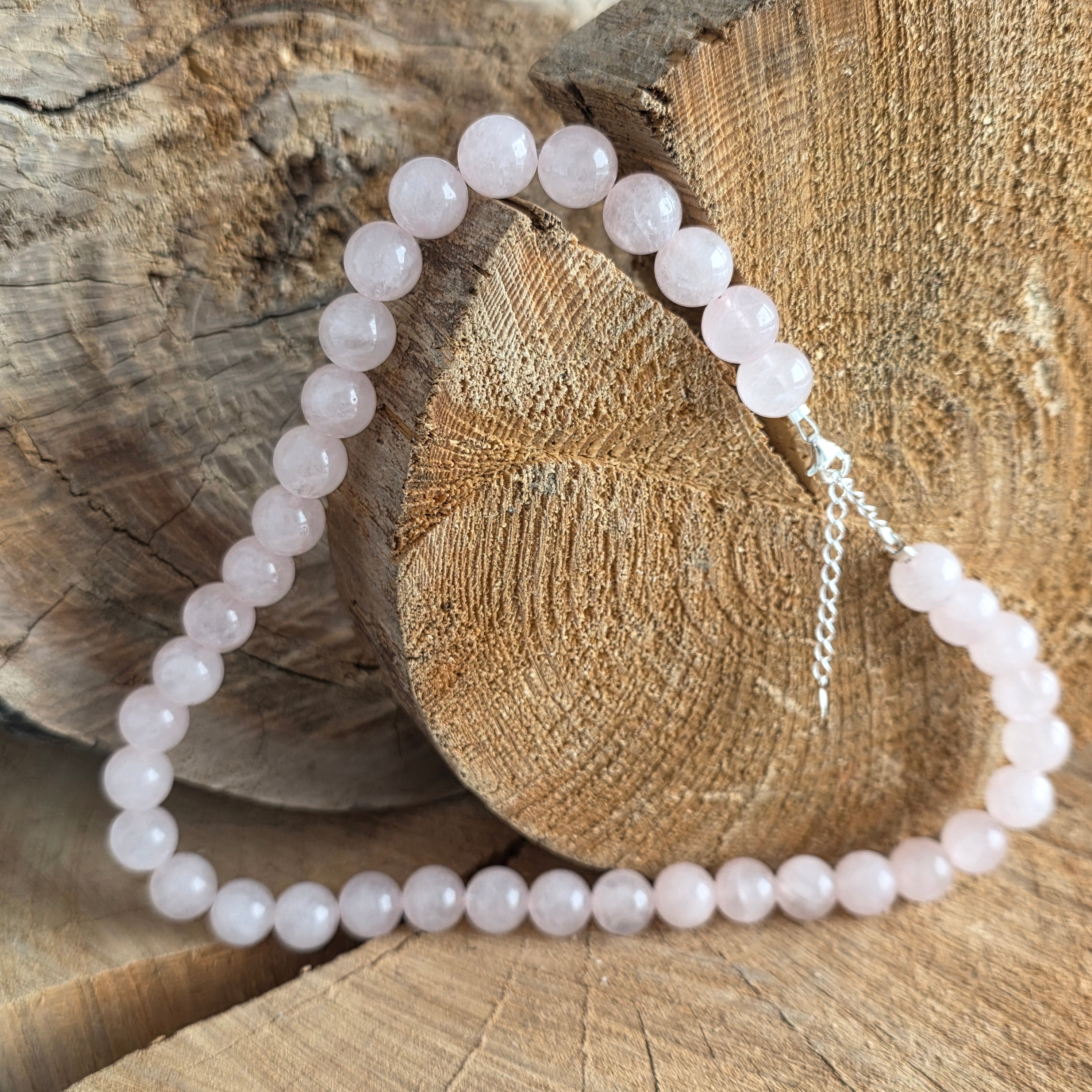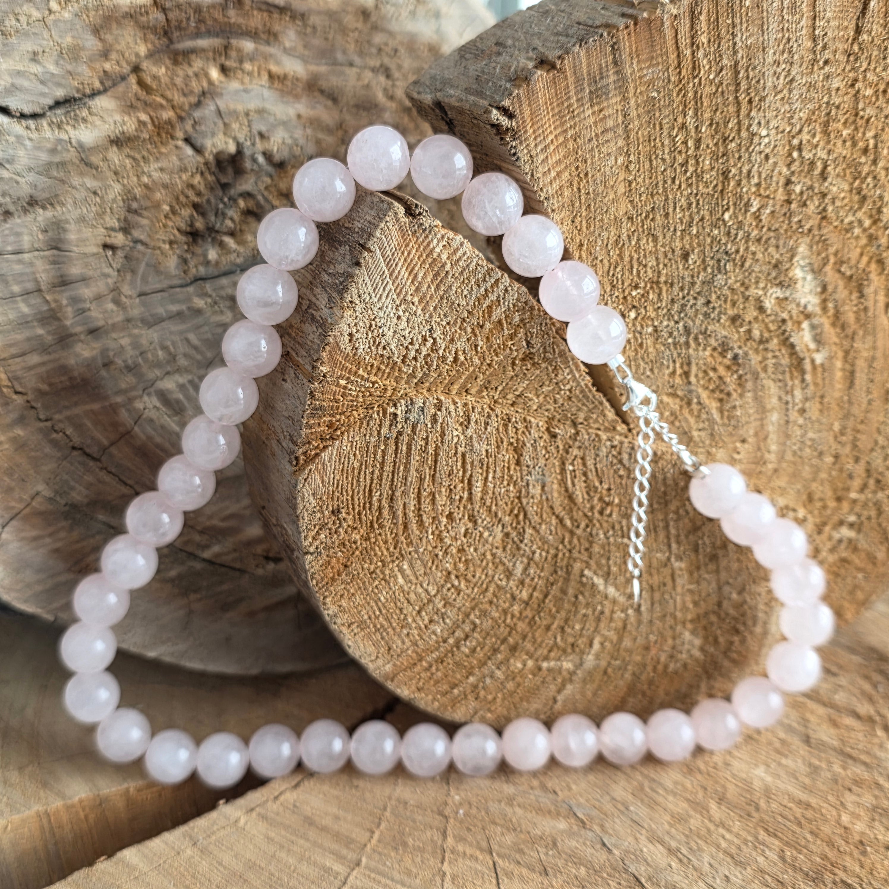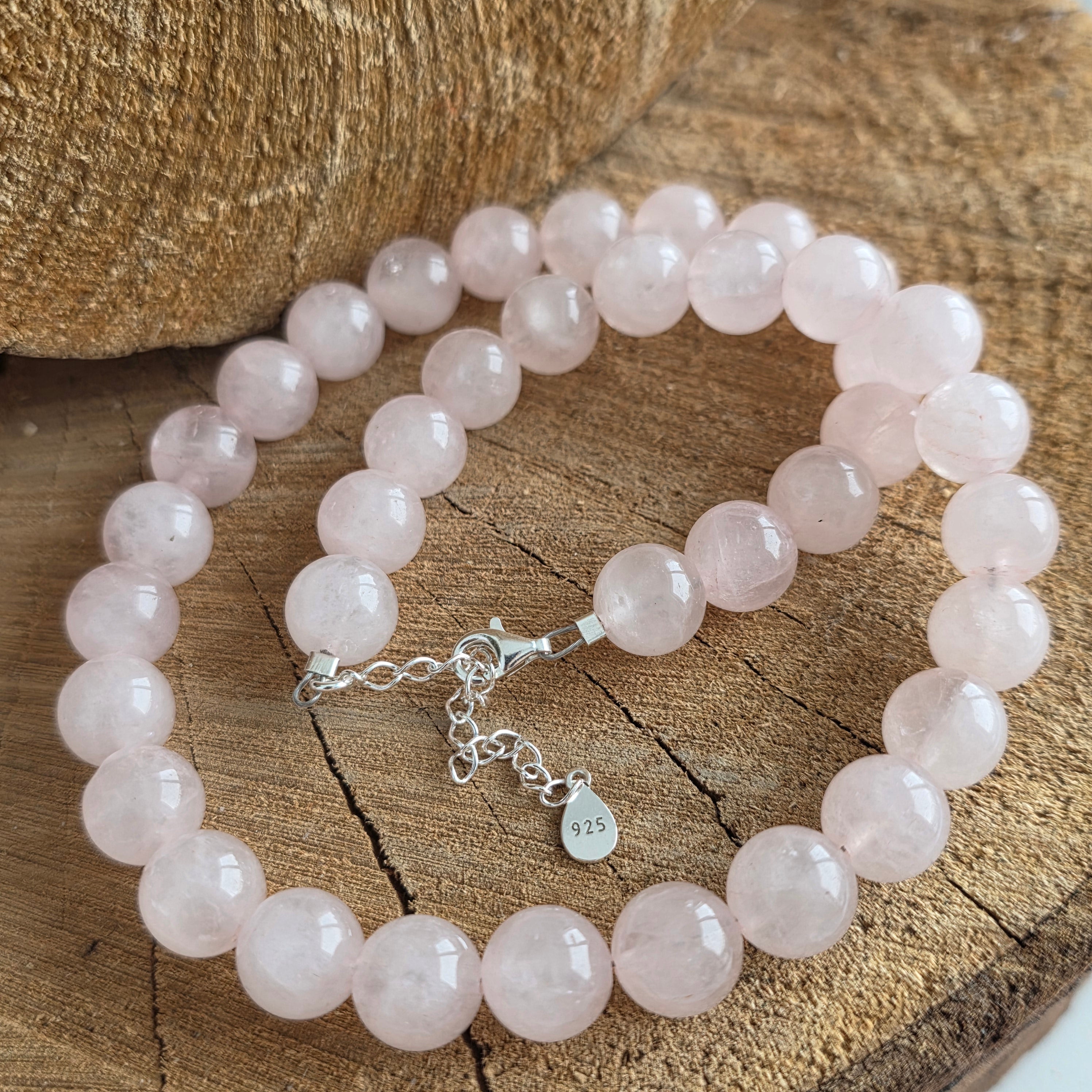 Κατασκευασμένο εξ ολοκλήρου από σφαίρες φυσικού ροζ χαλαζία, το κολιέ φέρνει στο φως την ουσία της απαλότητας και της άνευ όρων αγάπης. Κάθε σφαίρα 10 mm, προσεκτικά επιλεγμένη και λείανση, διατηρεί μέσα της μια ζεστή ηρεμία, σαν μια καρδιά που χτυπά σε αρμονία με το σύμπαν.