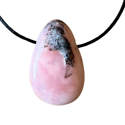 Το ροζ οπάλιο από το Περού συνδέεται συχνά με την ηρεμία και τη συναισθηματική θεραπεία, θεωρείται πέτρα που φέρνει εσωτερική ειρήνη και ισορροπία.