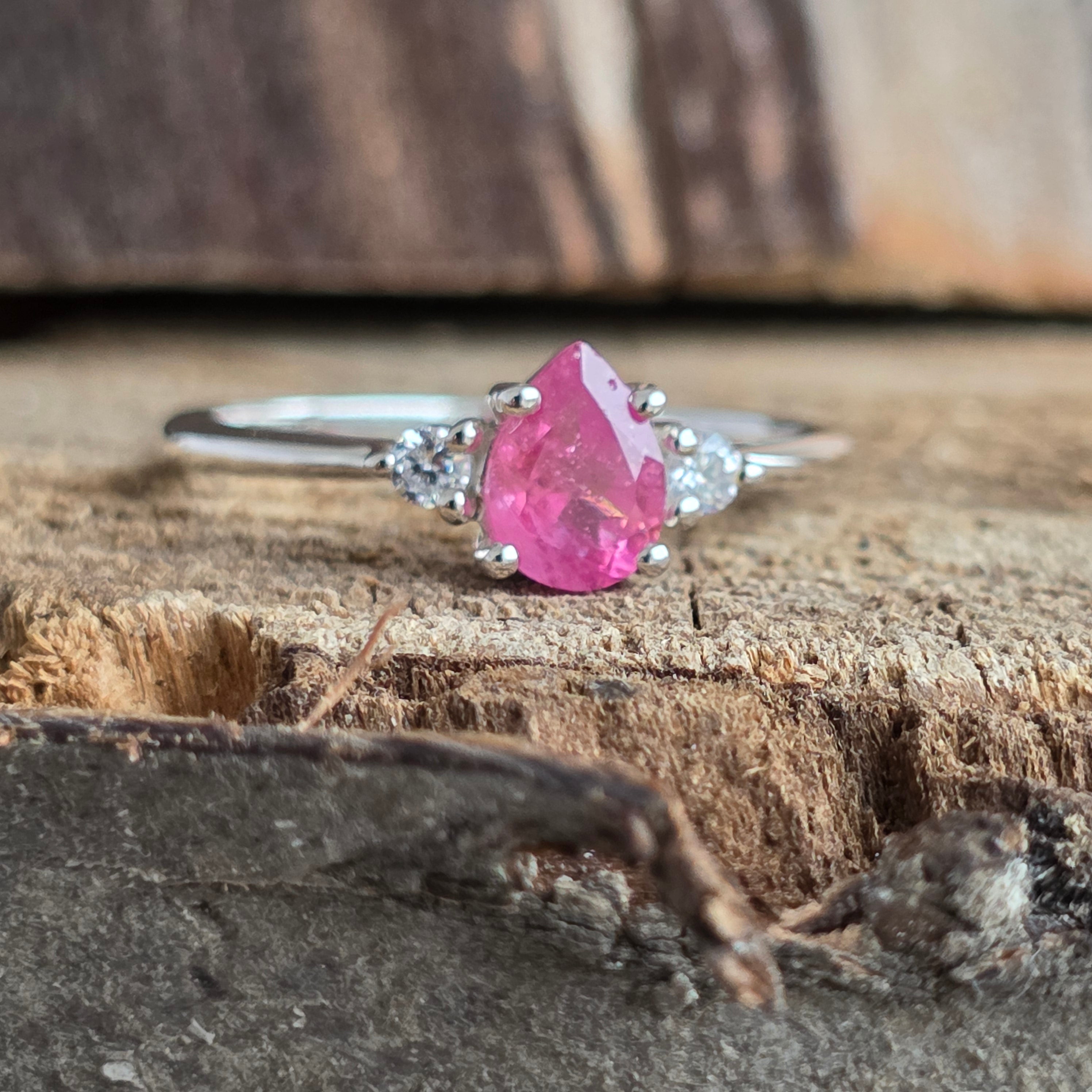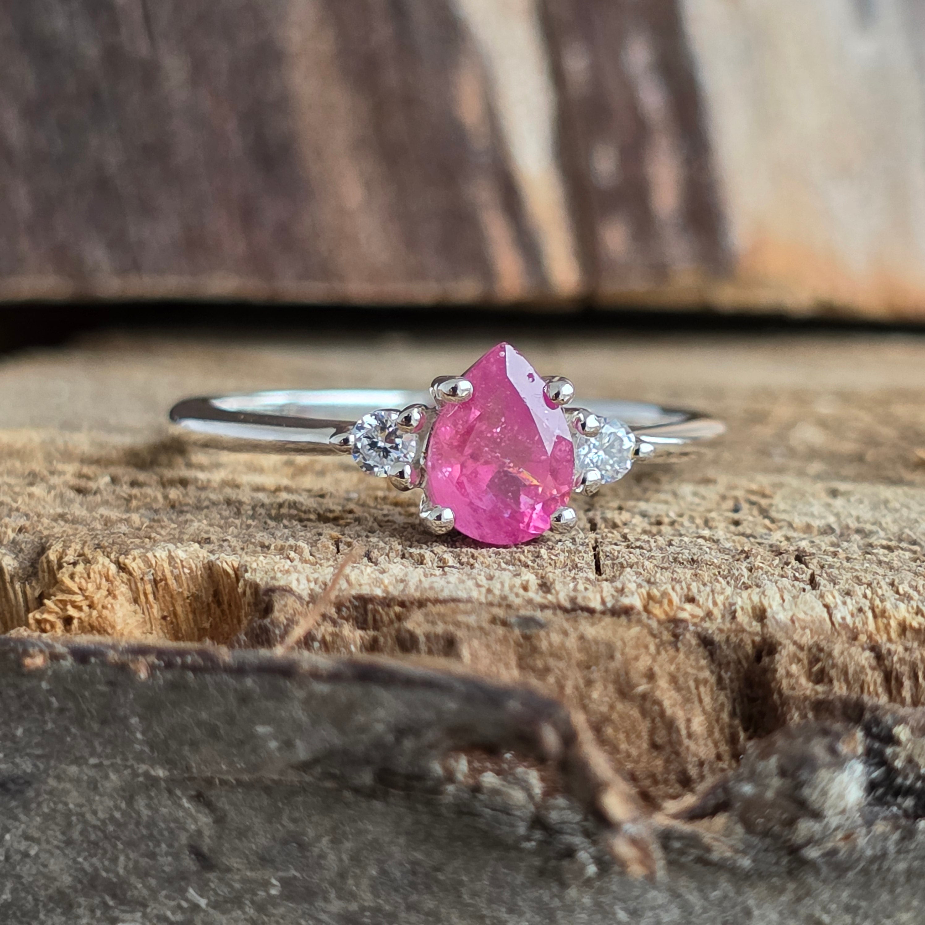 Ρουμπινί δαχτυλίδι με ασημένιο τοπάζι Αχλάδι 7 mm, επιλέξτε το επιθυμητό μέγεθος.