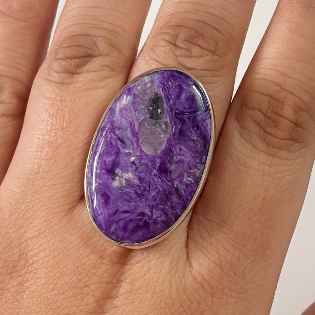 Ρυθμιζόμενο ασημένιο δαχτυλίδι charoite