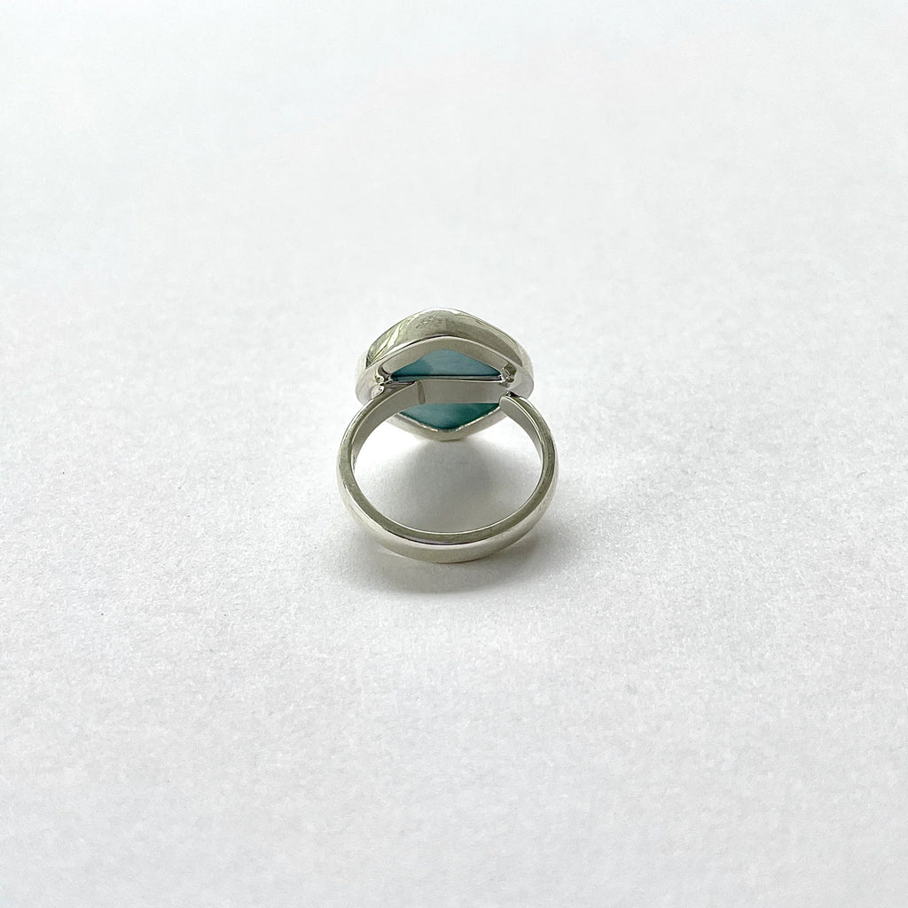 Ένα μοναδικό δαχτυλίδι φυσικής Larimis, γνωστός ως Η πέτρα του ουρανού και του ωκεανού. Οι αποχρώσεις του υδάτινου μπλε, με λευκές αντανακλάσεις όπως τα κύματα της θάλασσας, φέρνουν την εσωτερική ειρήνη και ένα αίσθημα άπειρης ελευθερίας.