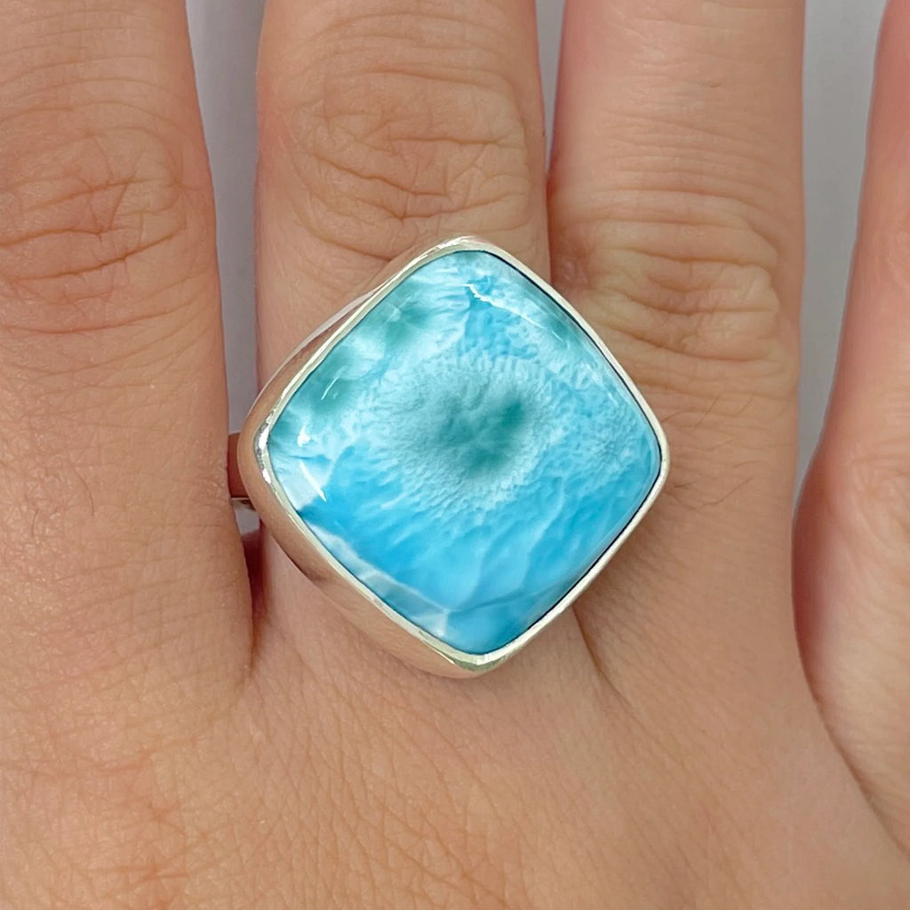 Ρυθμιζόμενο ασημένιο δαχτυλίδι larimar stone μοντέλο 5