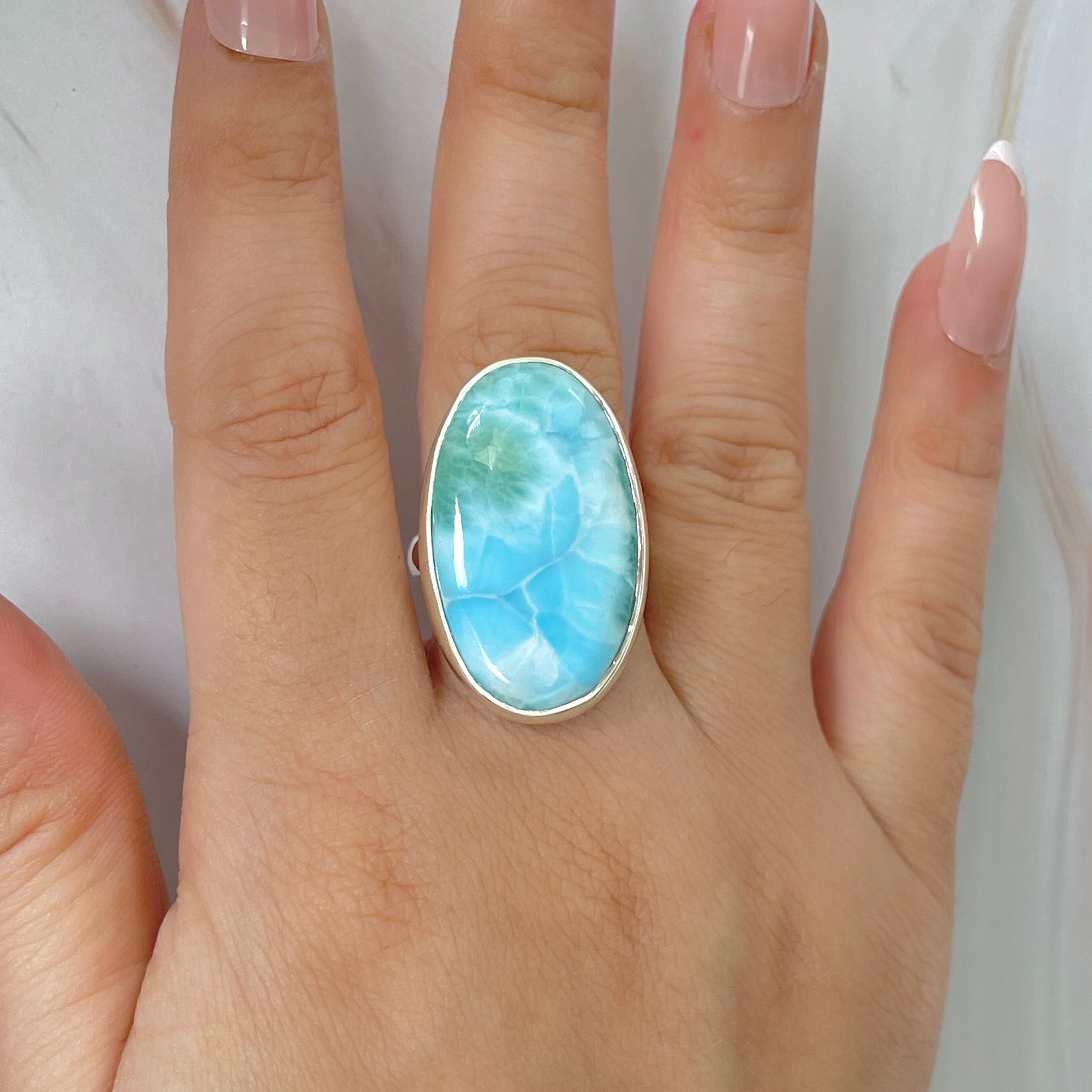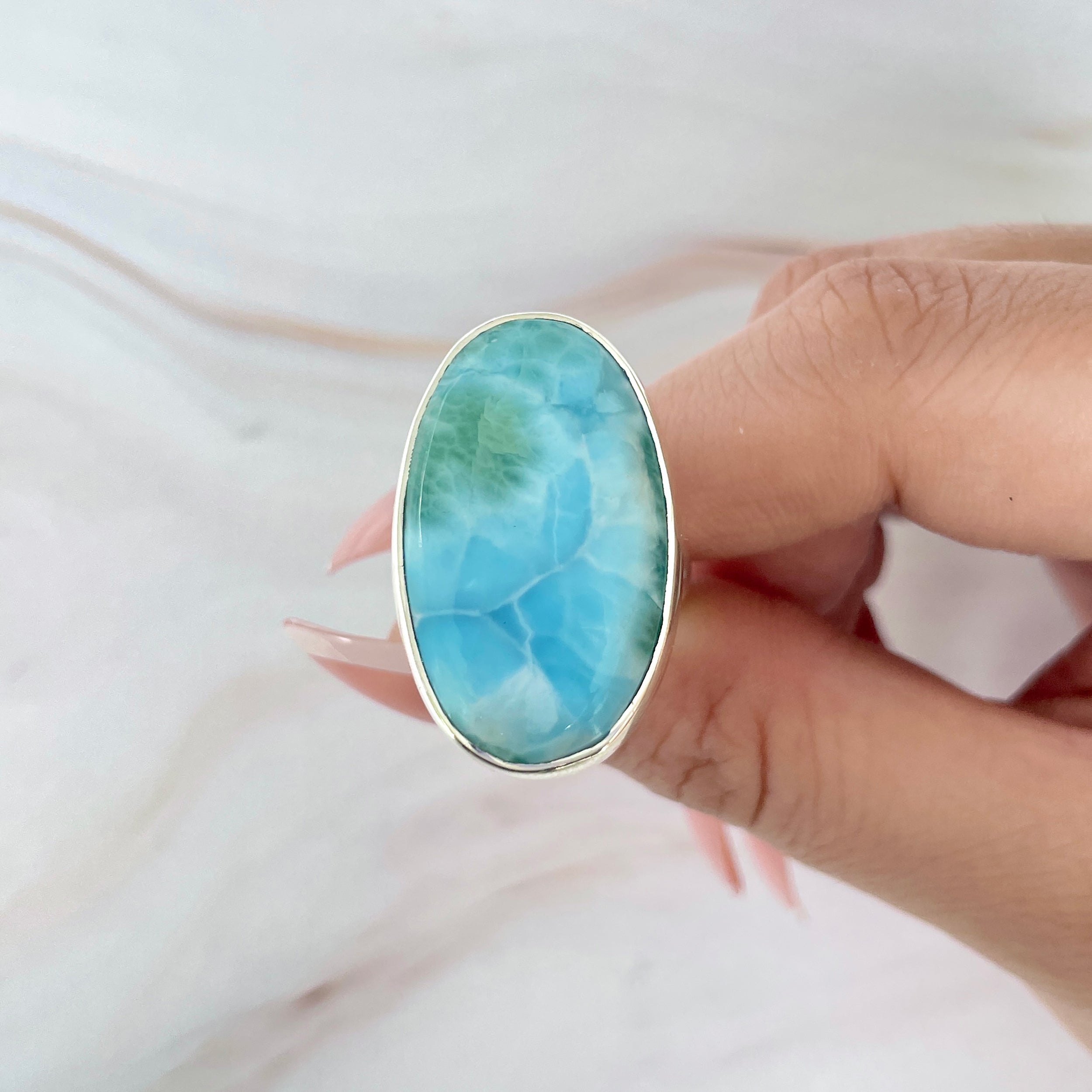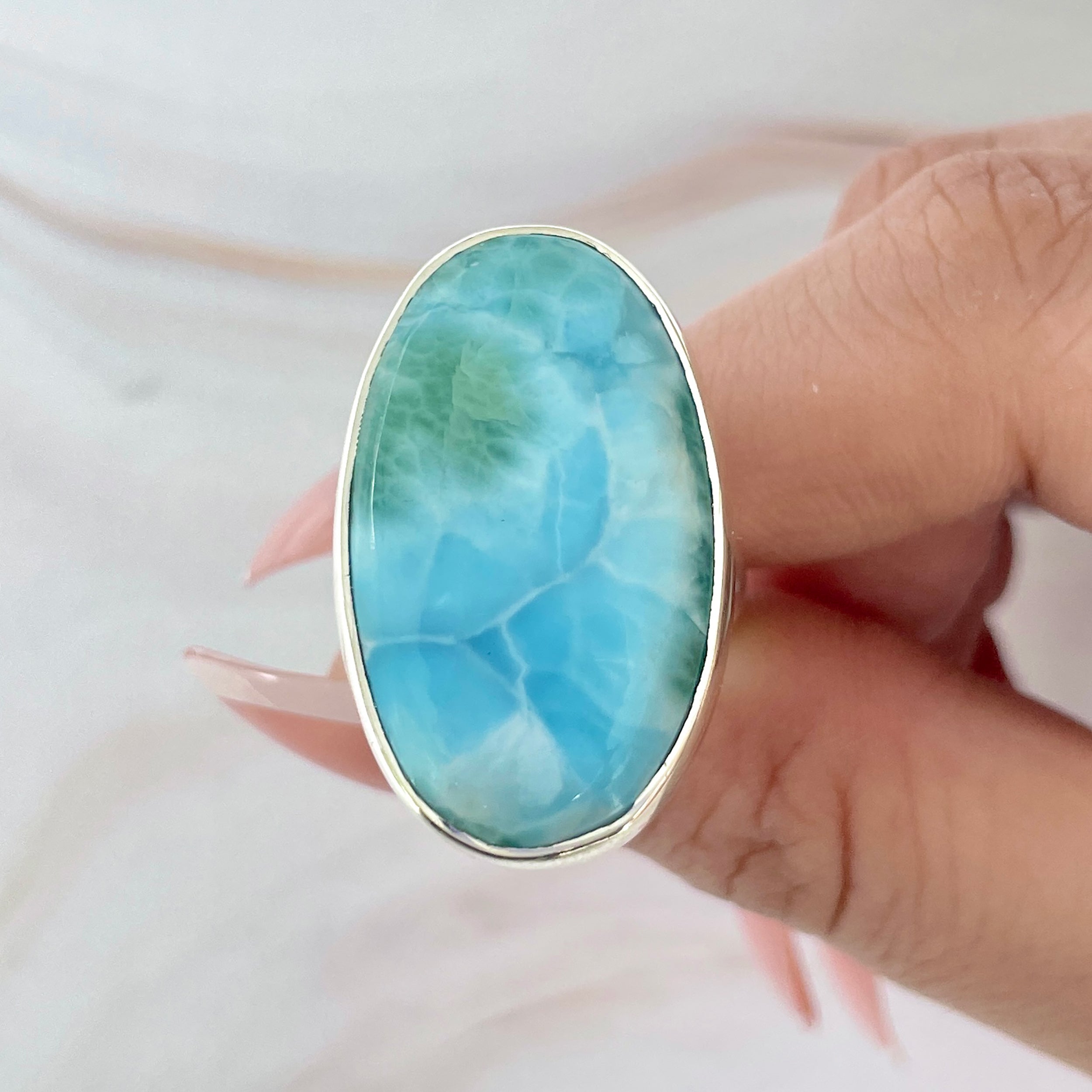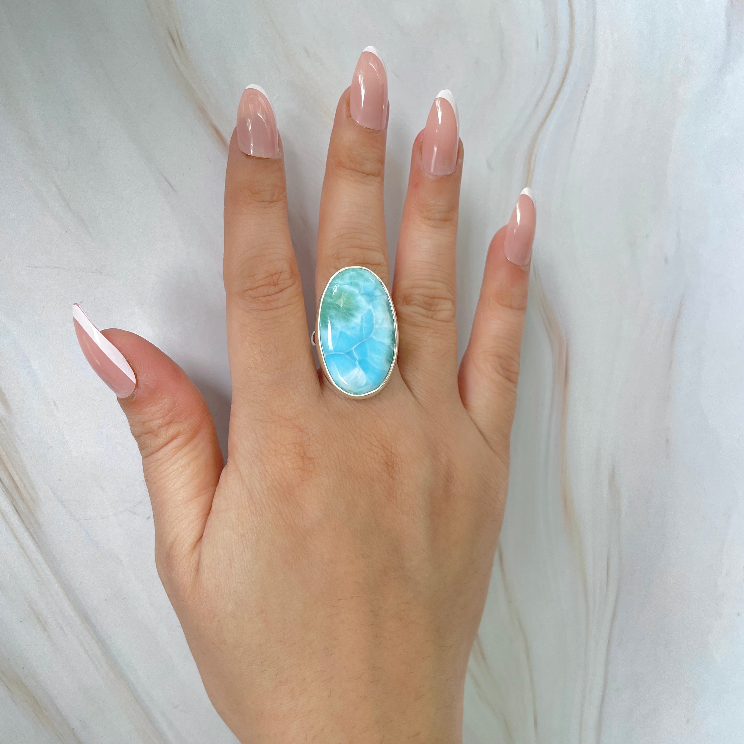 Περιγραφή - Ρυθμιζόμενο ασημένιο δαχτυλίδι larimar stone μοντέλο 6