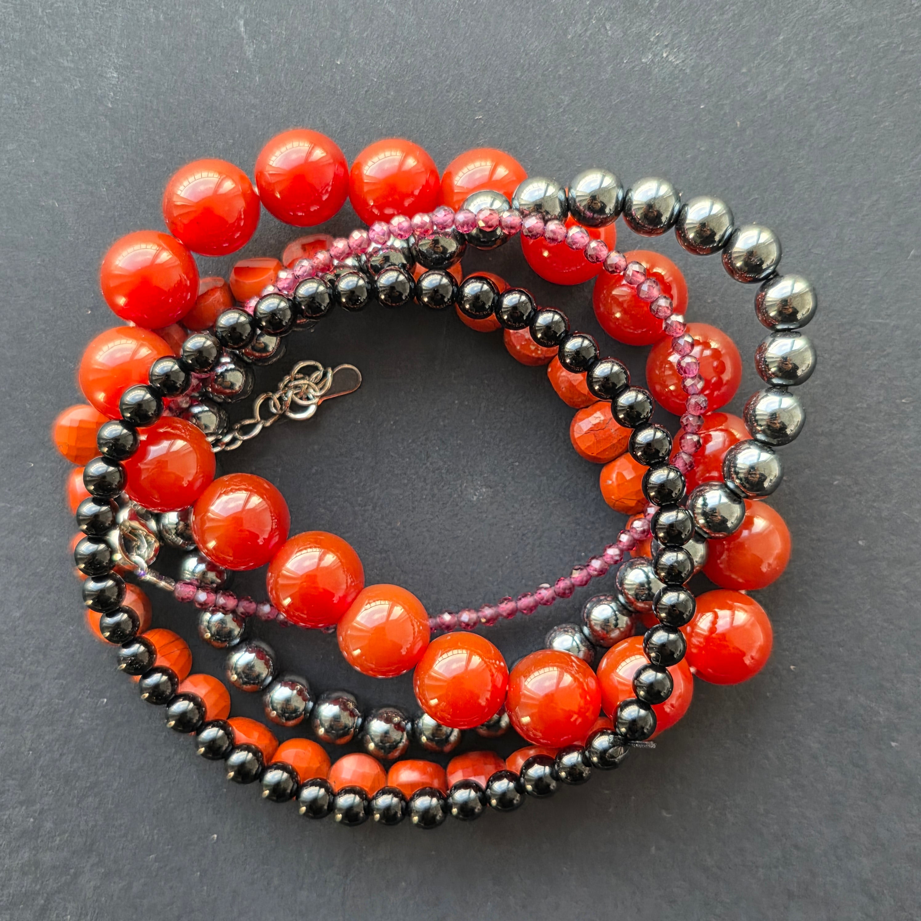 Ο Γρανάτης, λεπτός και κομμένος σε γωνίες, υποστηρίζει το πάθος, τη ζωτικότητα και την αποφασιστικότητα — ένα από τα ενεργειακά χαρακτηριστικά της γυναίκας Κριού.