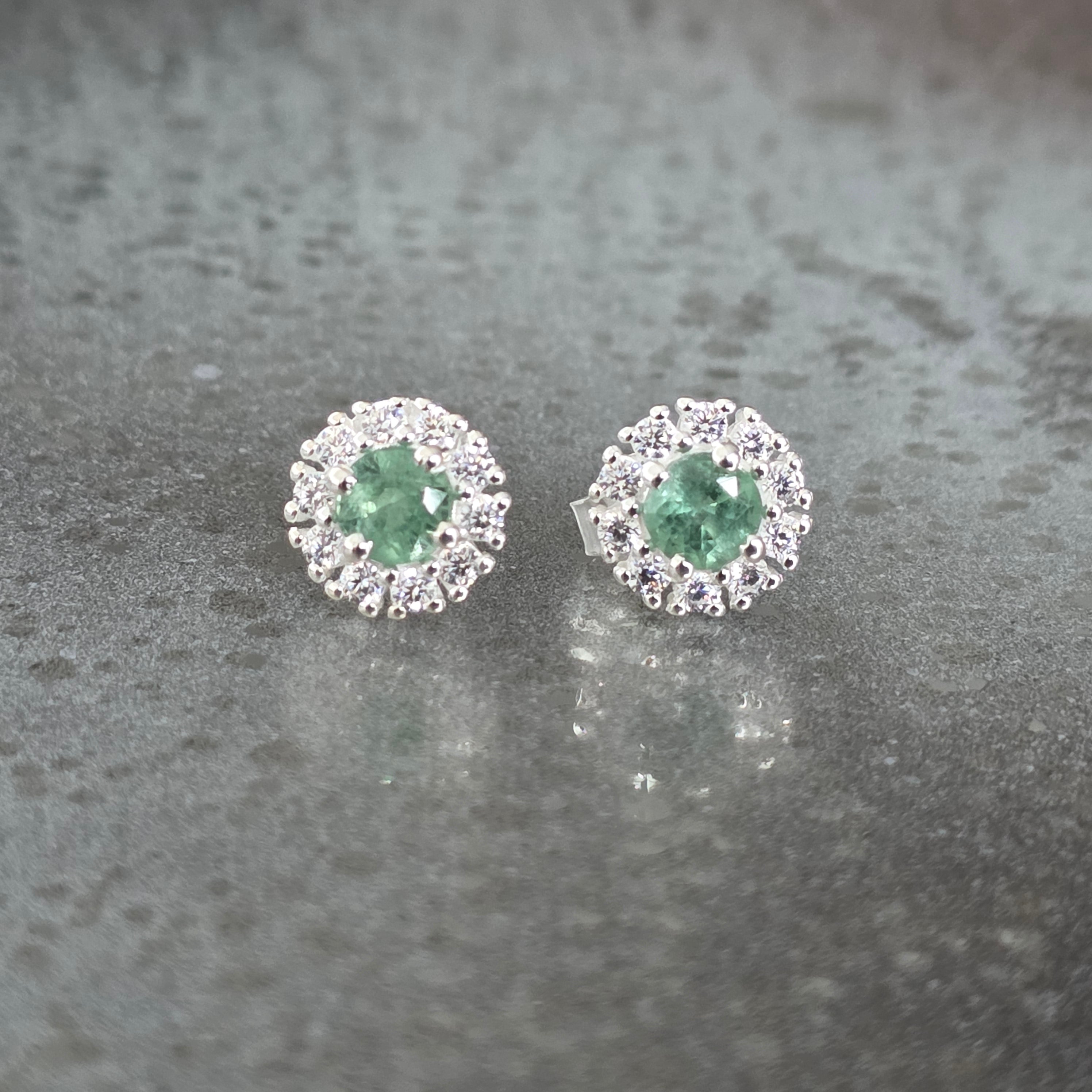 Σκουλαρίκια από ασήμι 925 με πράσινο κιανίτη (κυανίτης) | Flower