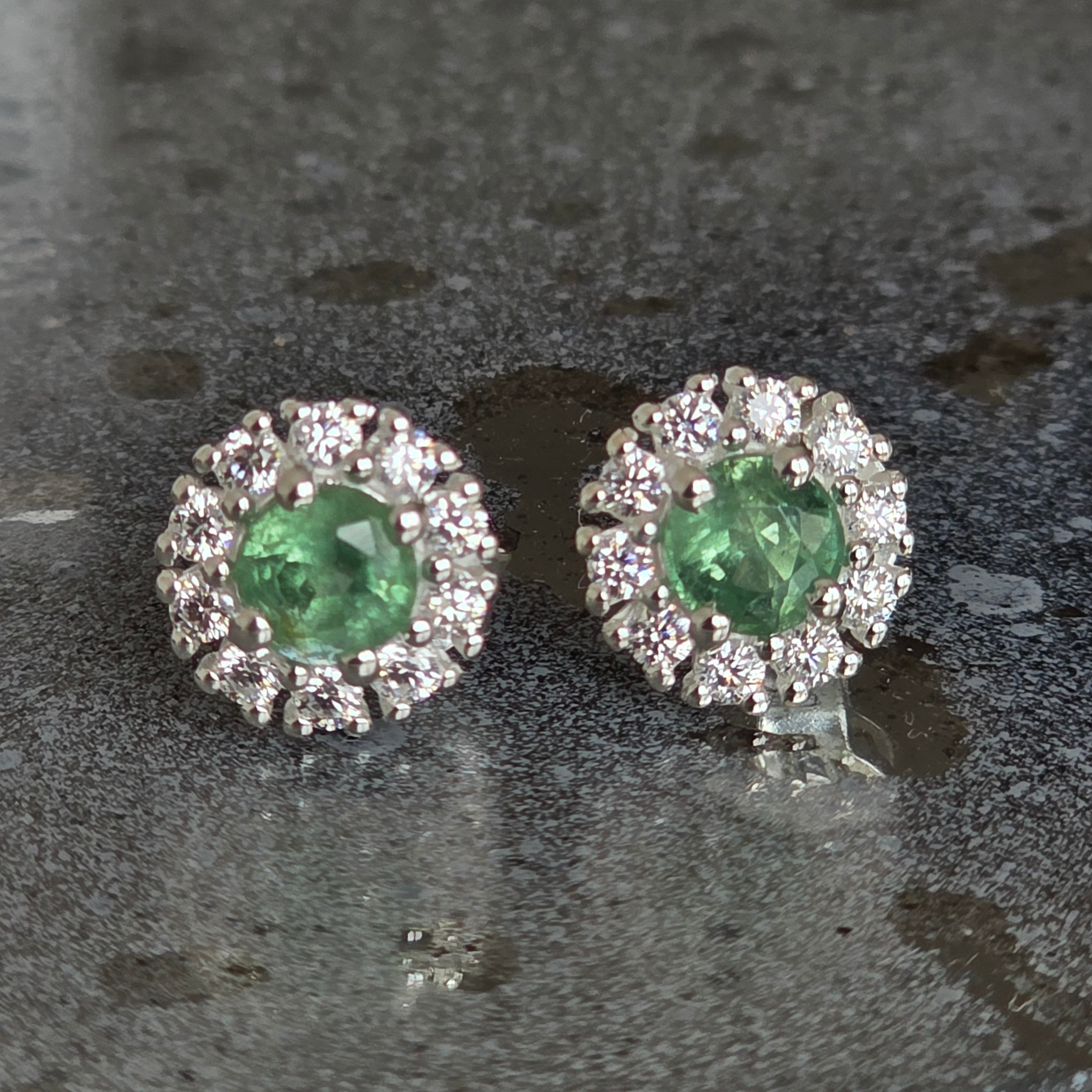 Αυτά τα σκουλαρίκια από ασήμι 925, σε λουλουδένιο σχέδιο, αναδεικνύουν την λεπτή ομορφιά του πράσινου κυανίτη, πλαισιωμένου από μια φωτεινή αύρα λευκού τοπάζ. Ο σχεδιασμός θυμίζει ένα ανθισμένο λουλούδι, όπου ο κεντρικός λίθος γίνεται το σημείο ισορροπίας, ενώ οι λεπτομέρειες προσθέτουν λάμψη και φινέτσα.