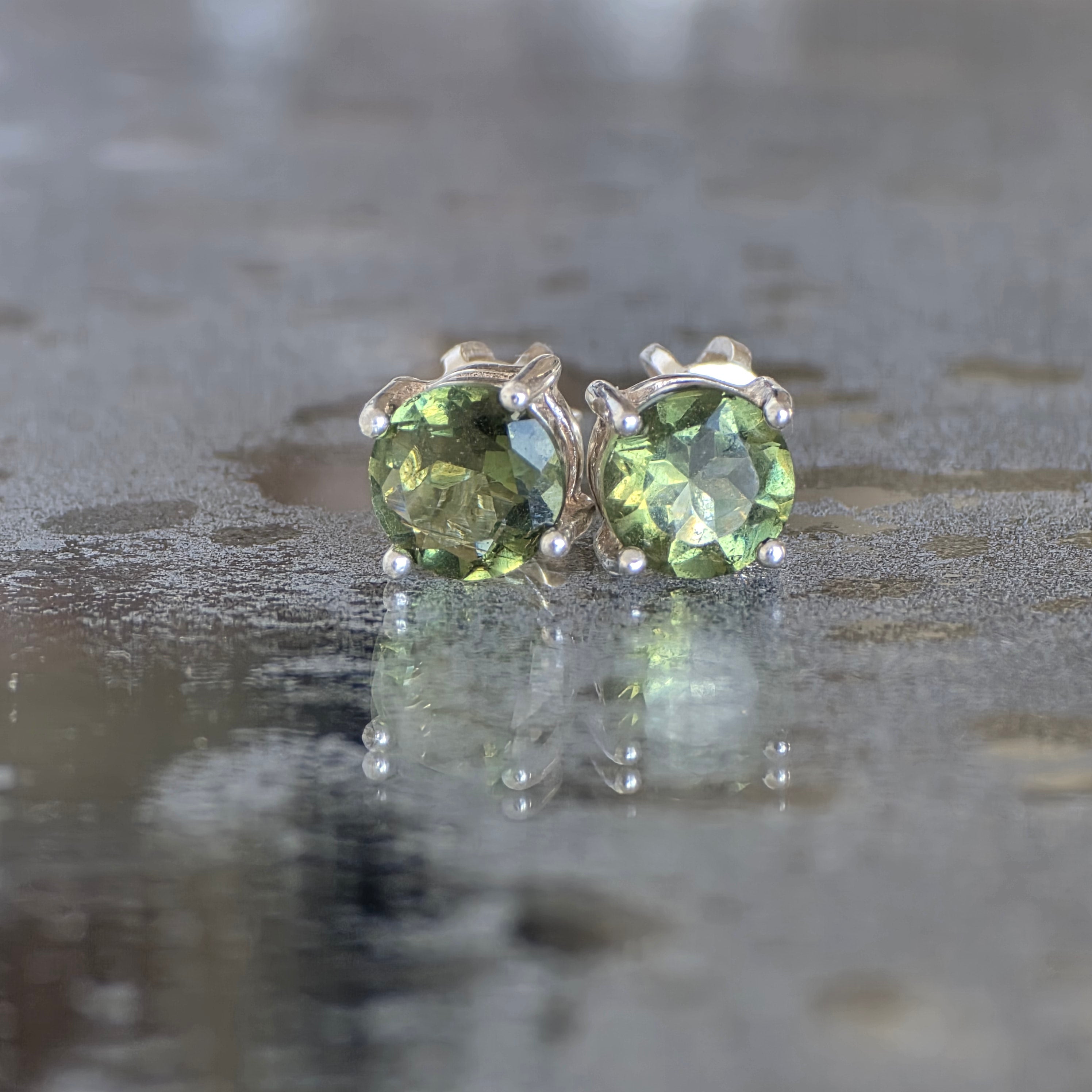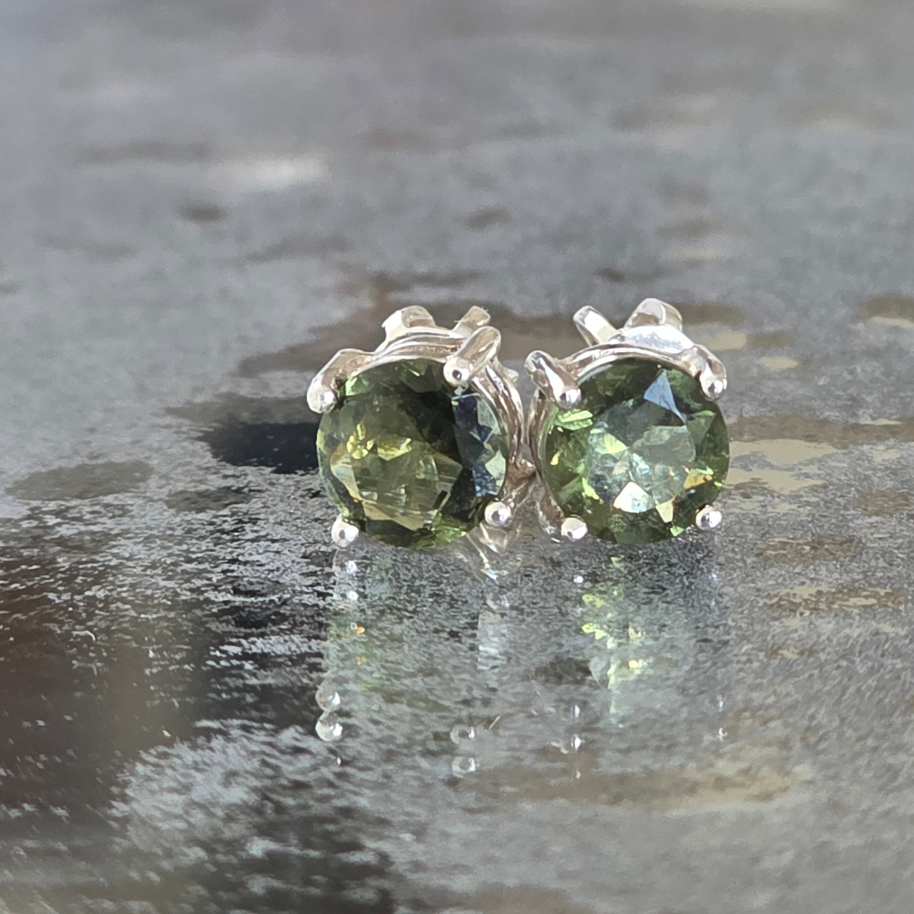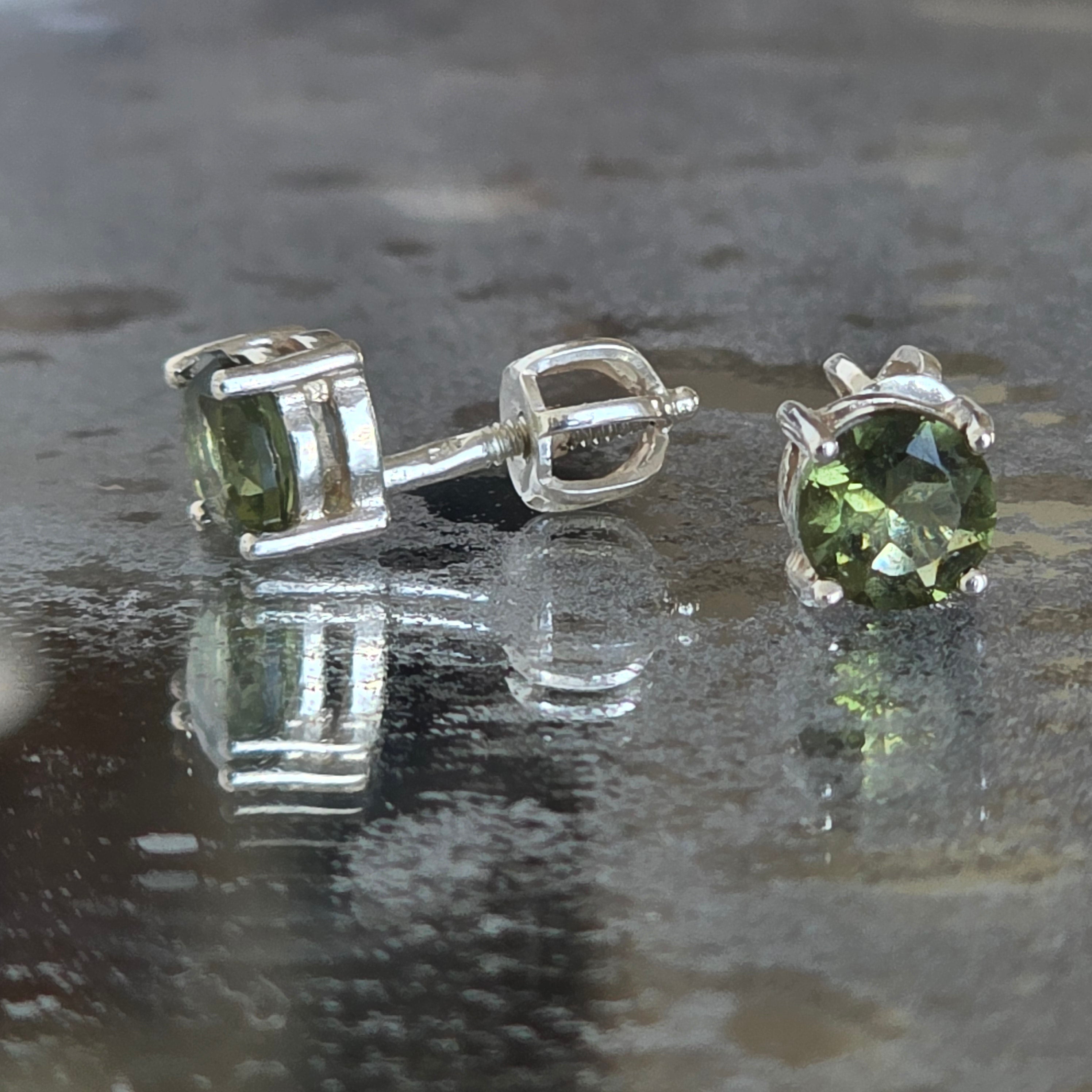 Περιγραφή - Σκουλαρίκια από ασήμι με μολδαβίτη 5 mm Στρογγυλά