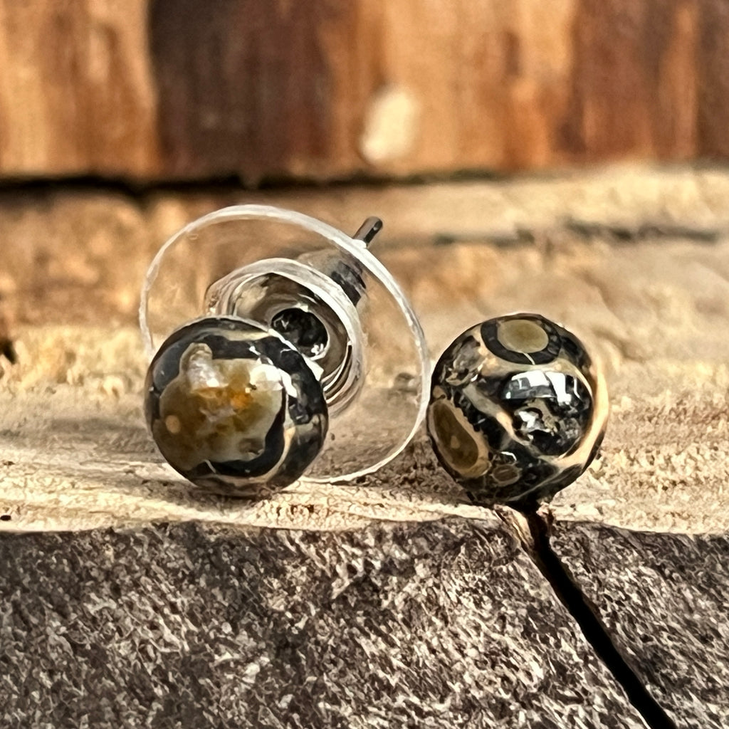 Αυτοί Σκουλαρίκια με καρφιά από φυσικό λεοπάρ ίασπι Είναι μια γιορτή της δύναμης και της ζωτικότητας της Γης. Κάθε πέτρα έχει ένα μοναδικό σχέδιο, όπως τα ίχνη της φύσης - ένα μείγμα ζεστών αποχρώσεων και σκούρων κηλίδων που προκαλούν τη χάρη και τη δύναμη της λεοπάρδαλης.