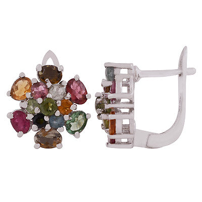Περιγραφή - Σκουλαρίκια τουρμαλίνης ανάμεικτα ασημένια | Flower 1