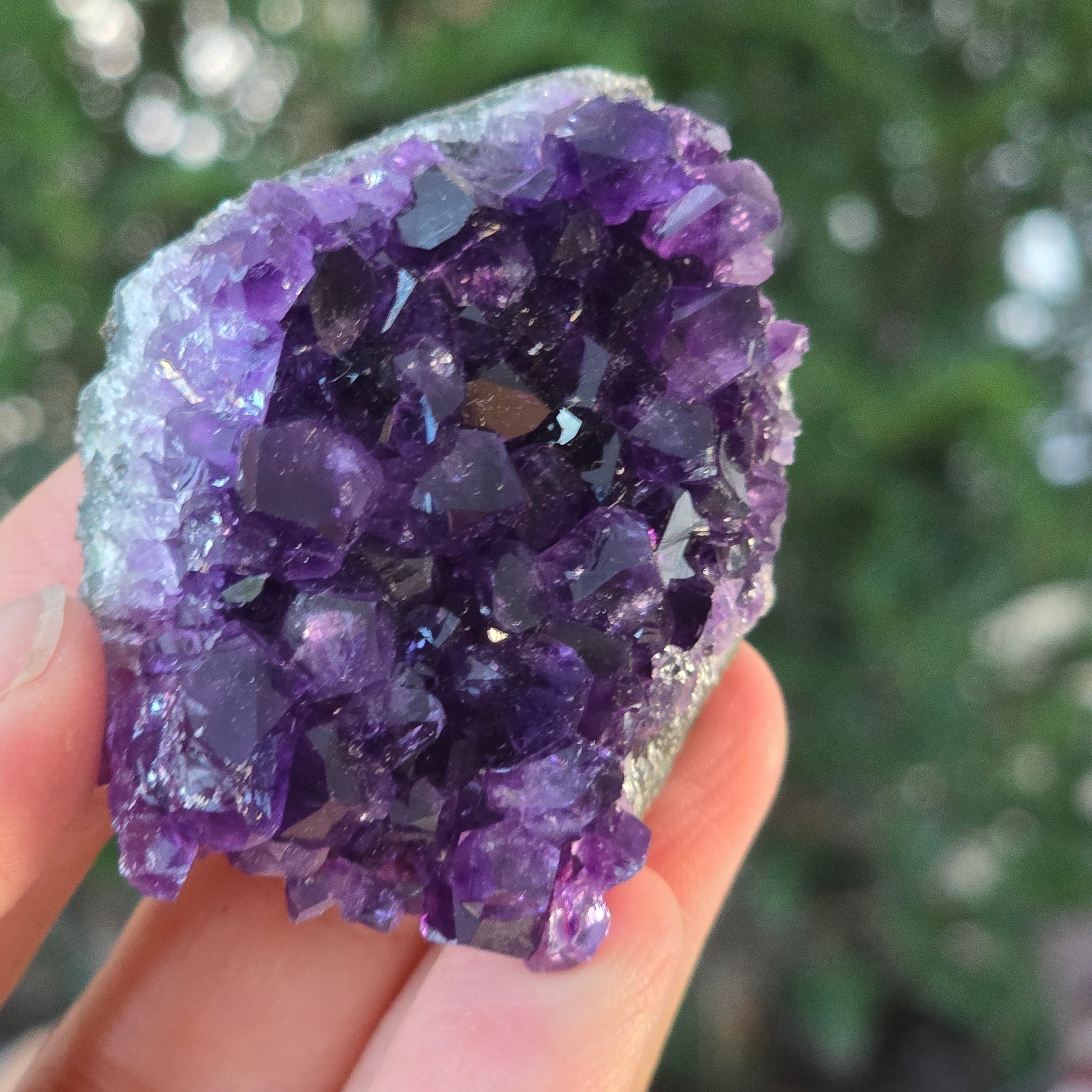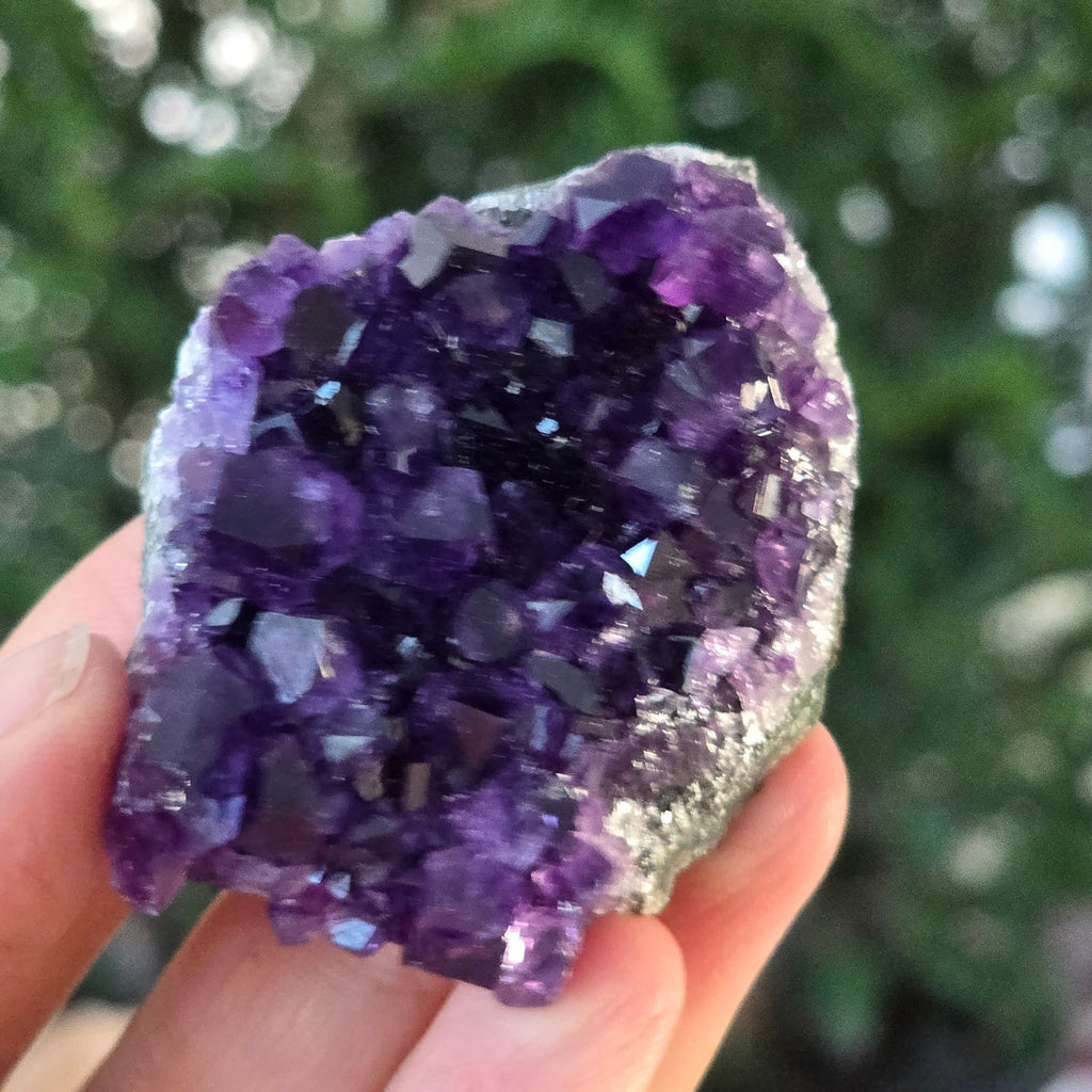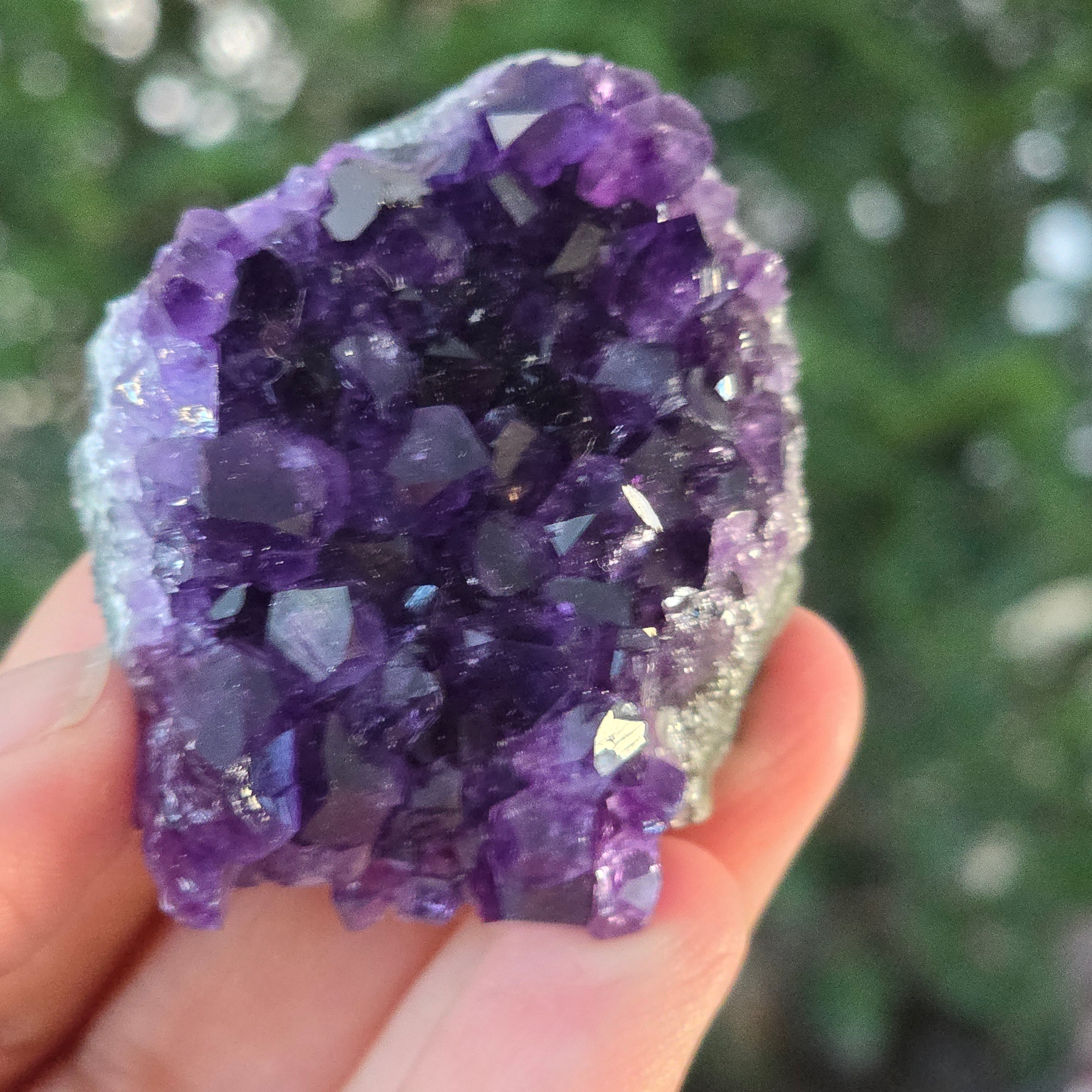Αυτός σύμπλεγμα αμέθυστου από την Ουρουγουάη, εξαιρετικής ποιότητας, φέρει υψηλή δόνηση καθαρισμού και διαύγειας. Οι τέλεια σχηματισμένοι κρύσταλλοι του πιάνουν το φως σε έναν υπνωτικό χορό βιολετί αποχρώσεων – ένα σπάνιο κομμάτι, ιδανικό για συλλέκτες ή για χώρους που απαιτούν φινέτσα και αυθεντική ενεργειακή ισορροπία.