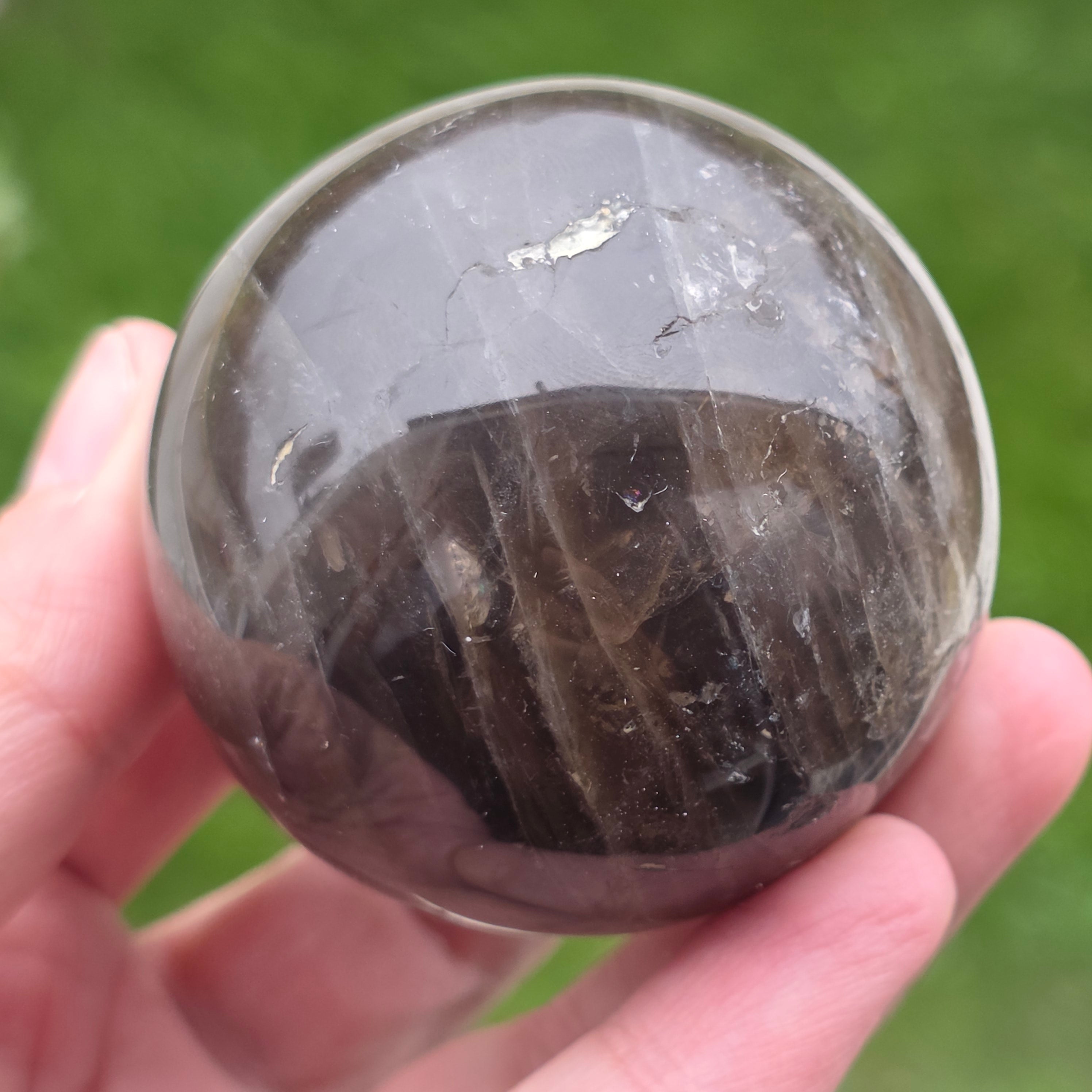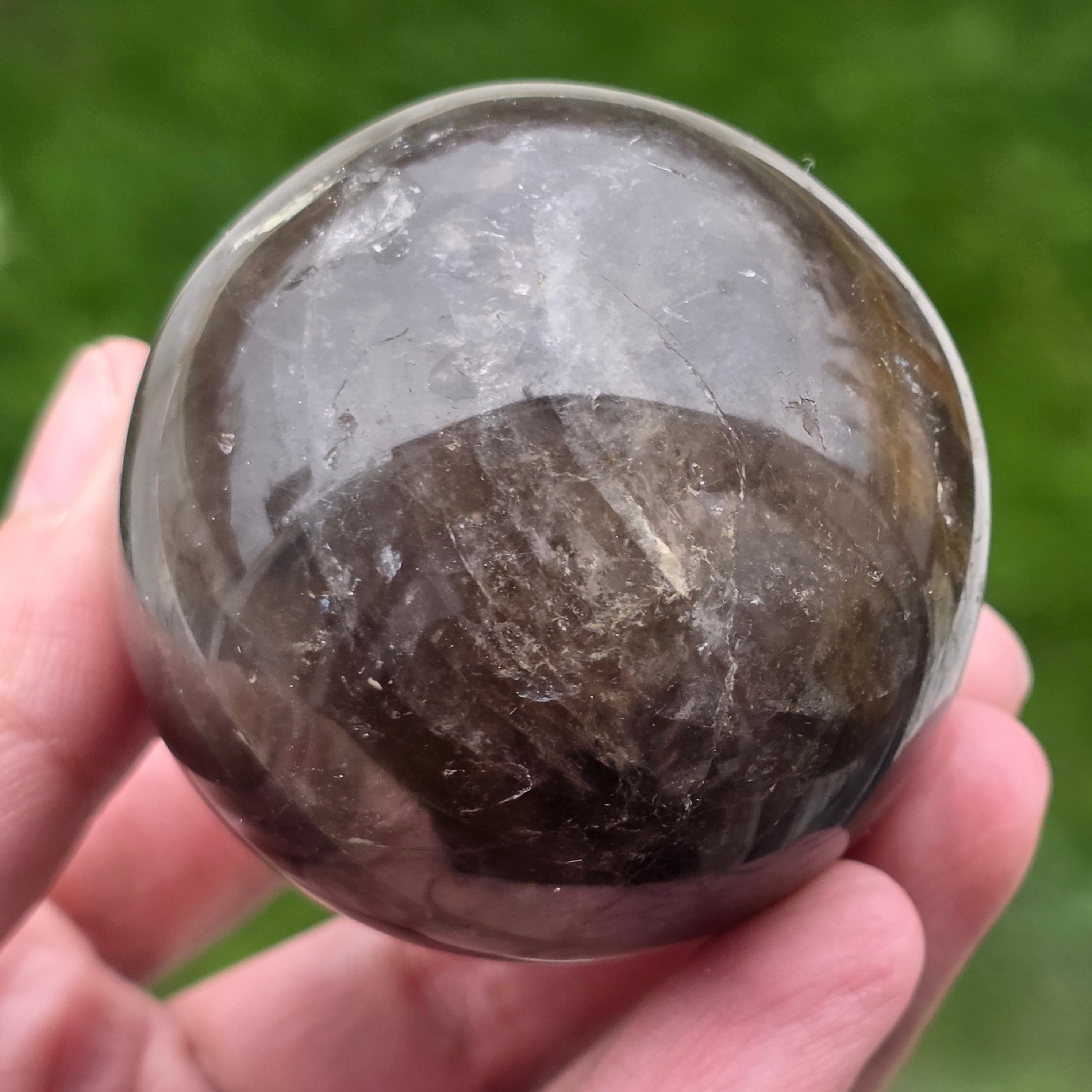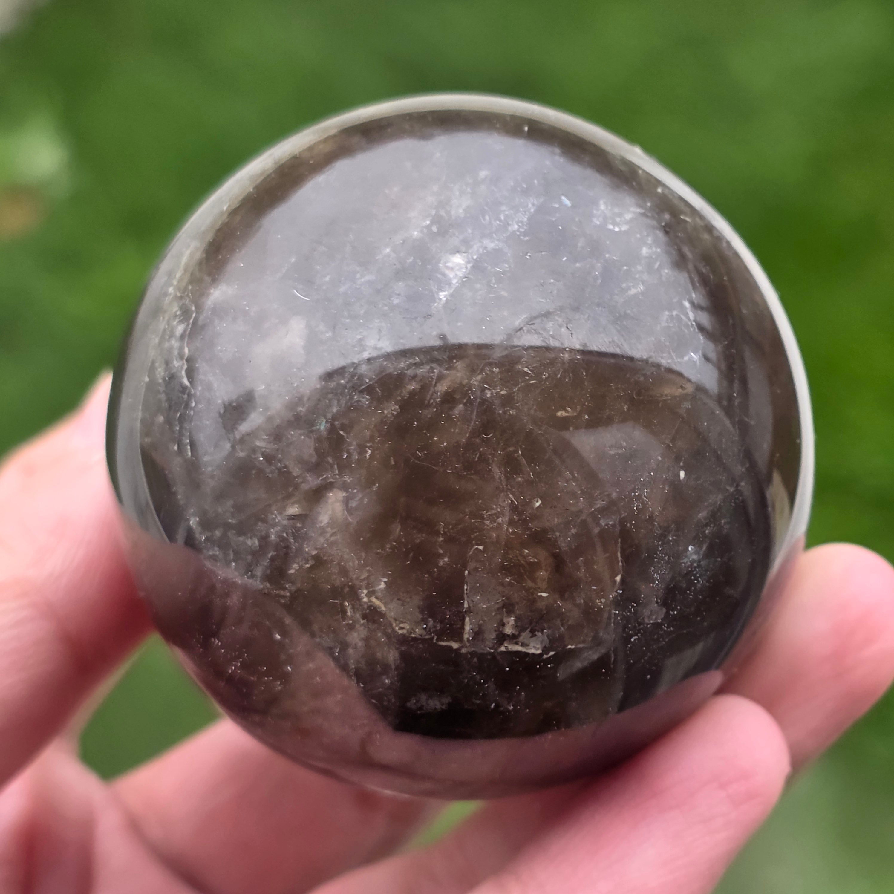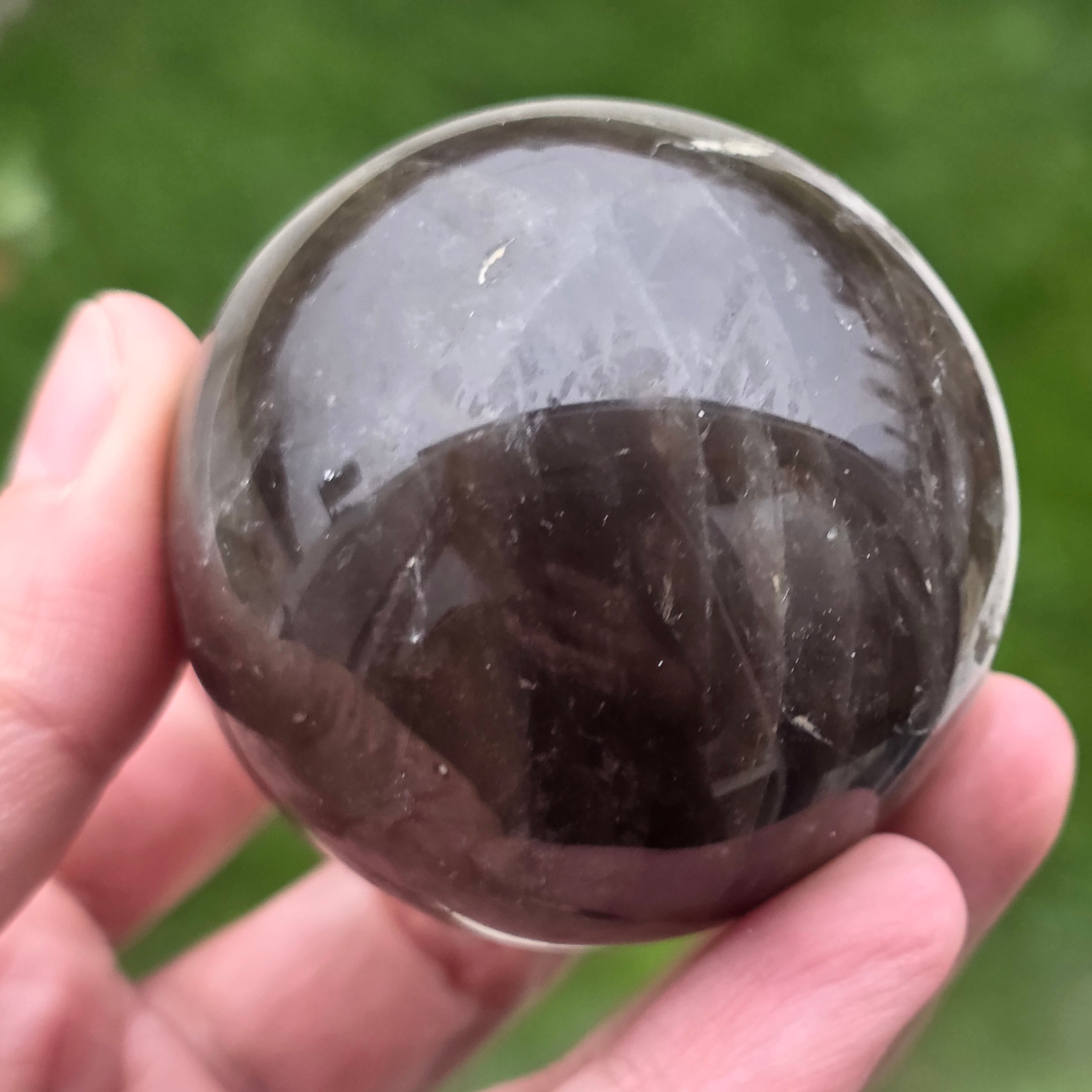 Η σφαίρα από καπνιστό κουάρτζ μορίον είναι ένα ισχυρό και κομψό κομμάτι, γνωστό για τον βαθύ της χρωματισμό, που μοιάζει με πυκνό καπνό ή διαφανές οψιανό. Το μορίον είναι η πιο σκούρα ποικιλία του καπνιστού κουάρτζ και σε αυτή την τέλεια σφαιρική μορφή αποκαλύπτει διακριτικές αντανακλάσεις, λεπτές εσωτερικές λεπτομέρειες και μια πραγματικά κομψή οπτική παρουσία.