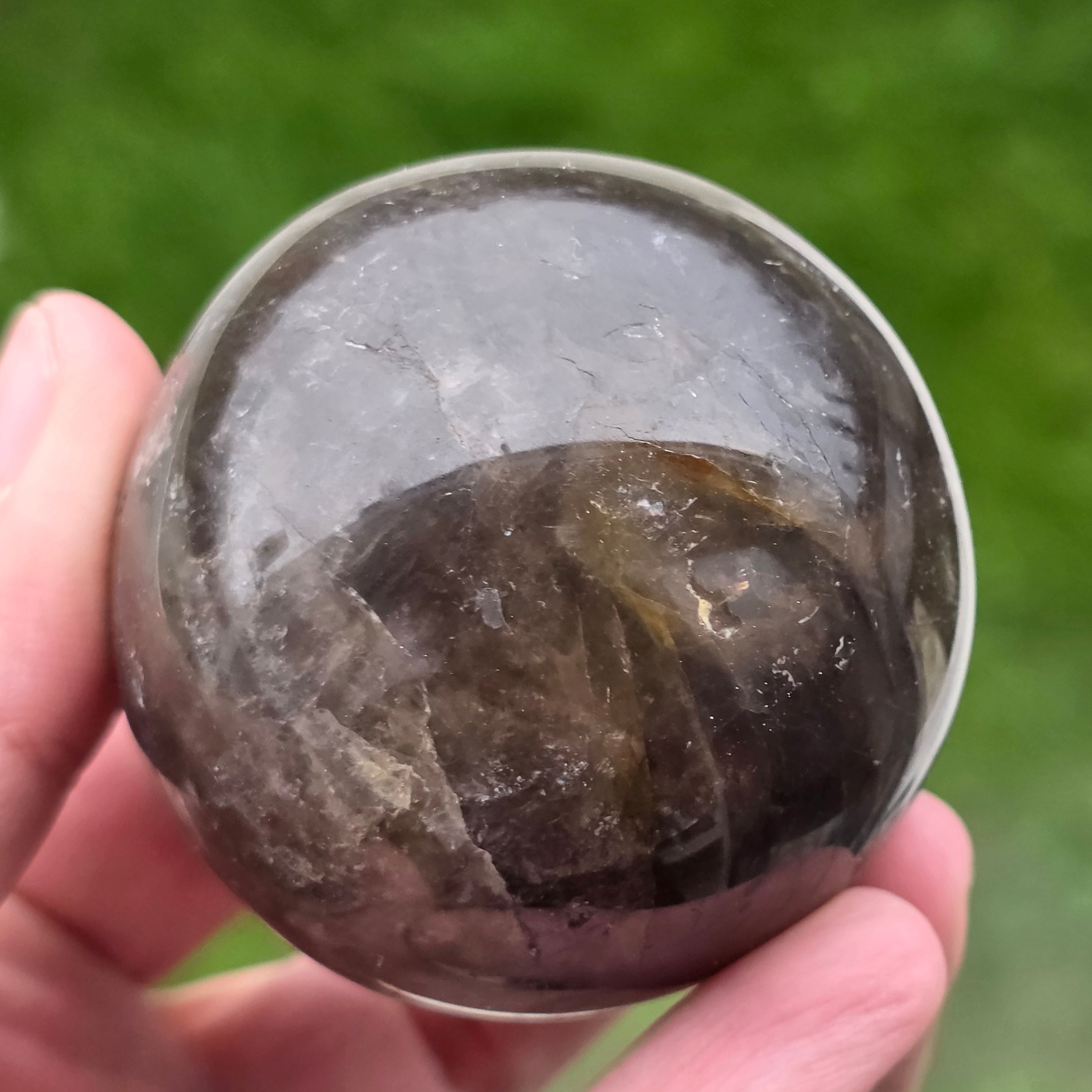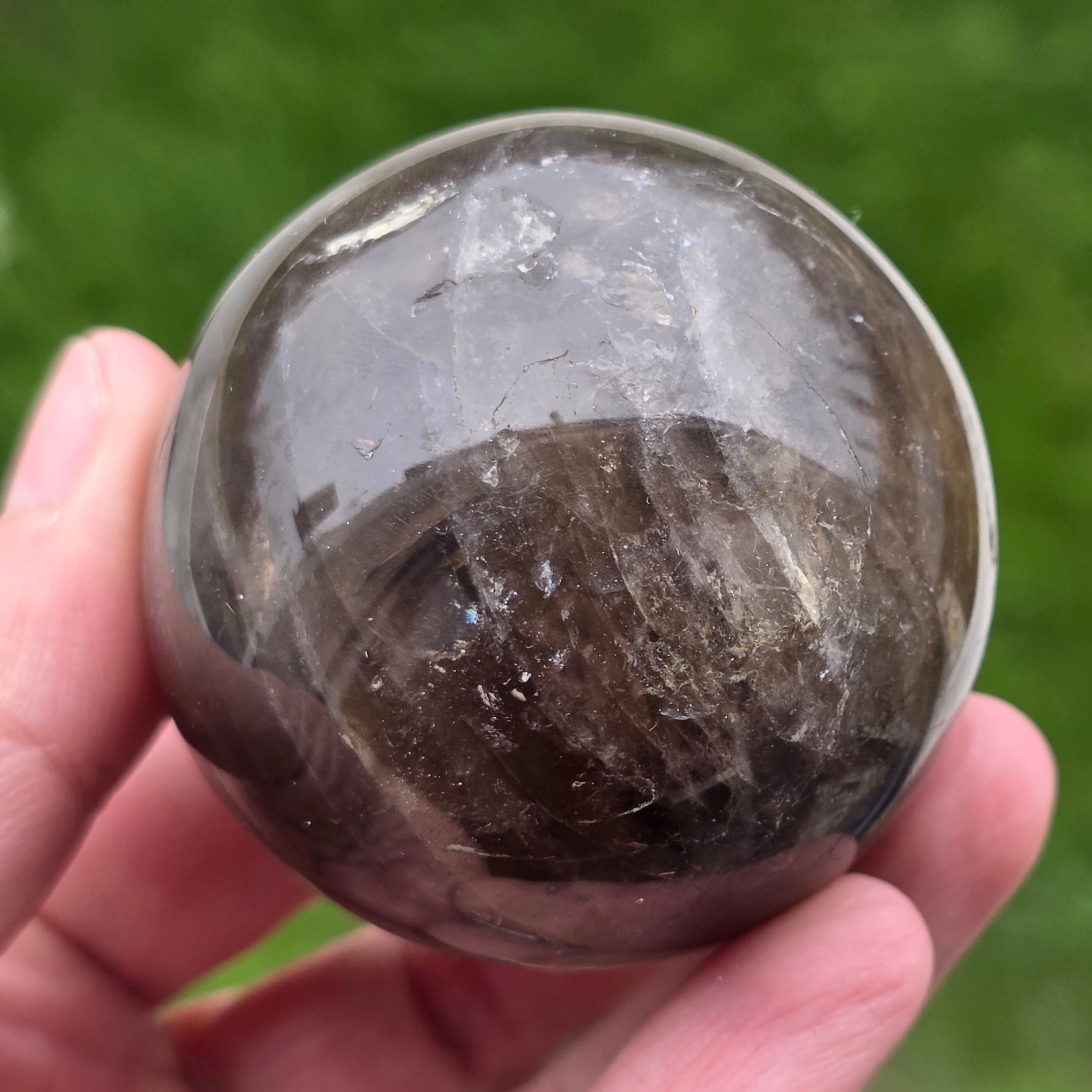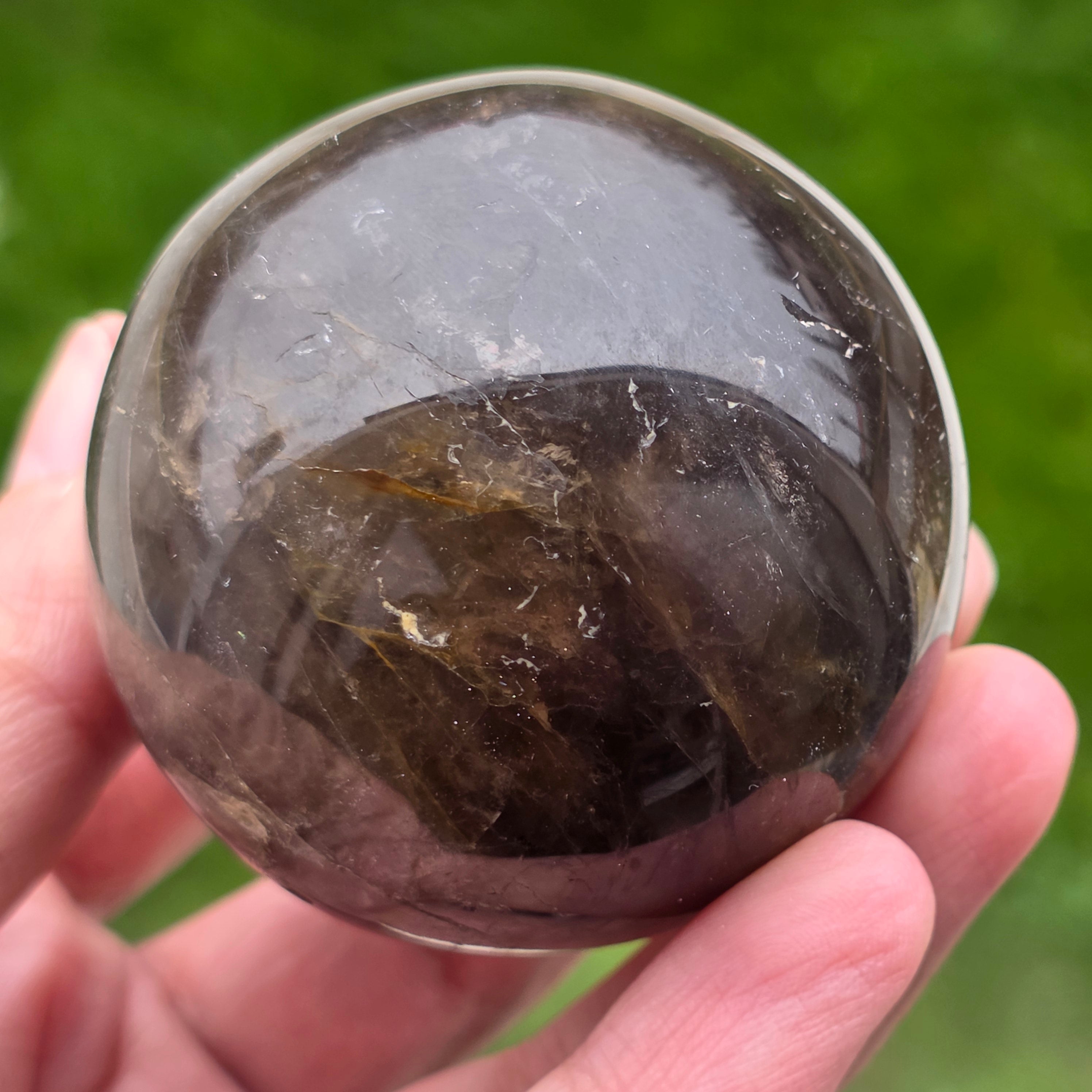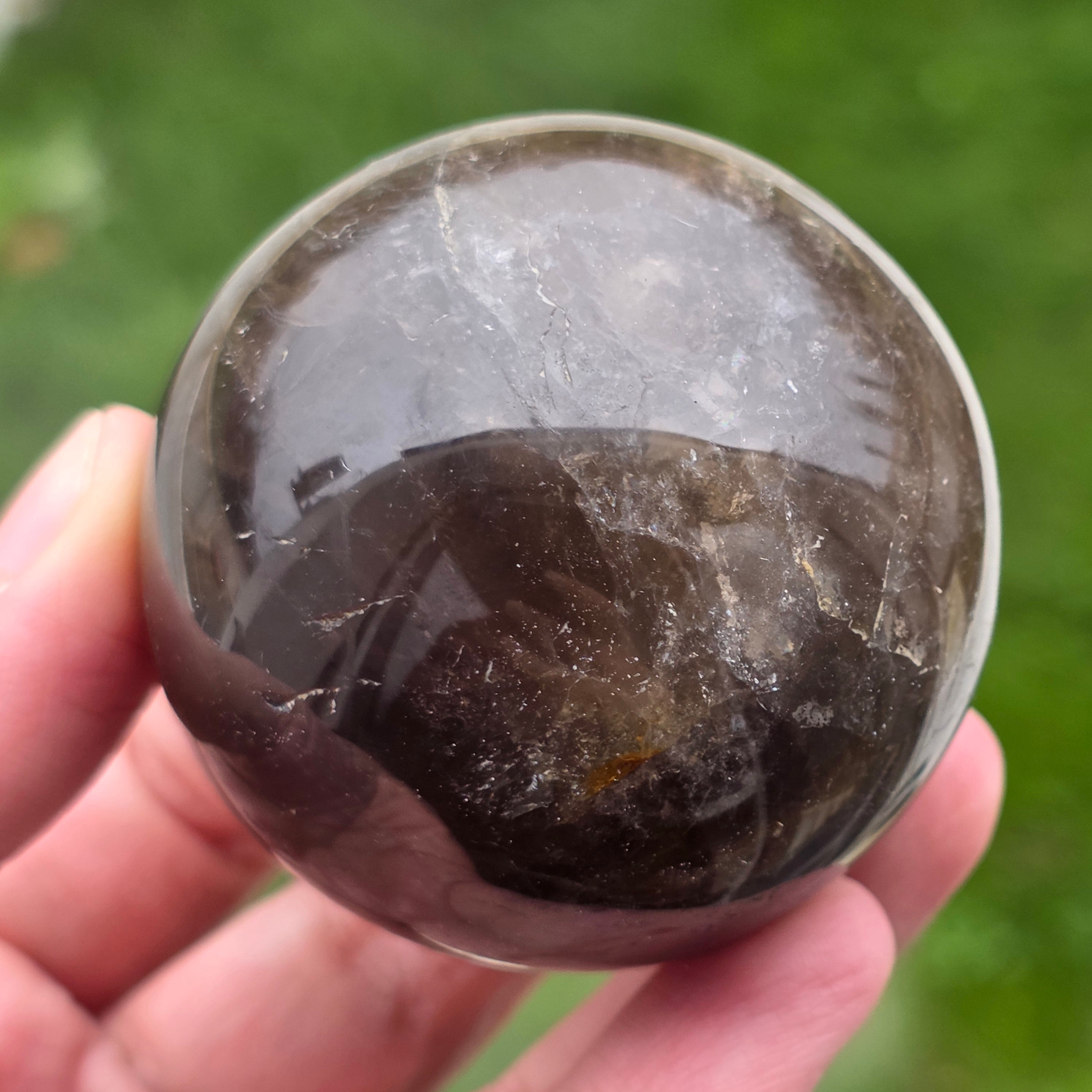 Η σφαίρα από καπνιστό κουάρτζ μορίον είναι ένα ισχυρό και κομψό κομμάτι, γνωστό για τον βαθύ της χρωματισμό, που μοιάζει με πυκνό καπνό ή διαφανές οψιανό. Το μορίον είναι η πιο σκούρα ποικιλία του καπνιστού κουάρτζ και σε αυτή την τέλεια σφαιρική μορφή αποκαλύπτει διακριτικές αντανακλάσεις, λεπτές εσωτερικές λεπτομέρειες και μια πραγματικά κομψή οπτική παρουσία.