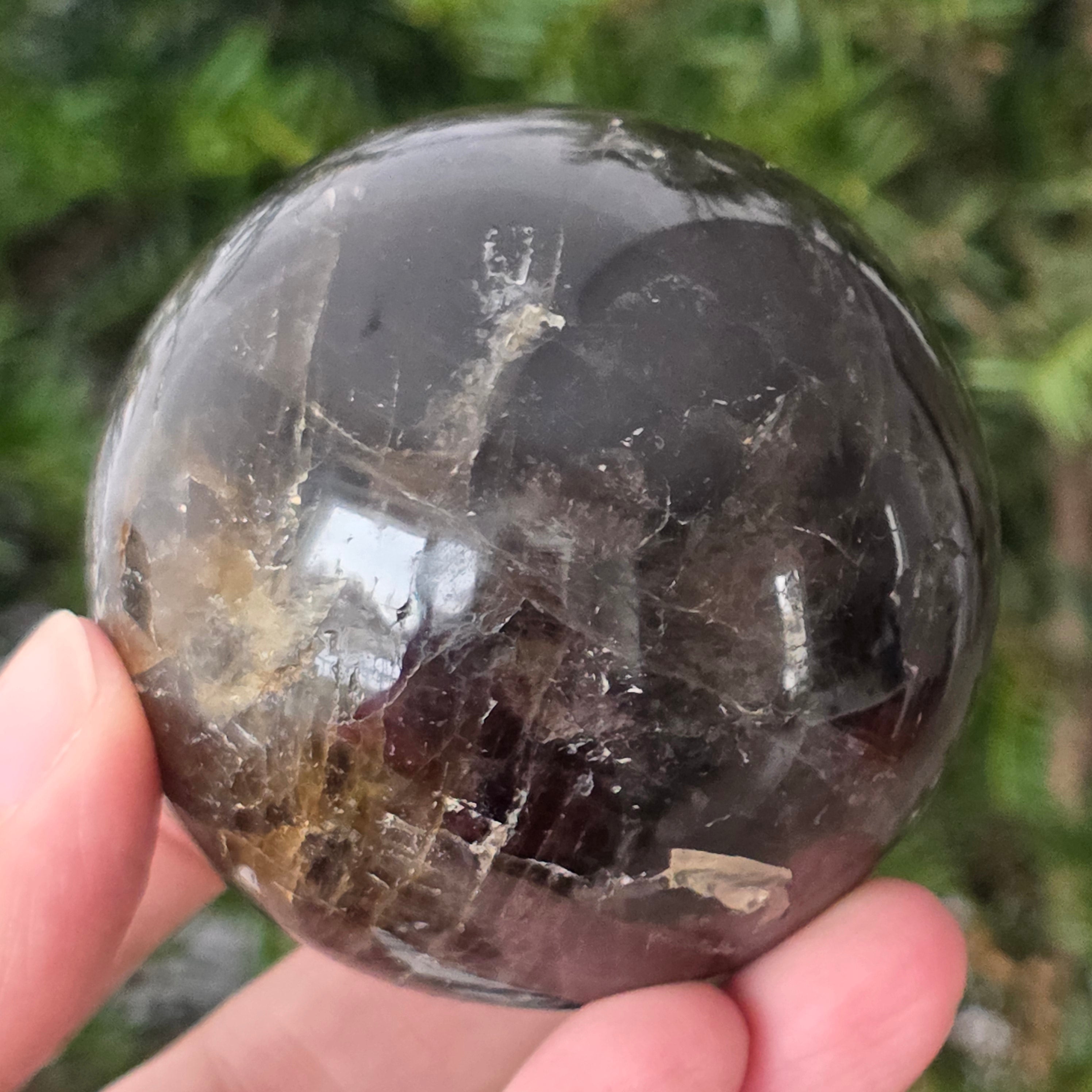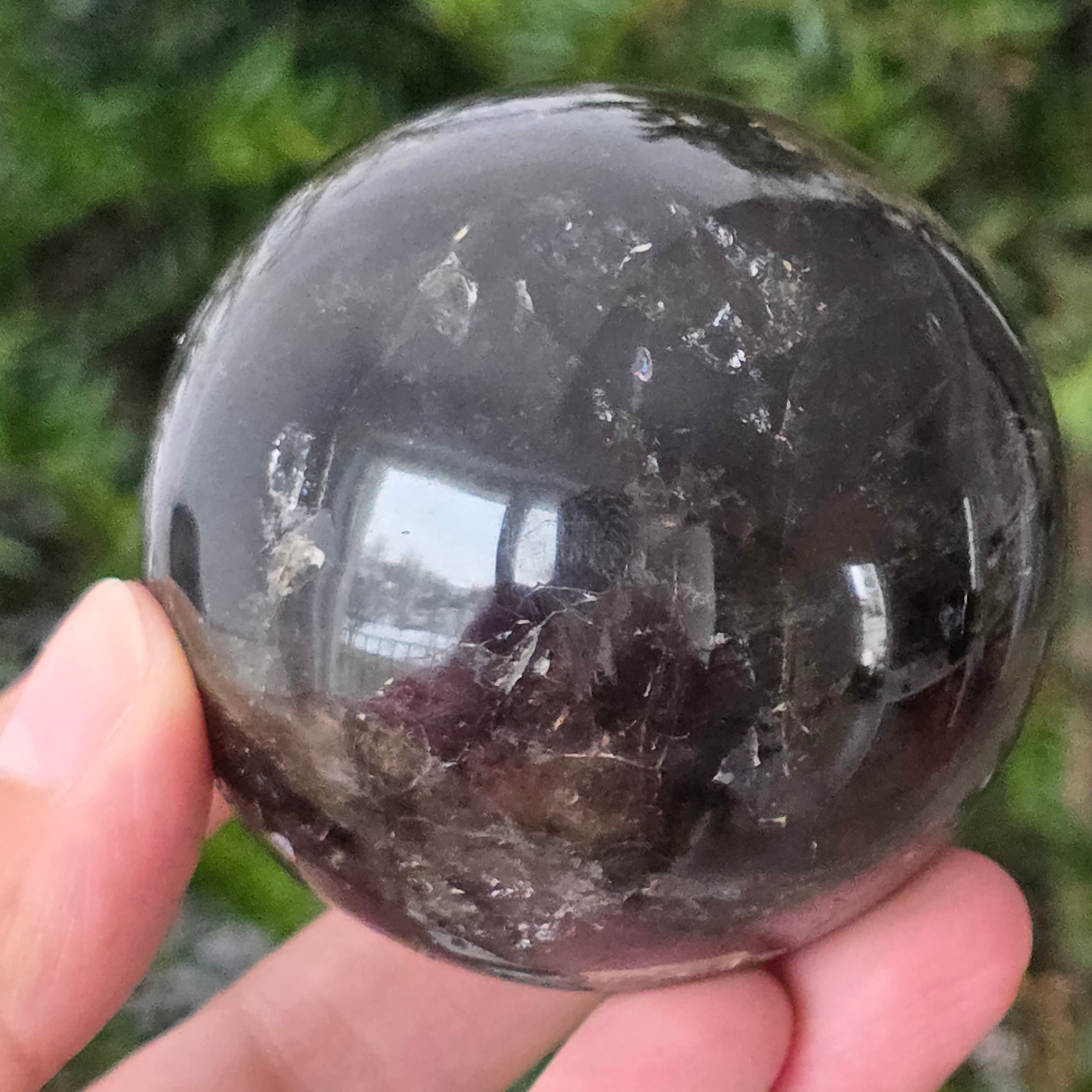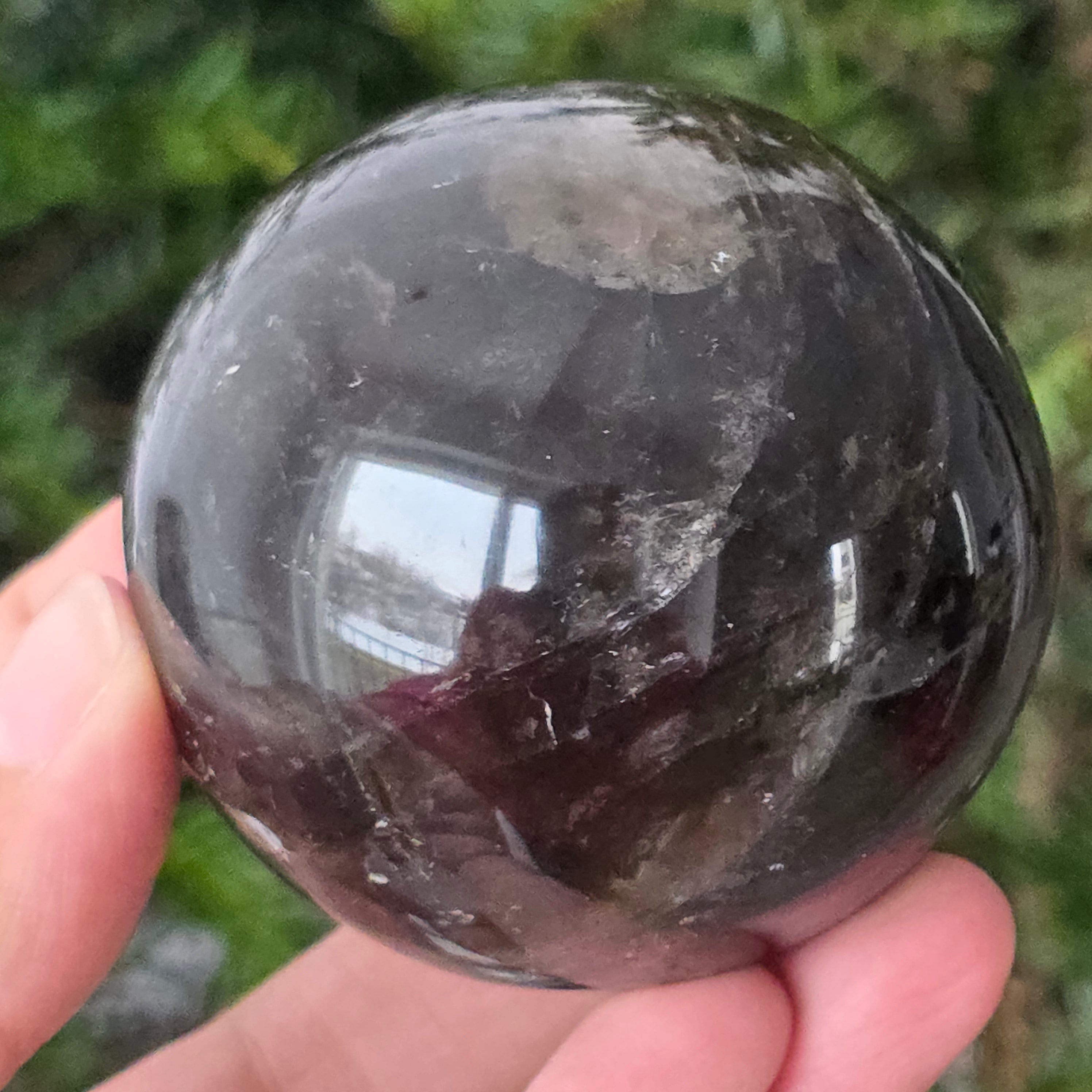 Η σφαίρα από μαύρο χαλαζία Morion είναι ένα ισχυρό και κομψό κομμάτι, γνωστό για την βαθιά απόχρωσή της, που μοιάζει με πυκνό καπνό ή διάφανο οψιδιανό. Το Morion είναι η πιο σκούρα ποικιλία καπνού χαλαζία και σε αυτή την τέλεια στρογγυλή μορφή αποκαλύπτει διακριτικές αντανακλάσεις, λεπτές εσωτερικές λεπτομέρειες και μια πραγματικά κομψή οπτική παρουσία.