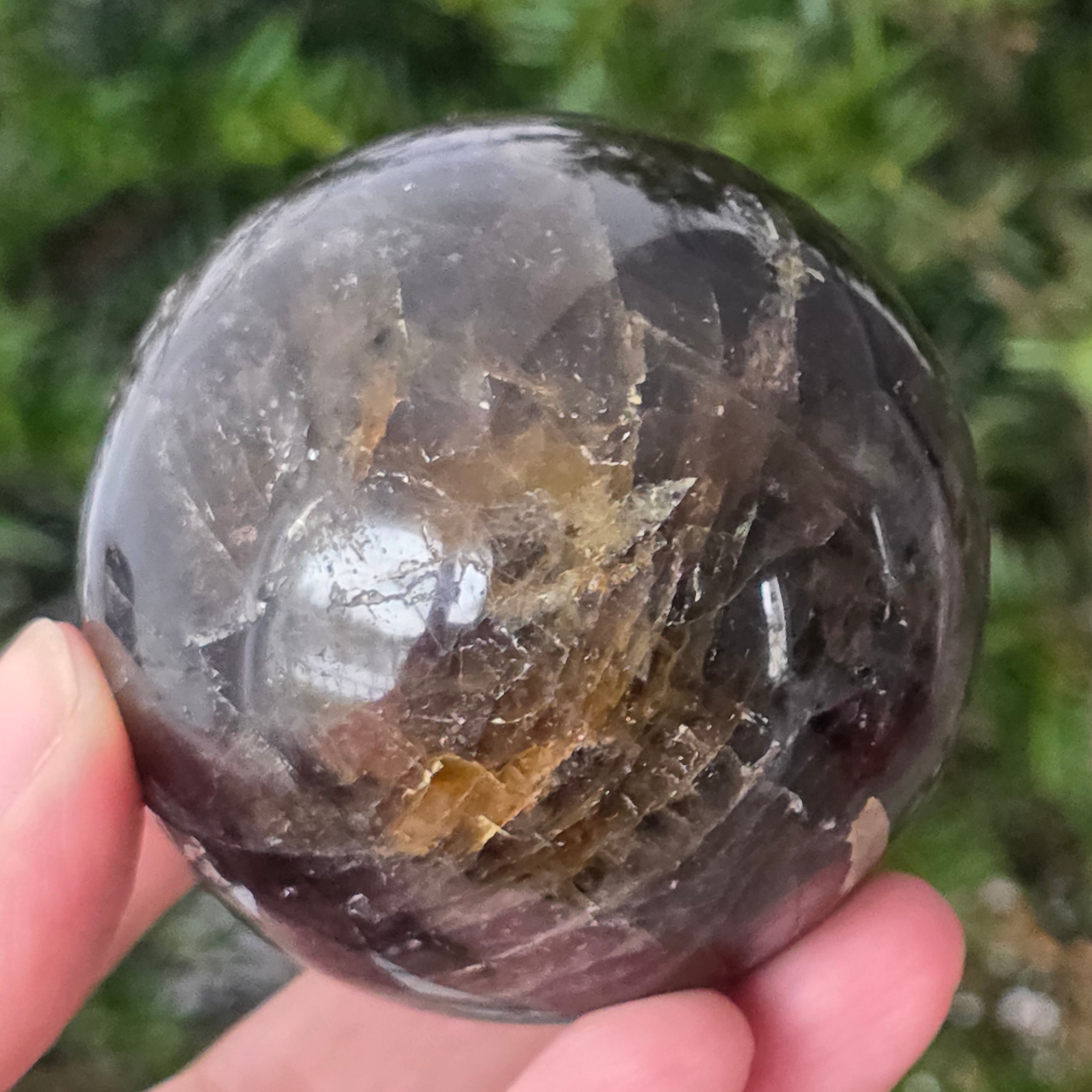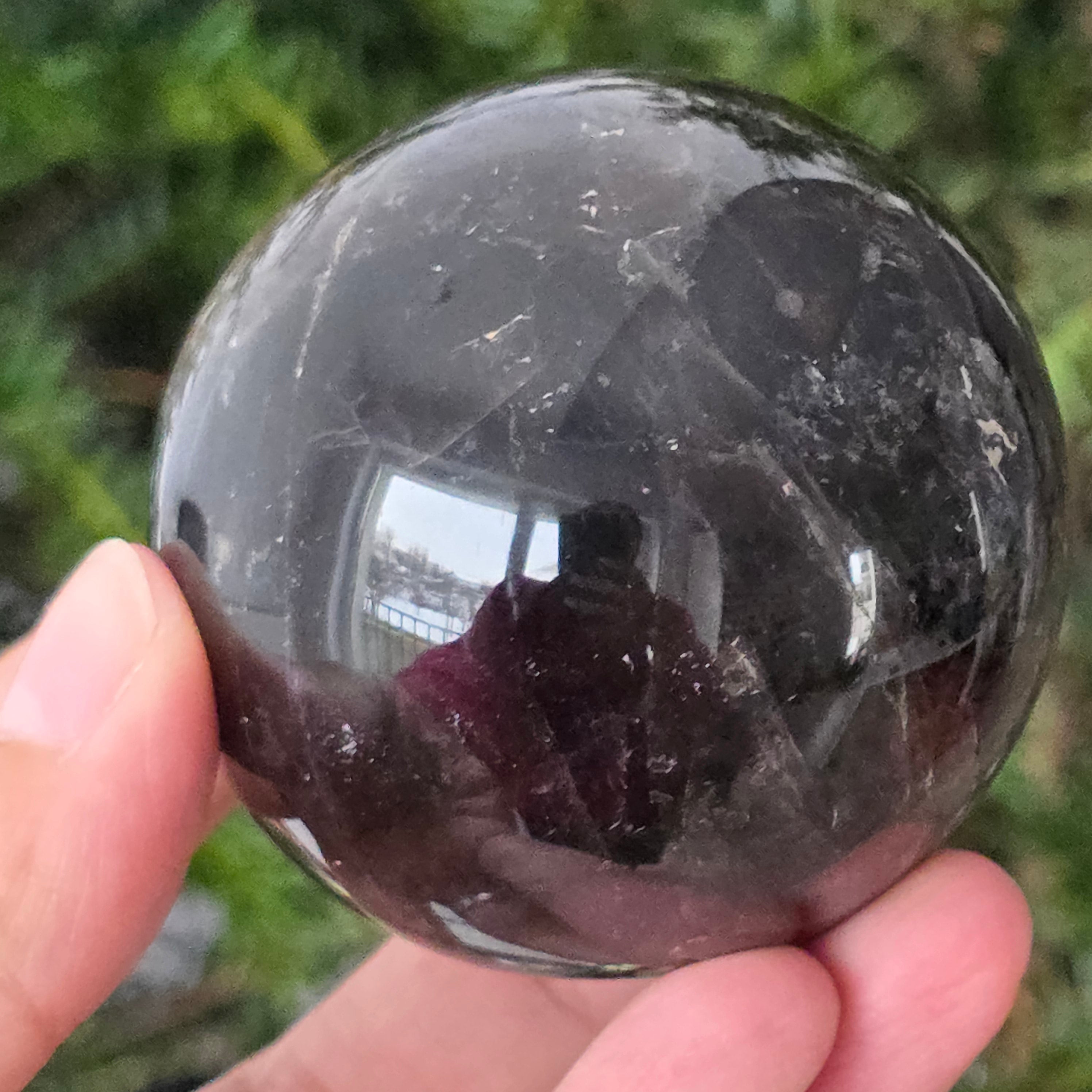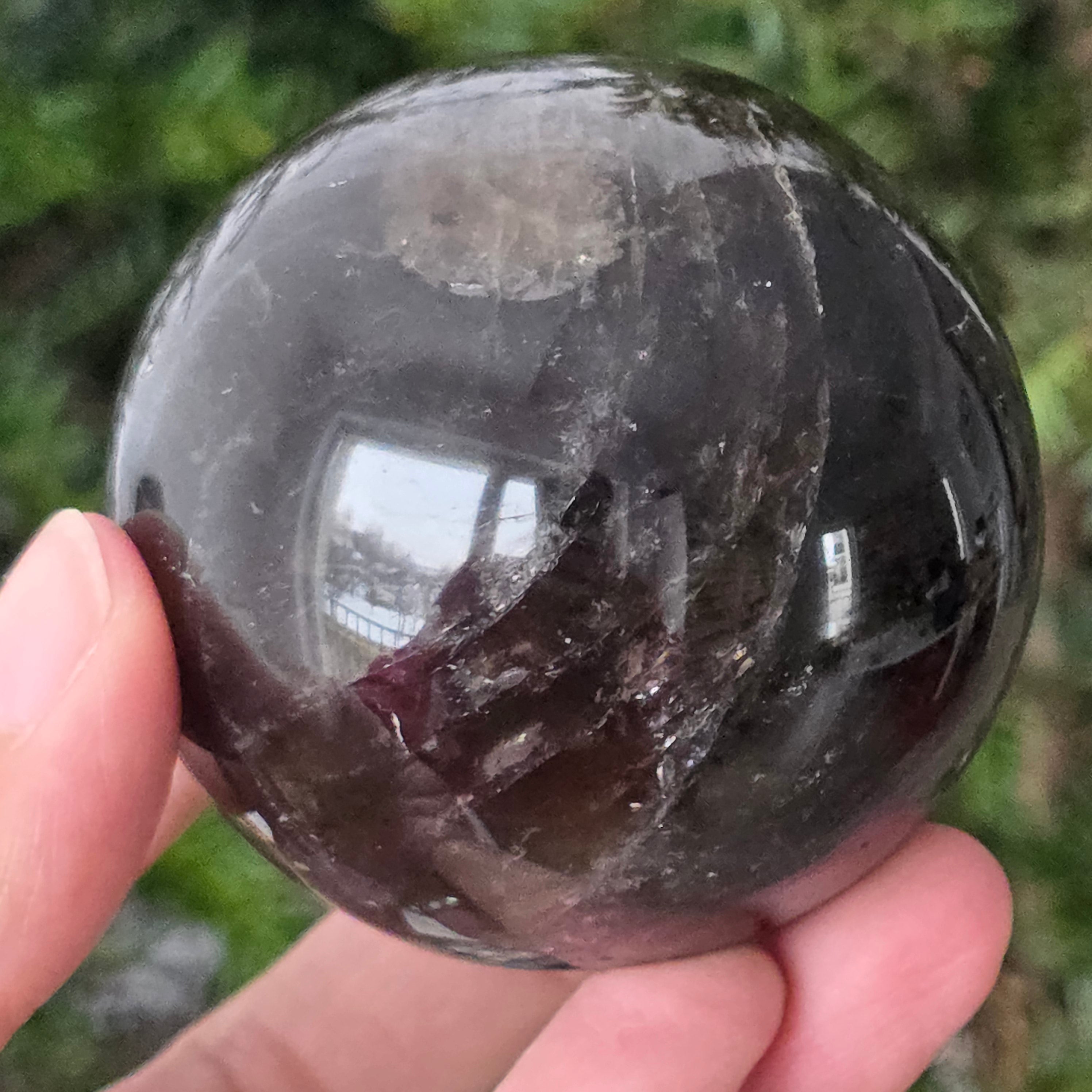 Η σφαίρα από μαύρο χαλαζία Morion είναι ένα ισχυρό και κομψό κομμάτι, γνωστό για την βαθιά απόχρωσή της, που μοιάζει με πυκνό καπνό ή διάφανο οψιδιανό. Το Morion είναι η πιο σκούρα ποικιλία καπνού χαλαζία και σε αυτή την τέλεια στρογγυλή μορφή αποκαλύπτει διακριτικές αντανακλάσεις, λεπτές εσωτερικές λεπτομέρειες και μια πραγματικά κομψή οπτική παρουσία.