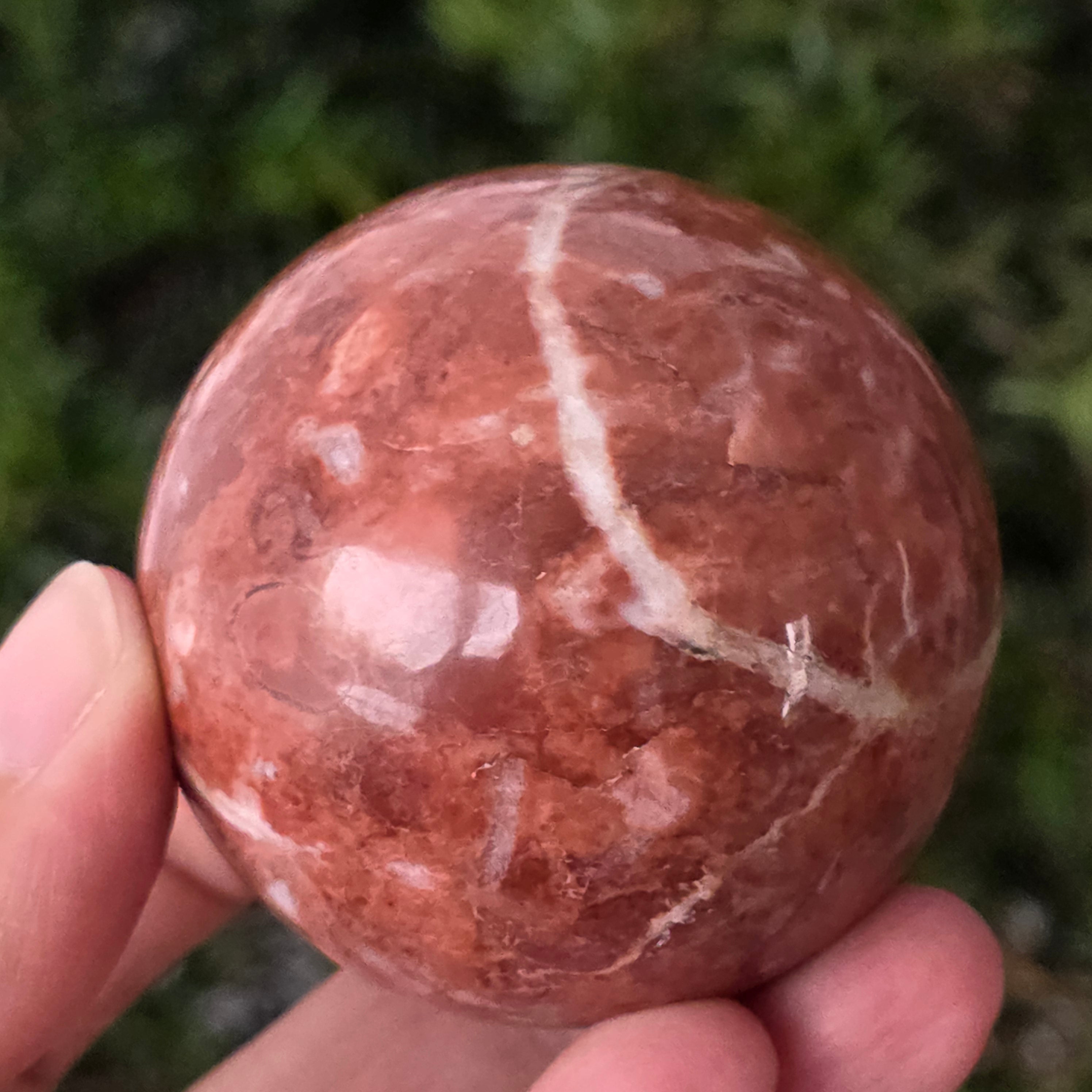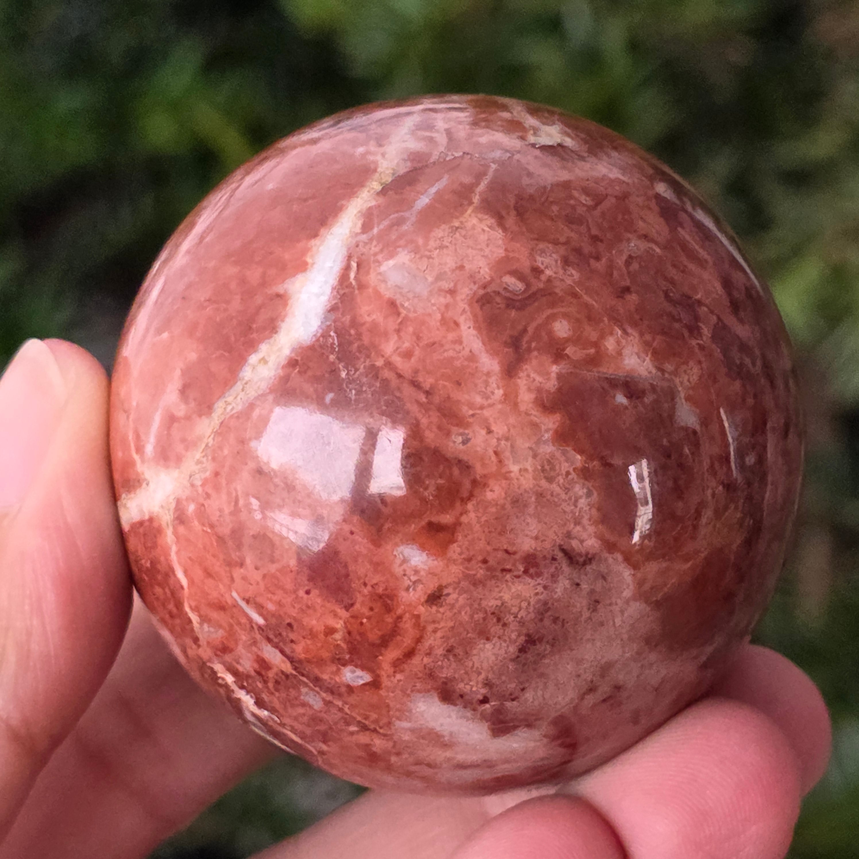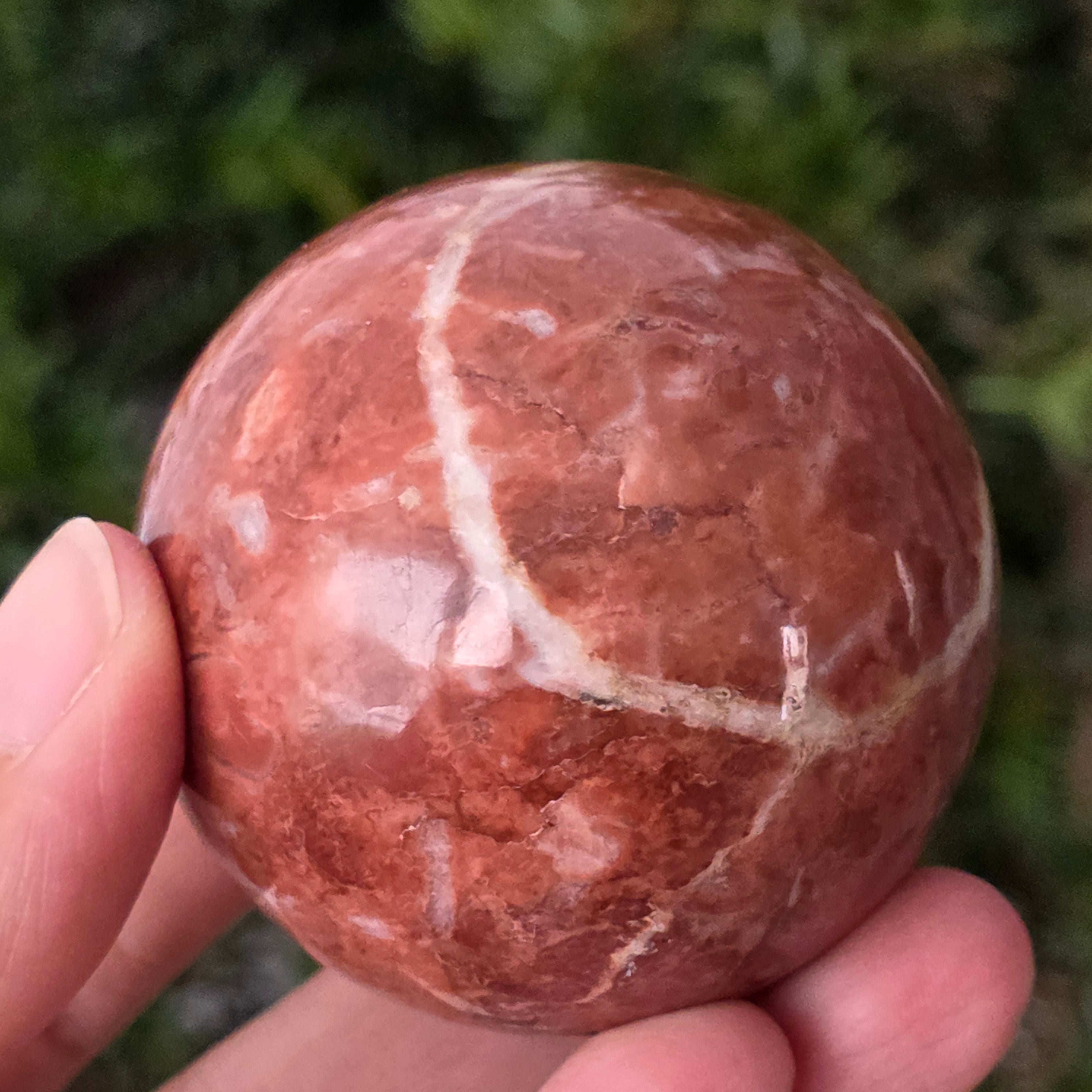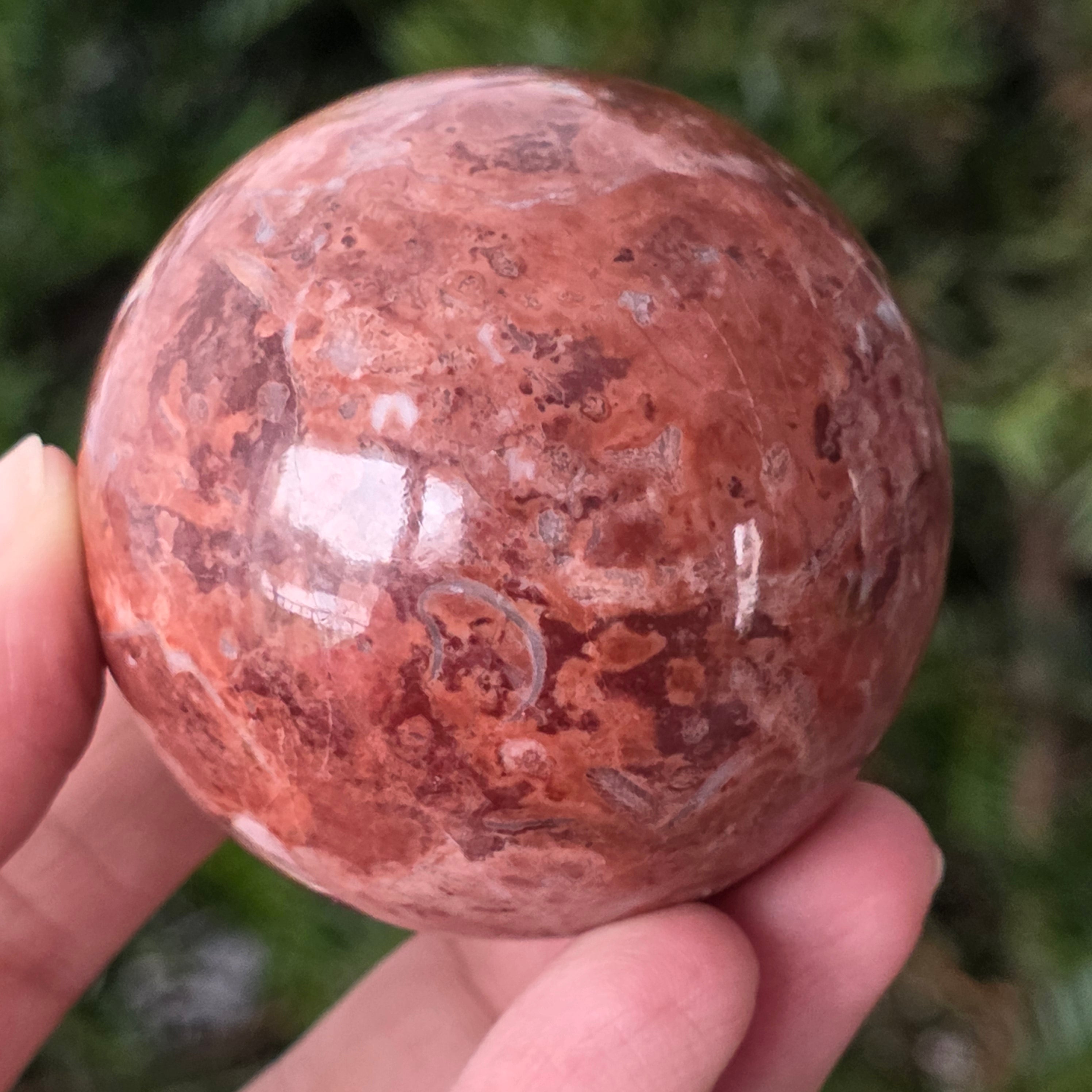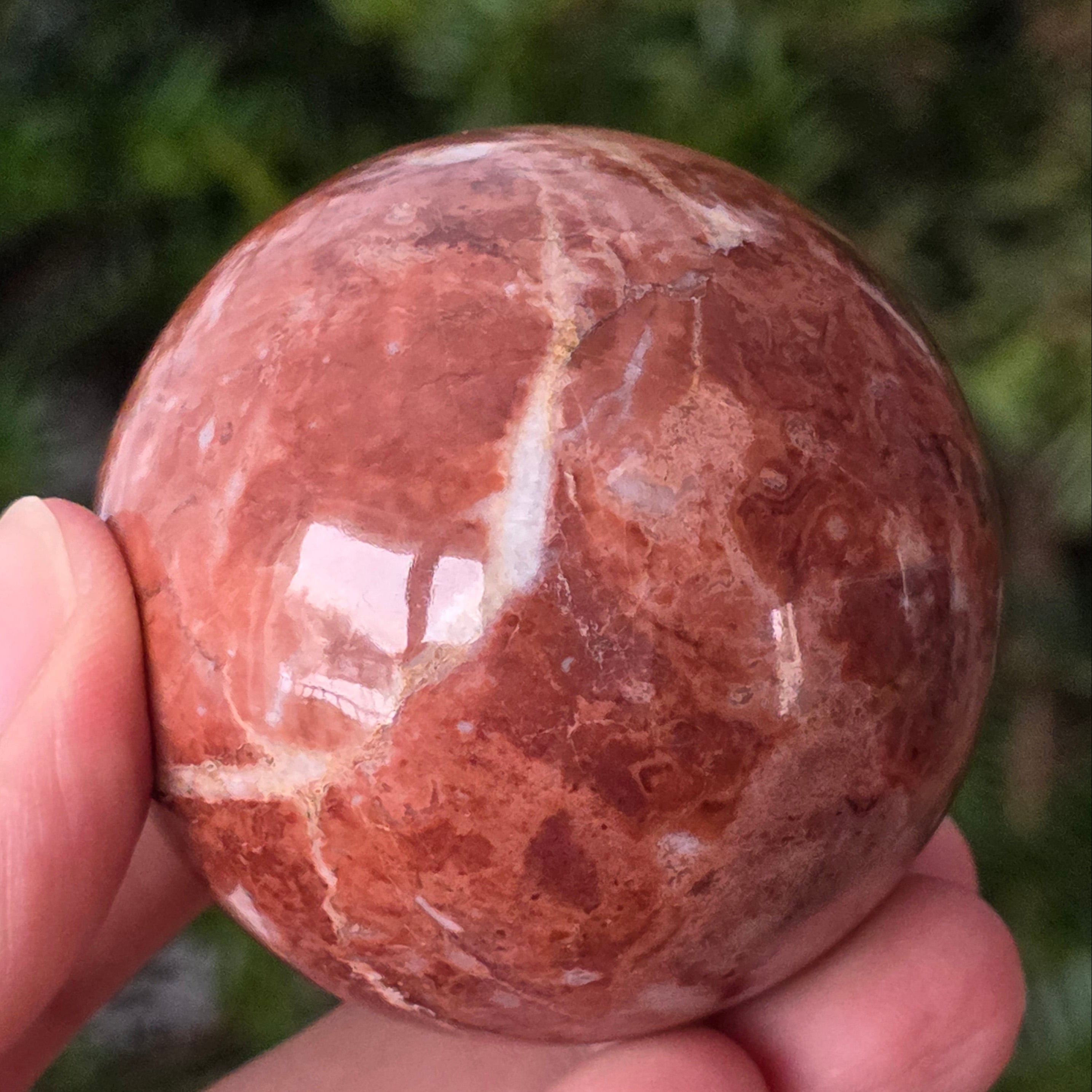 Διαμορφωμένη από τα βάθη της Γης, αυτή η σφαίρα από κόκκινο ίασπο εκπέμπει μια ζεστή, σταθερή και βαθιά ριζωμένη ενέργεια. Η πέτρα, γνωστή από τα αρχαιότερα χρόνια ως «πέτρα της ζωτικότητας», φέρει τα χρώματα του αίματος και της εσωτερικής φωτιάς – σύμβολο ζωτικής δύναμης, θάρρους και επιμονής.