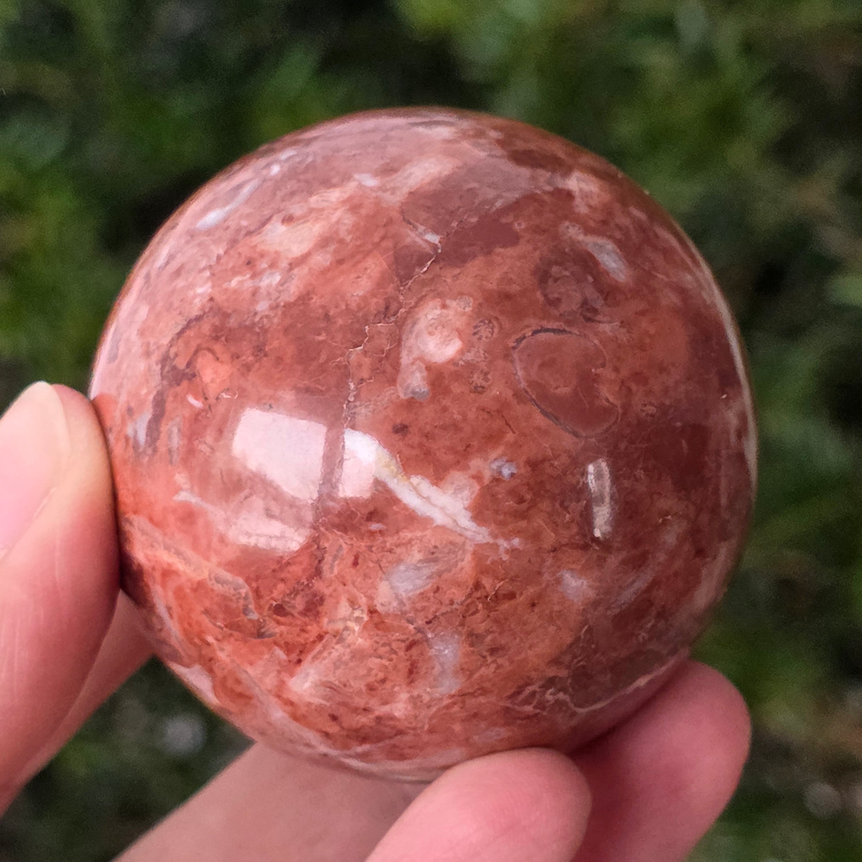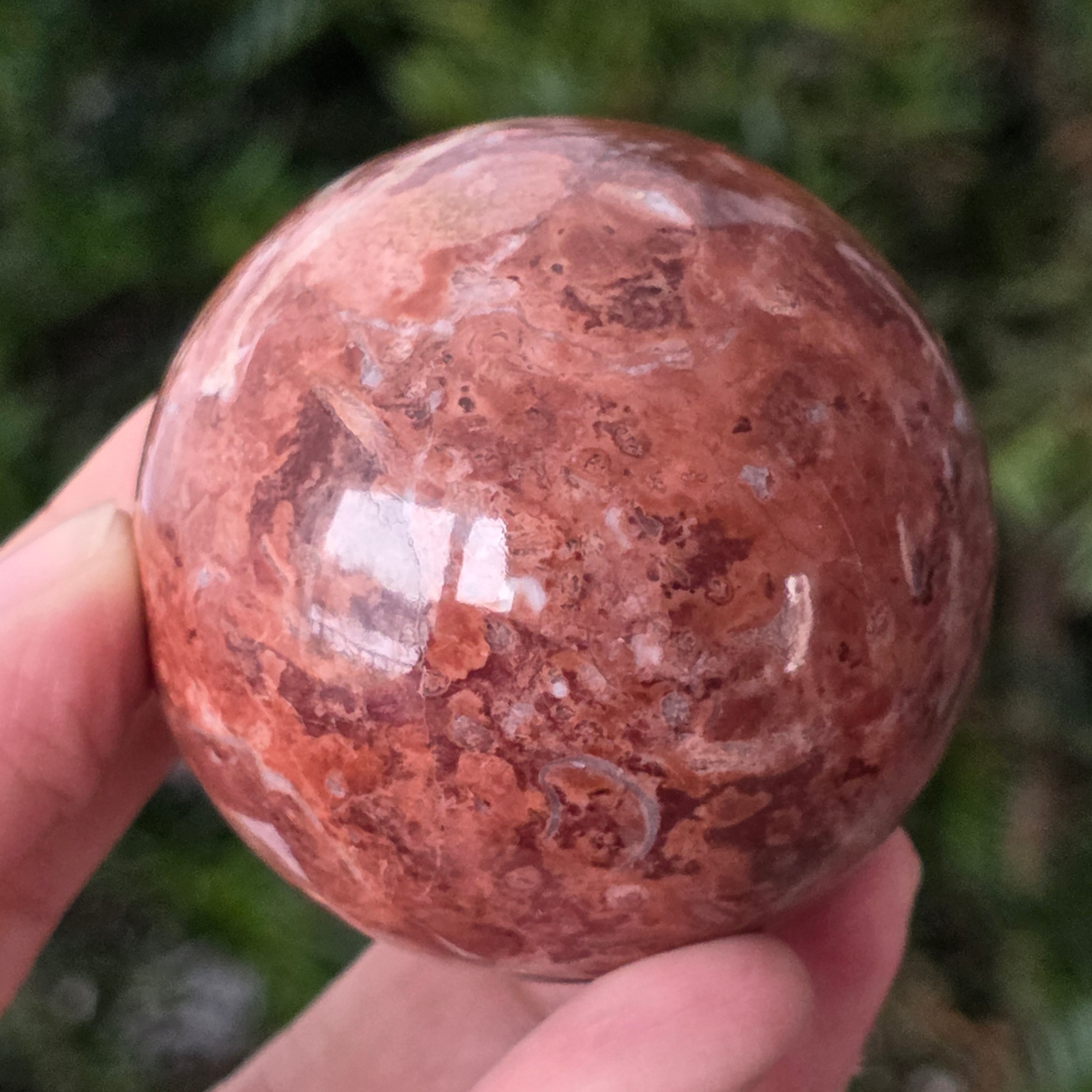 Αυτή η σφαίρα από φυσικό κόκκινο ίασπη είναι μια διακριτική, αλλά βαθιά παρουσία — μια συνεχής υπενθύμιση της σύνδεσης με τη γη, της σταθερότητας και του θάρρους να παραμένεις κεντραρισμένος στη δική σου δύναμη.