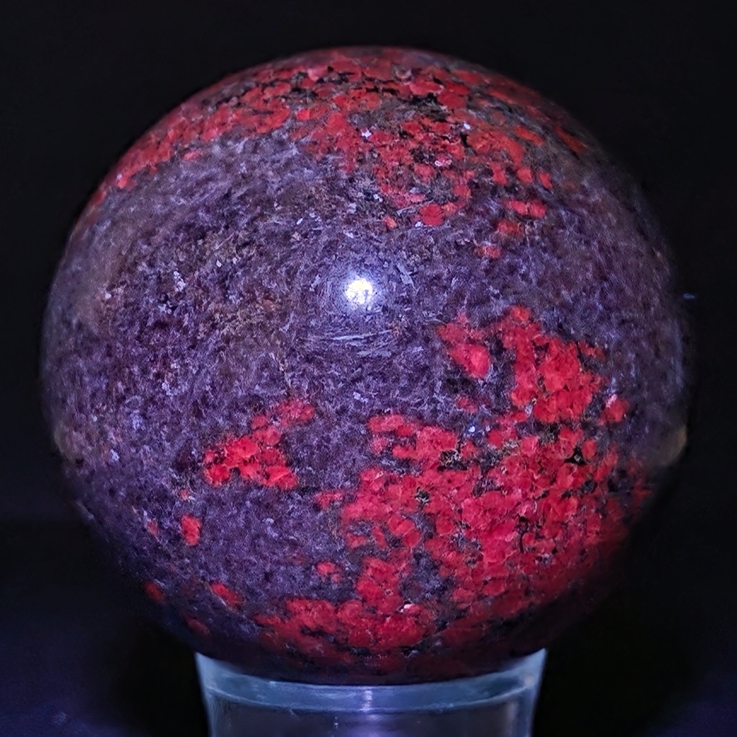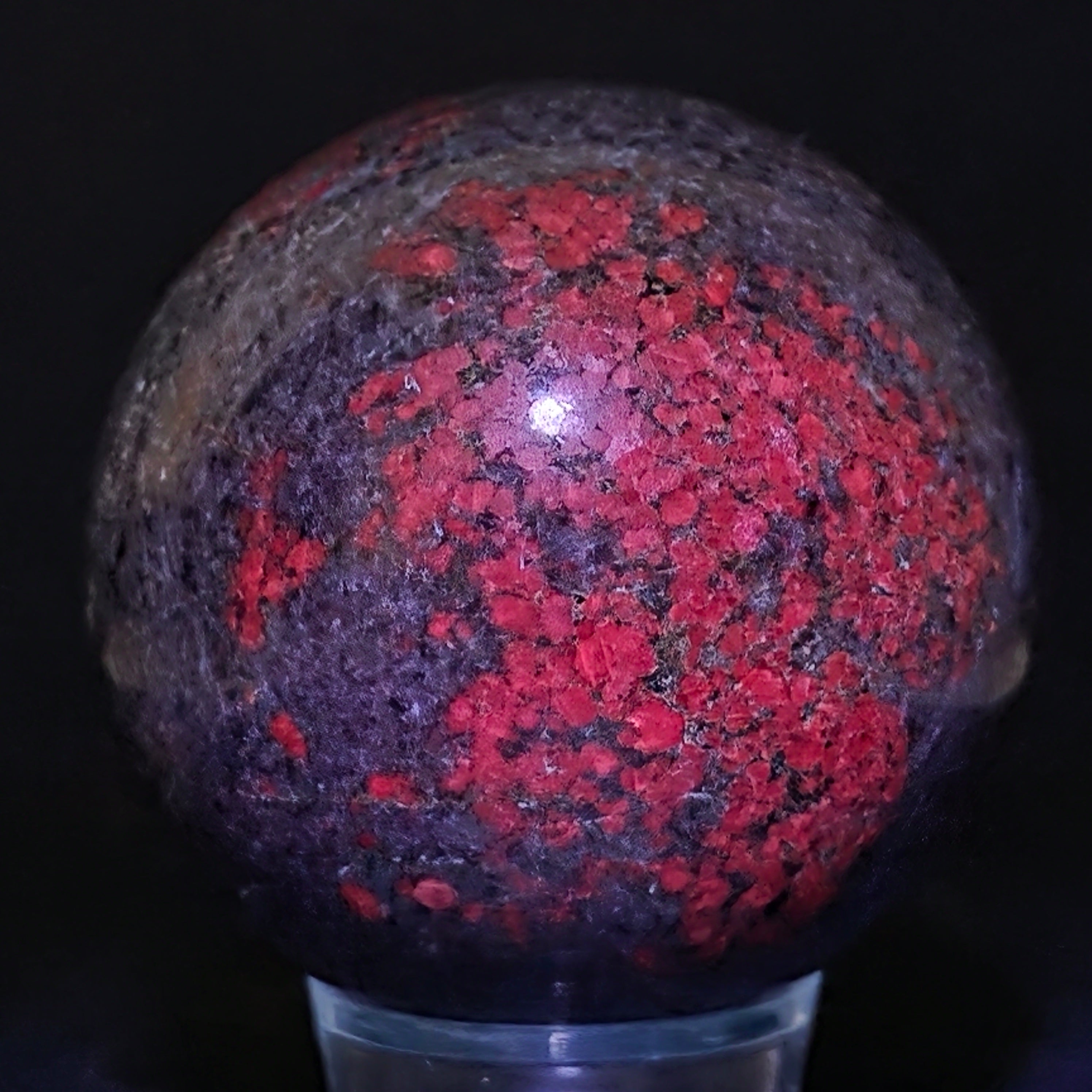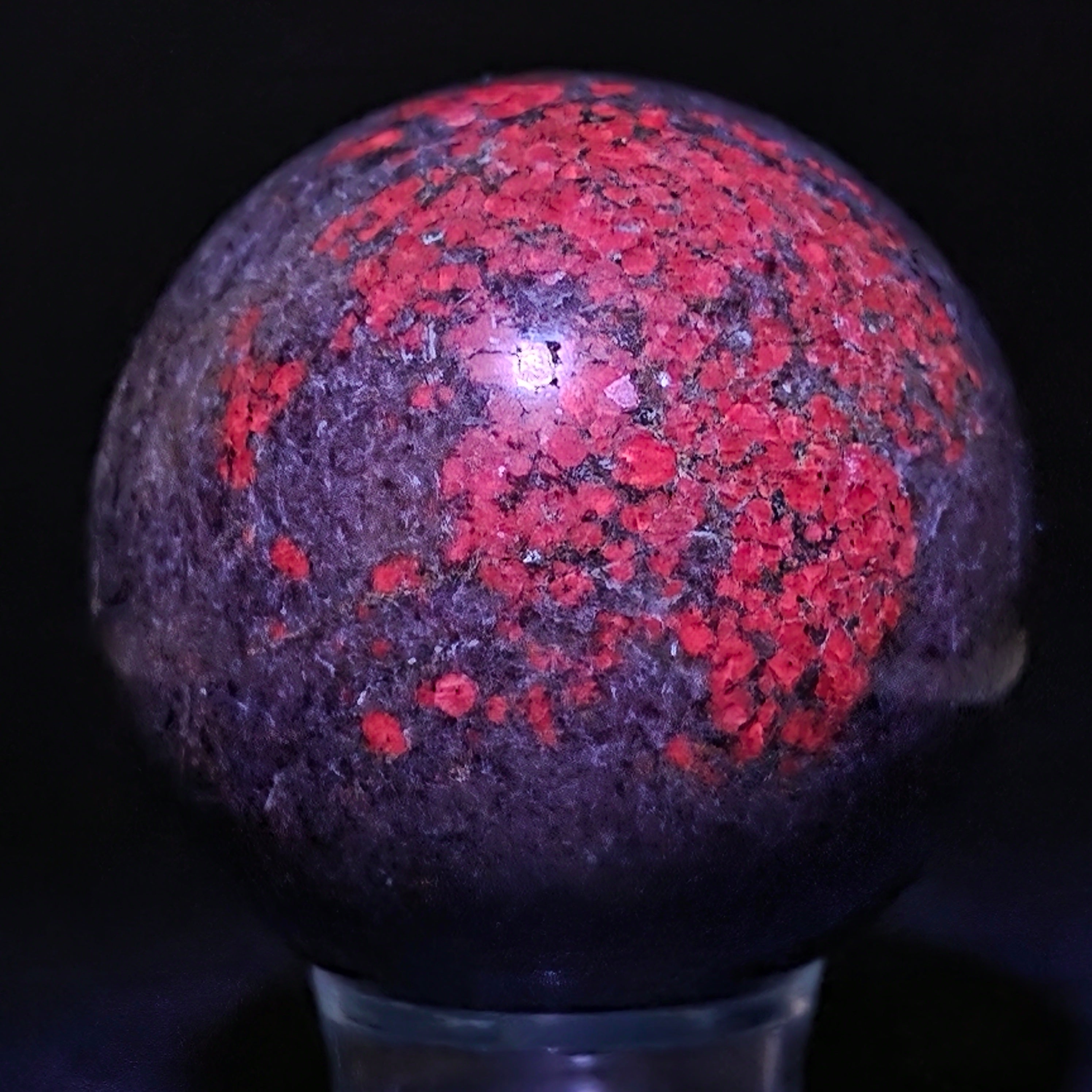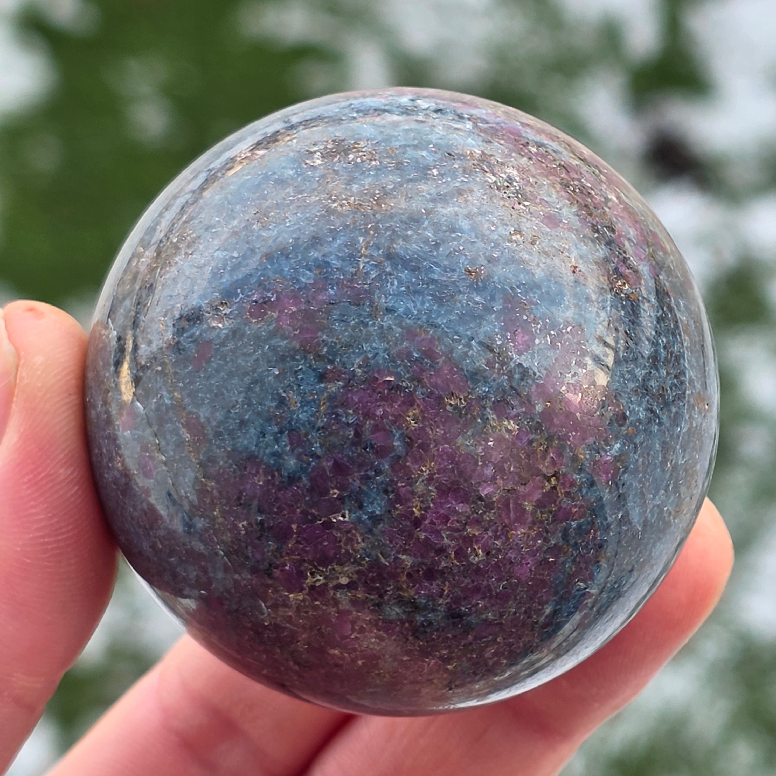 Η σφαίρα από ρουμπίνι σε φυκσίτη με κιανίτη συνδυάζει τρεις συμπληρωματικές ενέργειες: τη ζωτικότητα του ρουμπινιού, την αναζωογονητική ηρεμία του φυκσίτη και τη διαύγεια του κιανίτη. Το σφαιρικό σχήμα υποστηρίζει την ισορροπία μεταξύ πάθους, ηρεμίας και αυθεντικής έκφρασης, συνδέεται με την εναρμόνιση των συναισθημάτων και την ενίσχυση της σύνδεσης μεταξύ καρδιάς και μυαλού.
