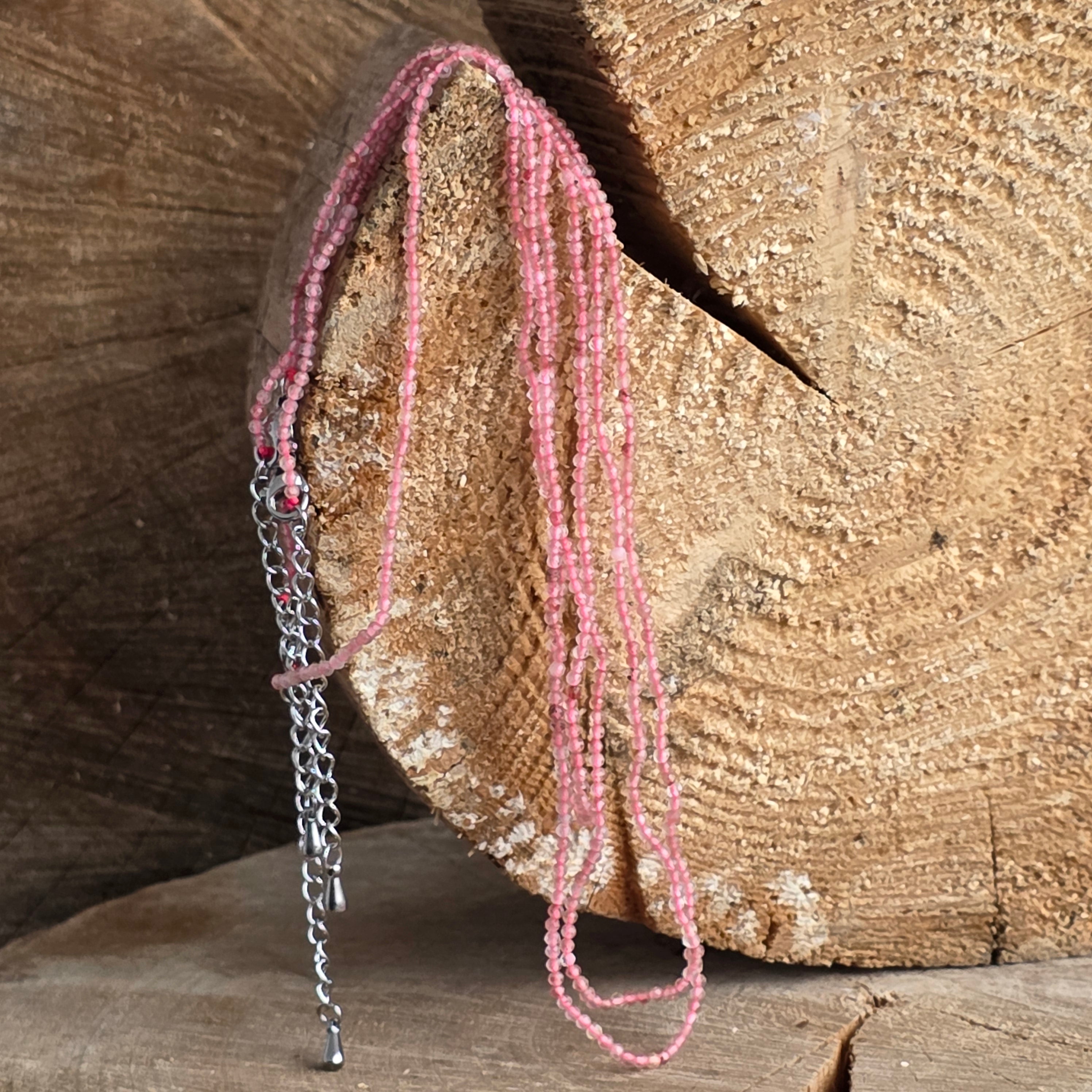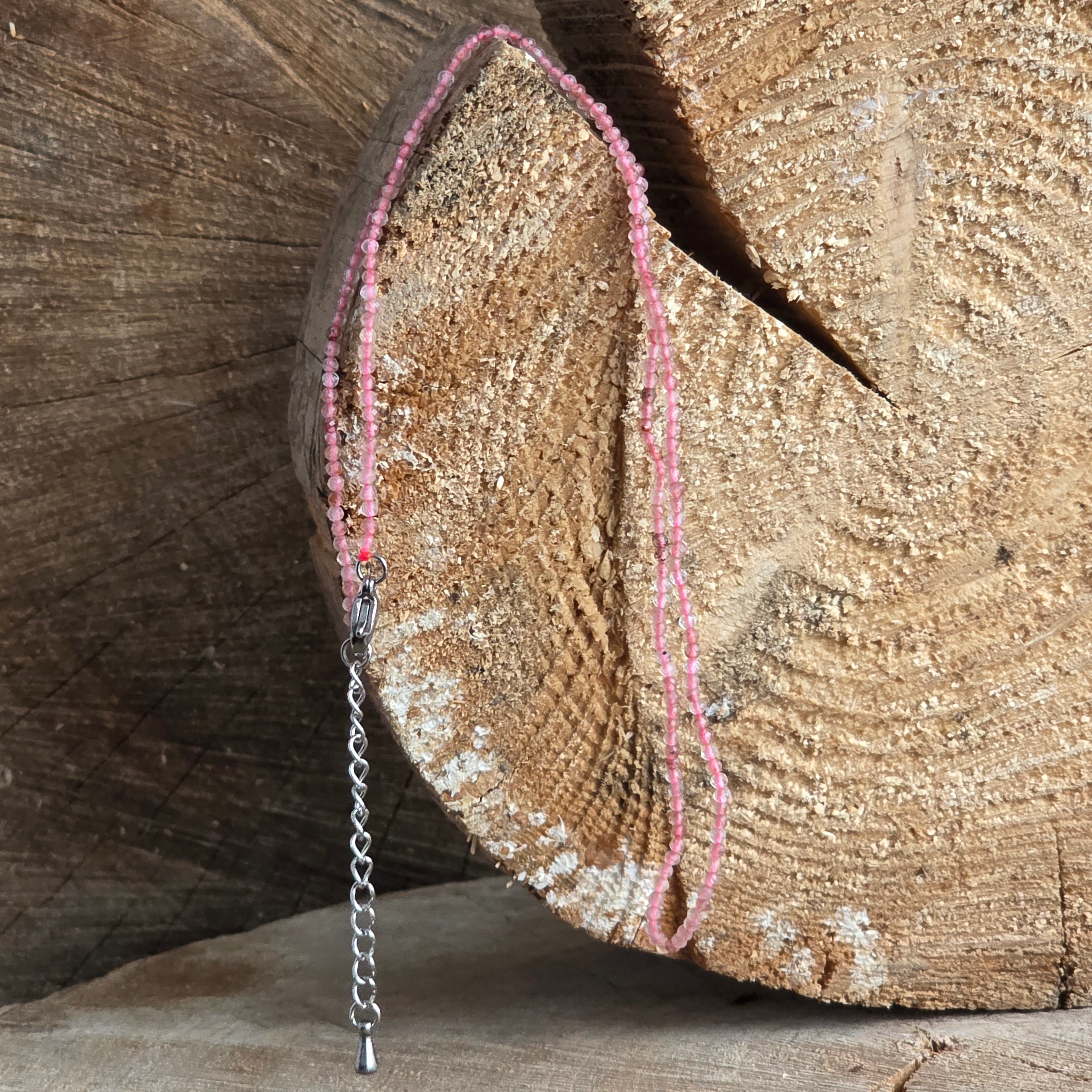 Κολιέ χαλαζία φράουλας σφαίρες 2-3 mm, μέγεθος: 38 + 5 cm (αλυσίδα επέκτασης)