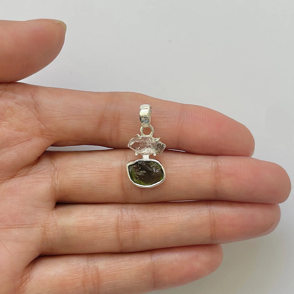 Μέγεθος πέτρας: Moldavit ~ 1,1 * 0,9 cm, Herkimer ~ 0,8 x 0,6 cm