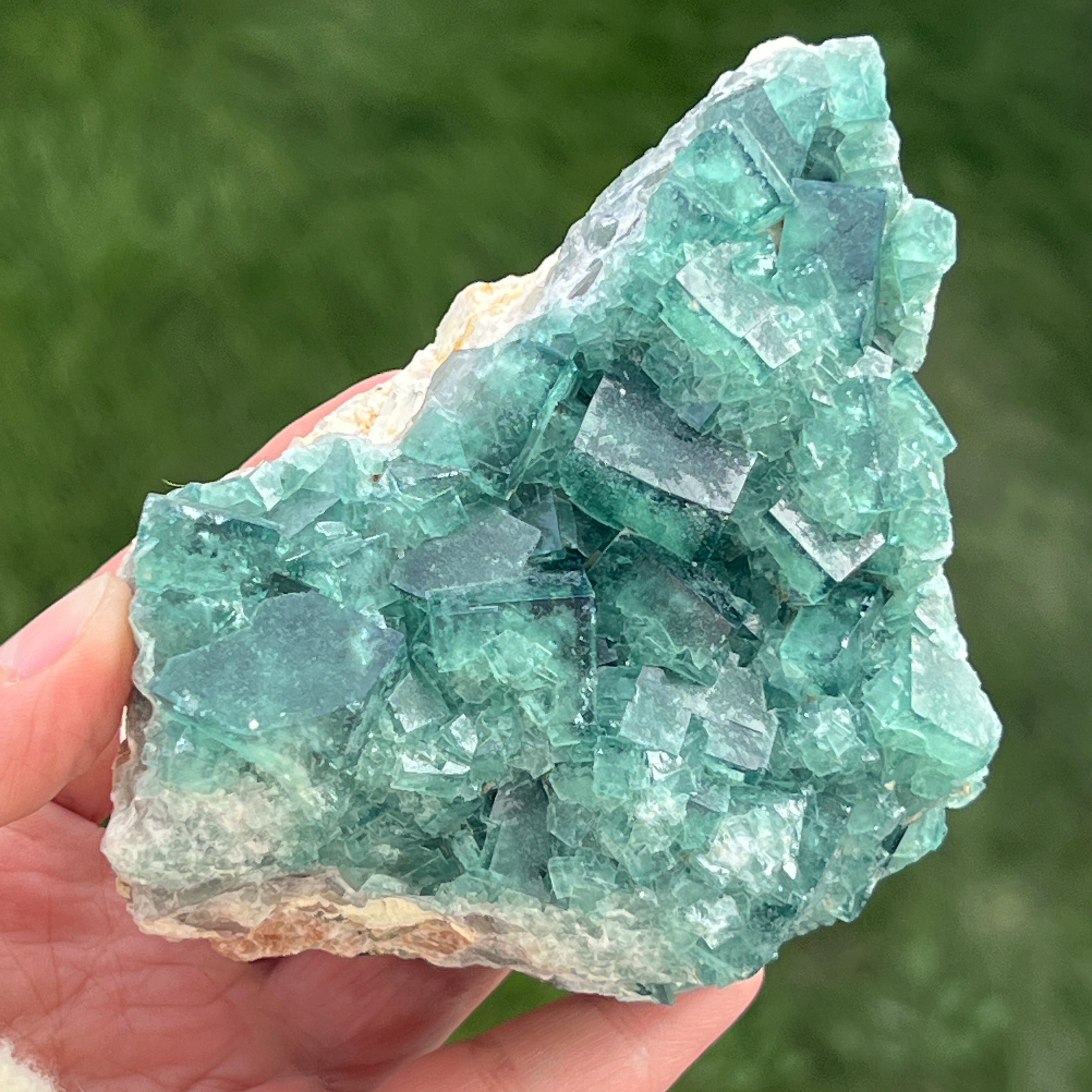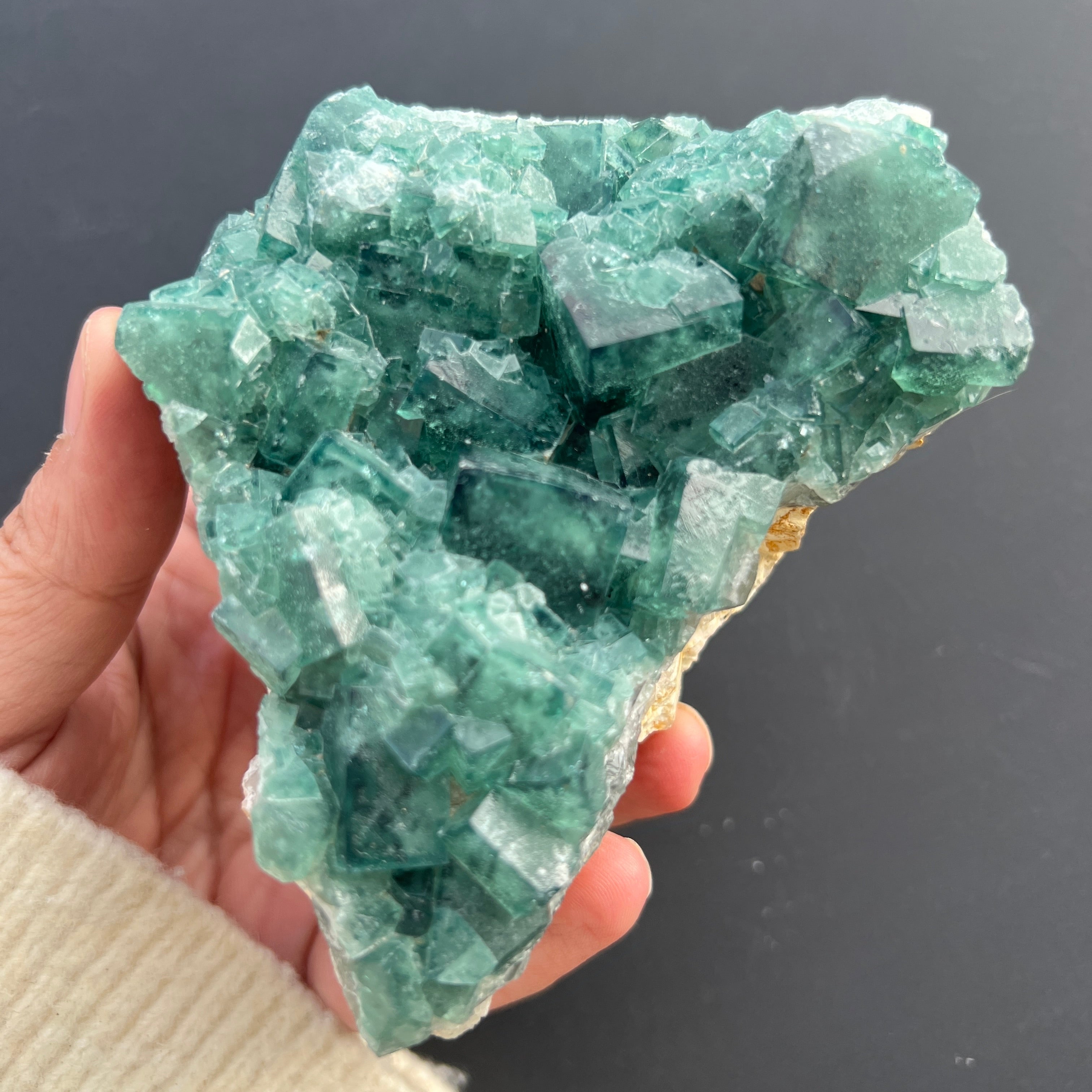 Ένας κρύσταλλος φλουορίτη με καλά καθορισμένο κυβικό σχήμα αποτελεί μία από τις πιο ξεκάθαρες εκδηλώσεις του ισομετρικού κρυσταλλικού συστήματος. Οι κανονικές του ακμές, οι ομαλές επιφάνειες και η δομική του διαύγεια είναι αποδείξεις φυσικής ανάπτυξης σε ένα σταθερό περιβάλλον, χωρίς σημαντικές διαταραχές κατά τη διαδικασία σχηματισμού.
