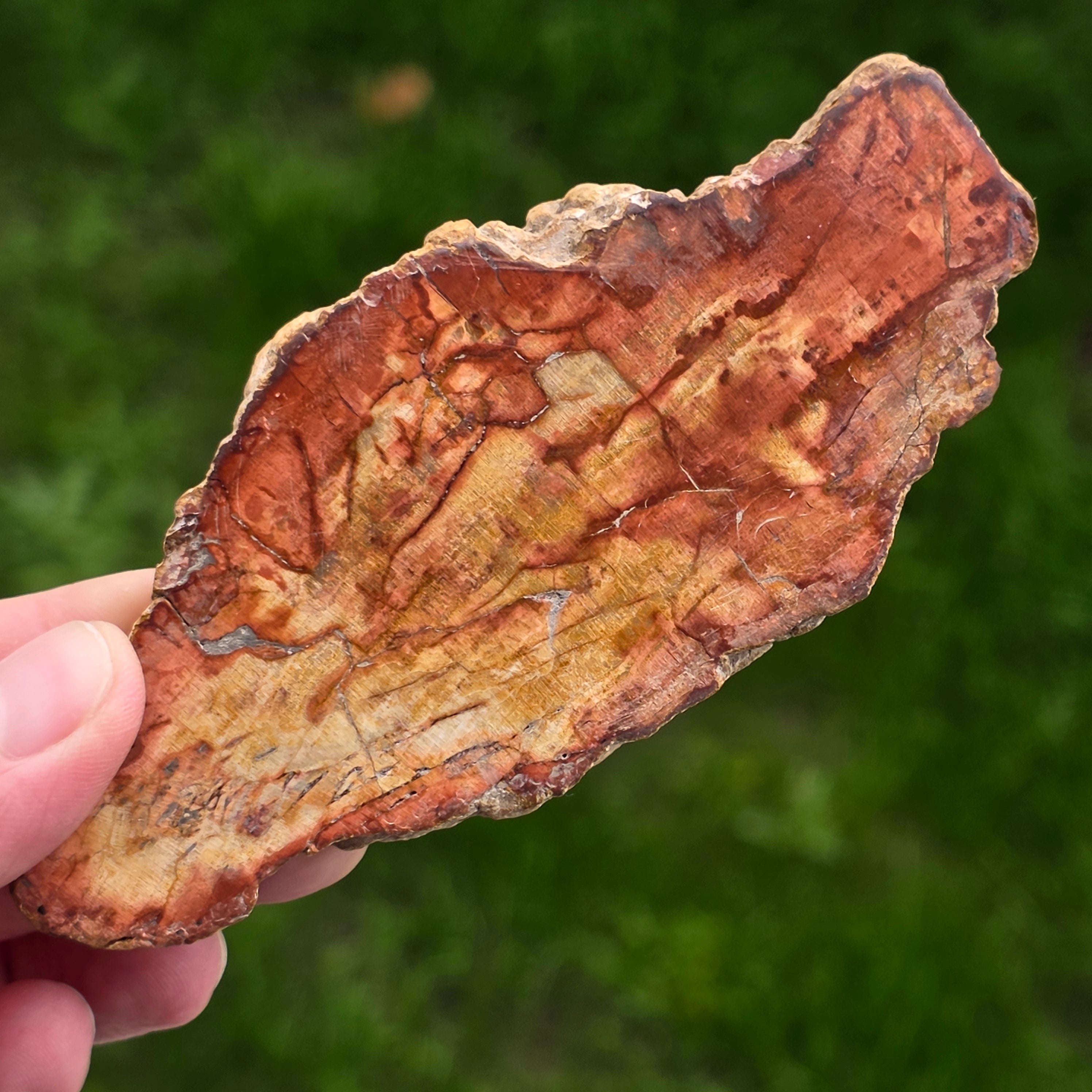 Με την πάροδο του χρόνου, τα απολιθωμένα χρώματα του ξύλου αναπτύσσονται λόγω των ορυκτών ακαθαρσιών: ο σίδηρος προσθέτει κοκκινωπές ή πορτοκαλί αποχρώσεις, το μαγγάνιο φέρνει μαύρους και μοβ τόνους και ο χαλκός μπορεί να δώσει πρασινωπό ή μπλε τόνους. Αν και με την πρώτη ματιά μοιάζει με ξύλο, αυτή η πέτρα είναι πλήρως μεταλλοποιημένη, έχοντας α Σκληρότητα Mohs περίπου 6,5 – 7, παρόμοιο με αυτό του χαλαζία.