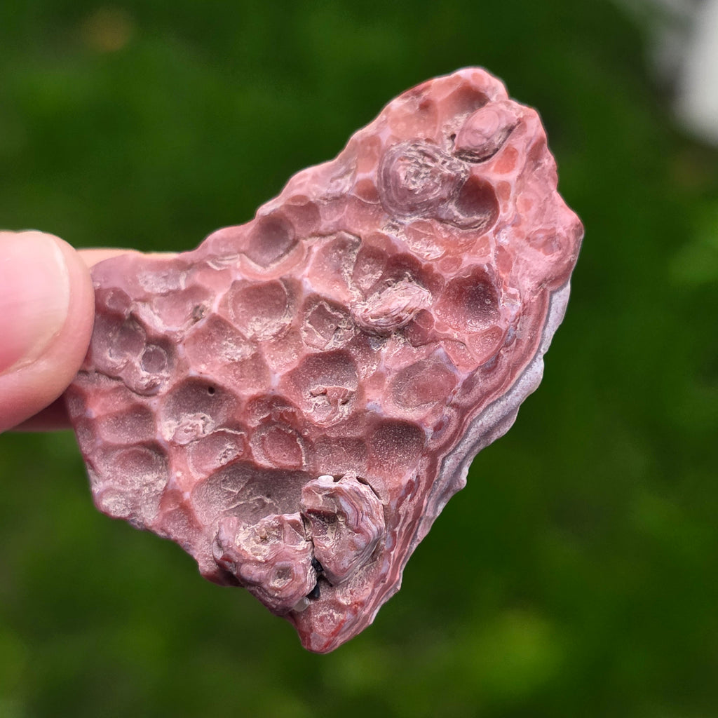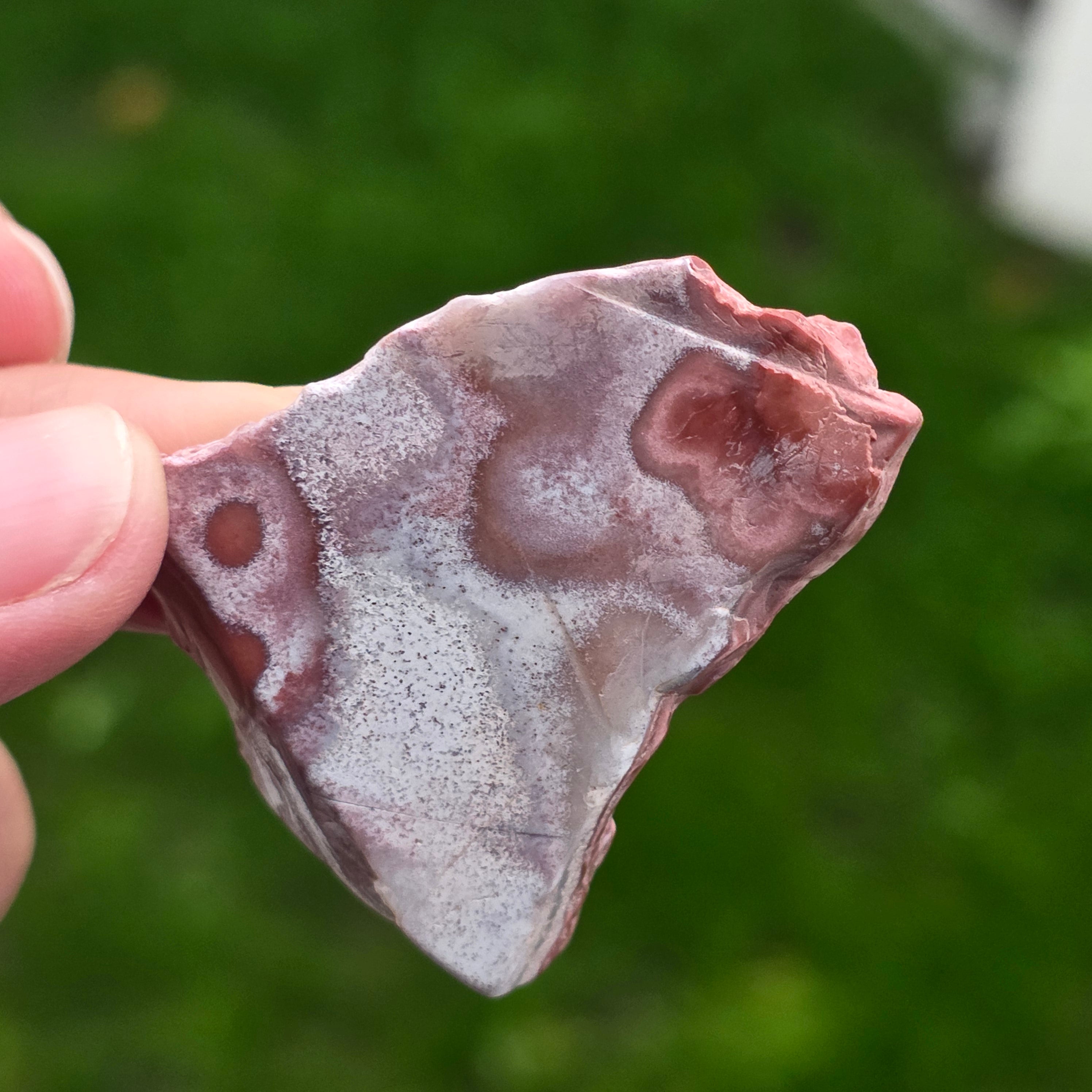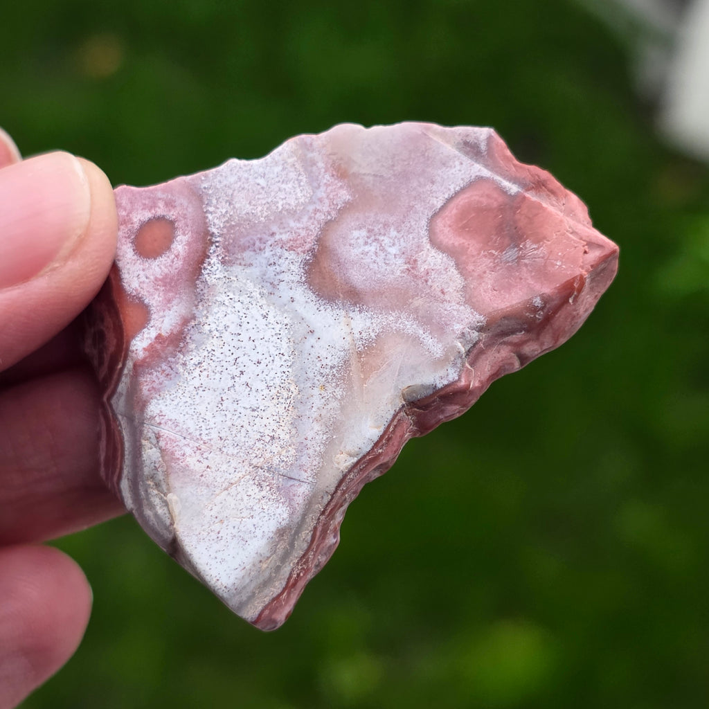 Ο αχάτης Crazy από το Μεξικό είναι μία από τις πιο ζωντανές και εντυπωσιακές ποικιλίες αχάτη, γνωστός για τις κυματιστές γραμμές του και τα τρελά παιχνίδια χρωμάτων που μοιάζουν να έχουν σχεδιαστεί από ένα ελεύθερο χέρι, χωρίς κανόνες. Σε αυτή τη φυσική φέτα, μικρή αλλά εξαιρετικά εκφραστική, αποκαλύπτεται ολόκληρη η ιστορία του λίθου: γήινα στρώματα, ζεστές αποχρώσεις καραμέλας, φωτεινό κόκκινο, πορτοκαλί, γκρι και κρεμ, αναμειγνυόμενα σε σπειροειδή μοτίβα που φαίνεται να παλλούν με ζωή.