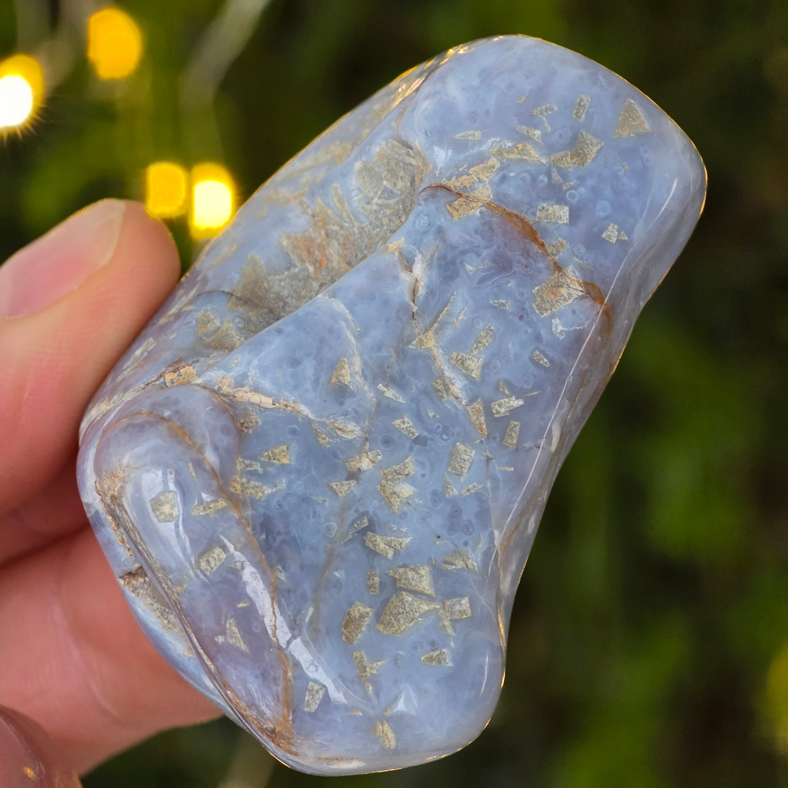 Ο μπλε χαλαζίας συνδέεται γενικά με την επικοινωνία, την έκφραση του εαυτού και της αλήθειας και μπορεί να βοηθήσει στην ενίσχυση της αυθεντικής επικοινωνίας.